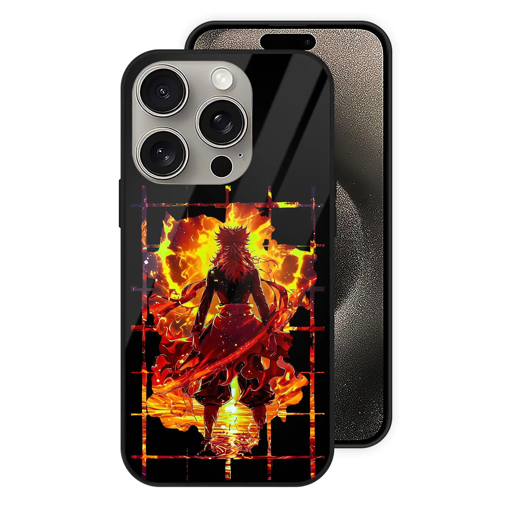 鬼滅の刃 グッズ,煉獄 杏寿郎 - IPhone15Pro対応 ・ スマホケース ・ 背面ガラス ・ TPU+強化ガラス ・ 耐衝撃 ・ 黄変防止 ・ ワイヤレス充電対応 ・ 3D立体ボタン