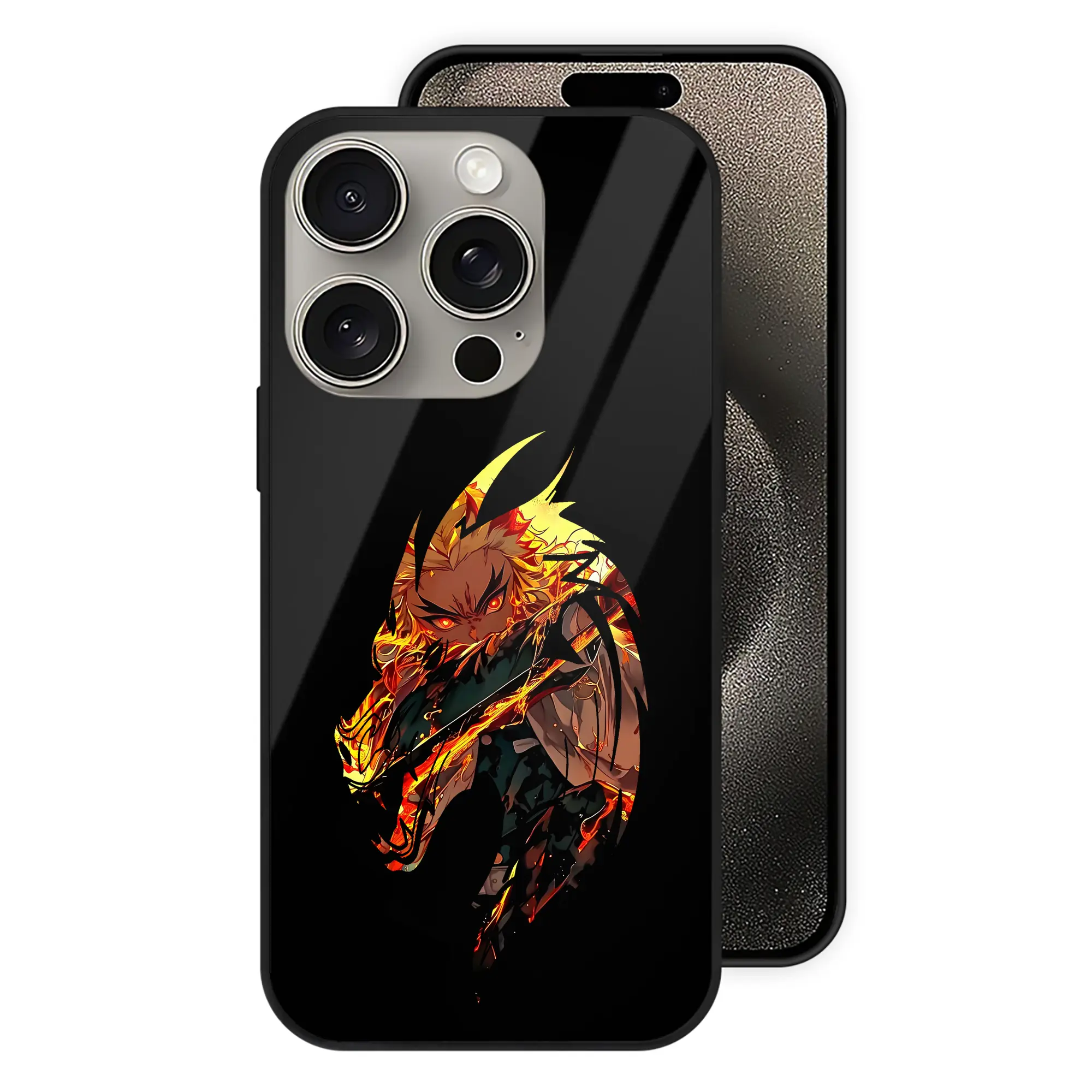 鬼滅の刃 グッズ,煉獄 杏寿郎 - IPhone15Pro対応 ・ スマホケース ・ 背面ガラス ・ TPU+強化ガラス ・ 耐衝撃 ・ 黄変防止 ・ ワイヤレス充電対応 ・ 3D立体ボタン