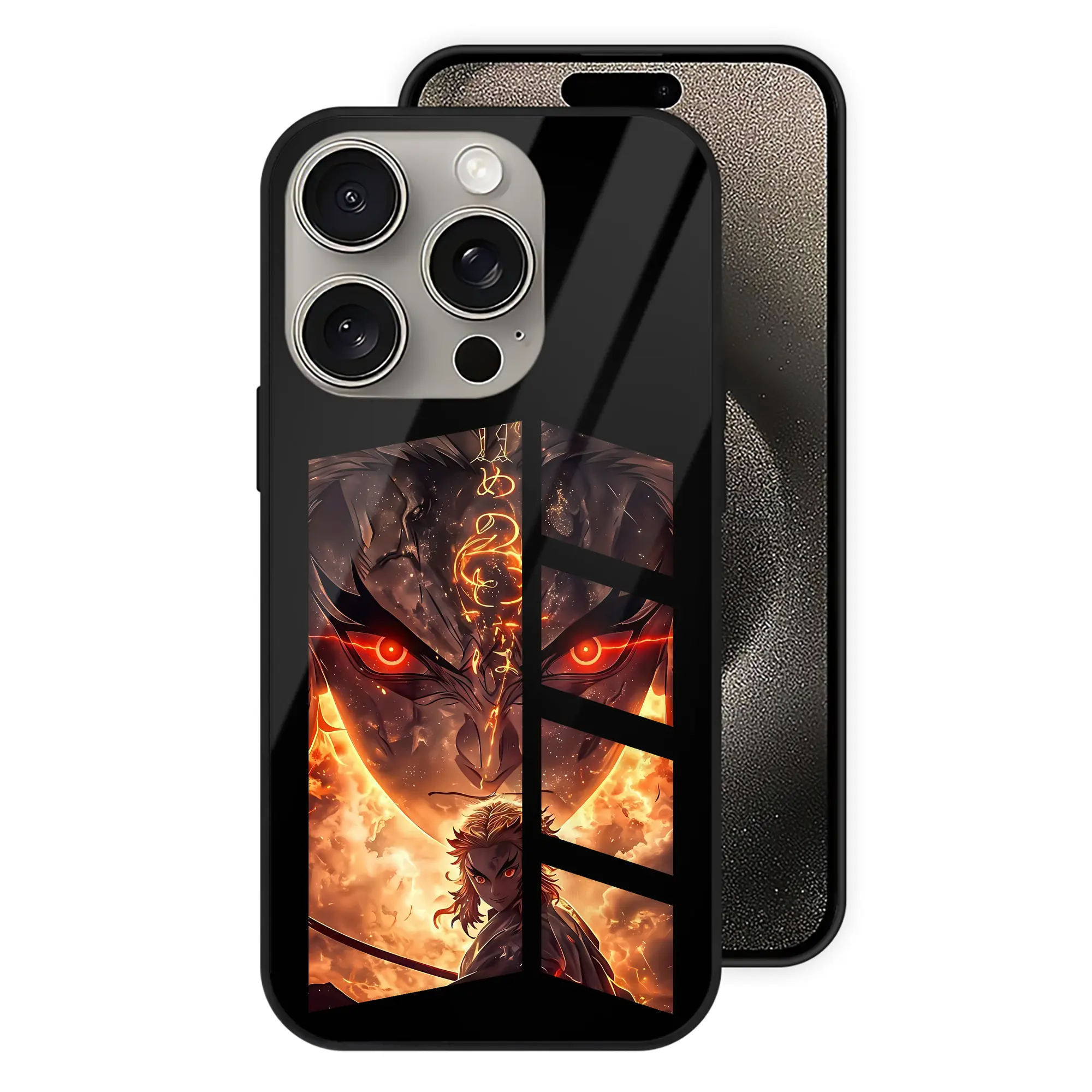 鬼滅の刃 グッズ,煉獄 杏寿郎 - IPhone15Pro対応 ・ スマホケース ・ 背面ガラス ・ TPU+強化ガラス ・ 耐衝撃 ・ 黄変防止 ・ ワイヤレス充電対応 ・ 3D立体ボタン