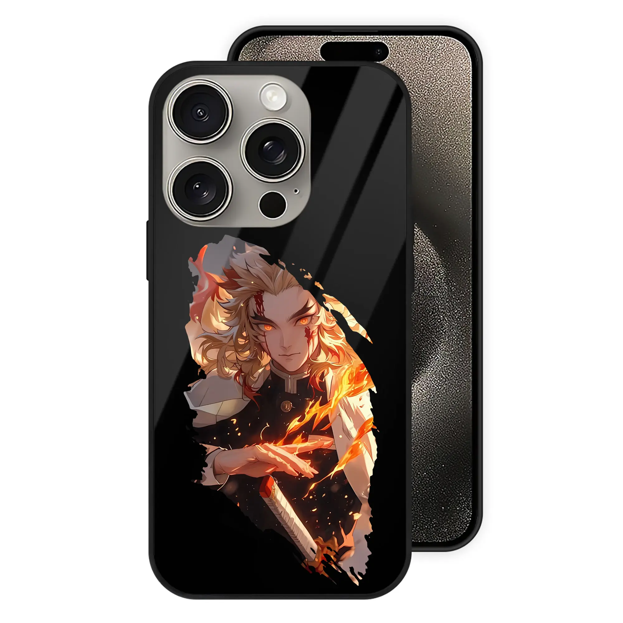 鬼滅の刃 グッズ,煉獄 杏寿郎 - IPhone15Pro対応 ・ スマホケース ・ 背面ガラス ・ TPU+強化ガラス ・ 耐衝撃 ・ 黄変防止 ・ ワイヤレス充電対応 ・ 3D立体ボタン