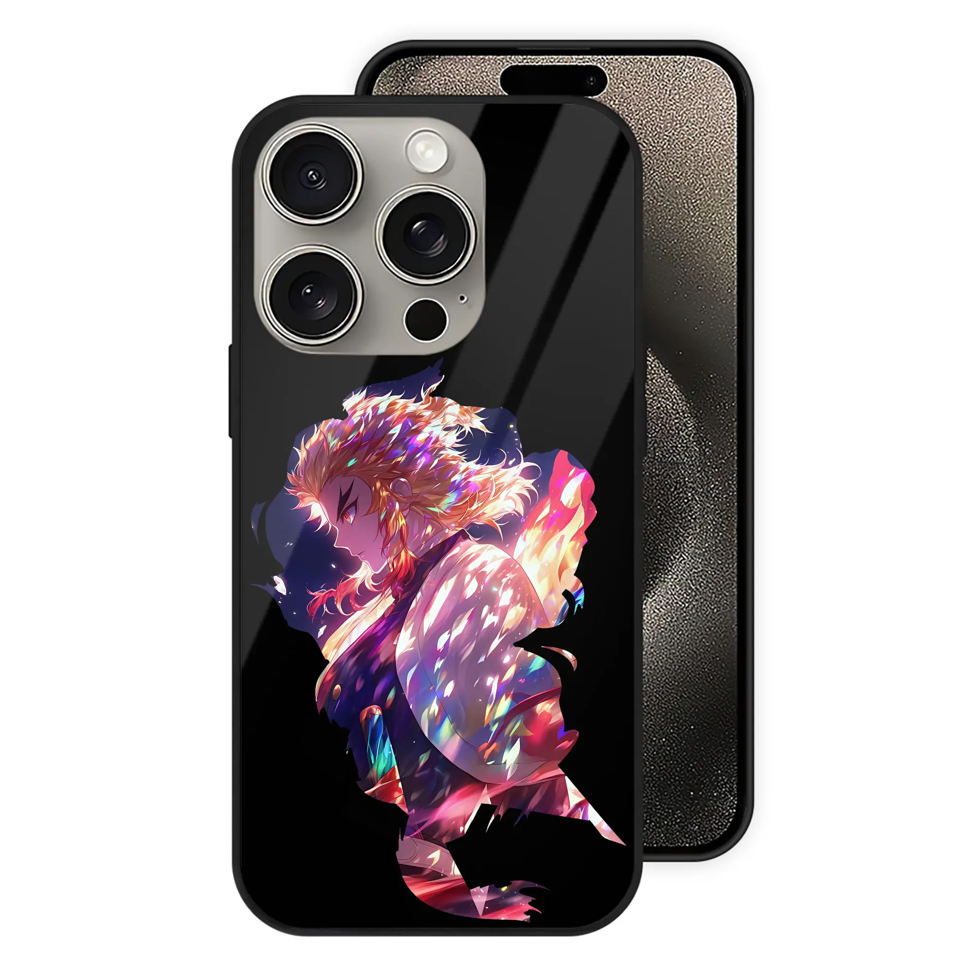 鬼滅の刃 グッズ,煉獄 杏寿郎 - IPhone15Pro対応 ・ スマホケース ・ 背面ガラス ・ TPU+強化ガラス ・ 耐衝撃 ・ 黄変防止 ・ ワイヤレス充電対応 ・ 3D立体ボタン