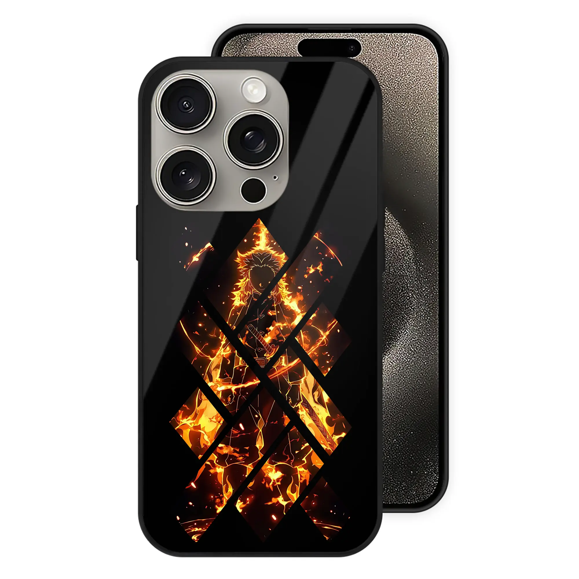 鬼滅の刃 グッズ,煉獄 杏寿郎 - IPhone15Pro対応 ・ スマホケース ・ 背面ガラス ・ TPU+強化ガラス ・ 耐衝撃 ・ 黄変防止 ・ ワイヤレス充電対応 ・ 3D立体ボタン