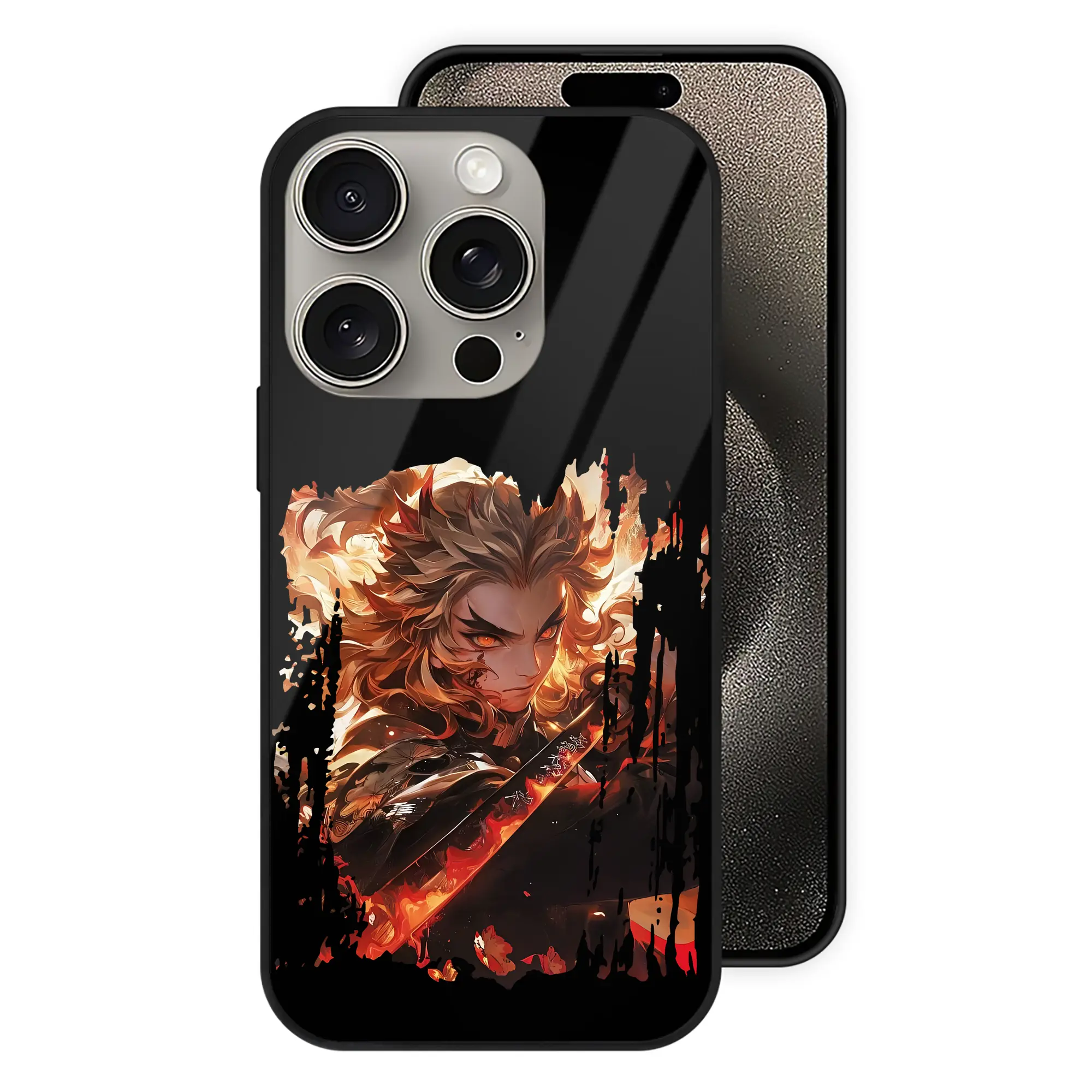 鬼滅の刃 グッズ,煉獄 杏寿郎 - IPhone15Pro対応 ・ スマホケース ・ 背面ガラス ・ TPU+強化ガラス ・ 耐衝撃 ・ 黄変防止 ・ ワイヤレス充電対応 ・ 3D立体ボタン