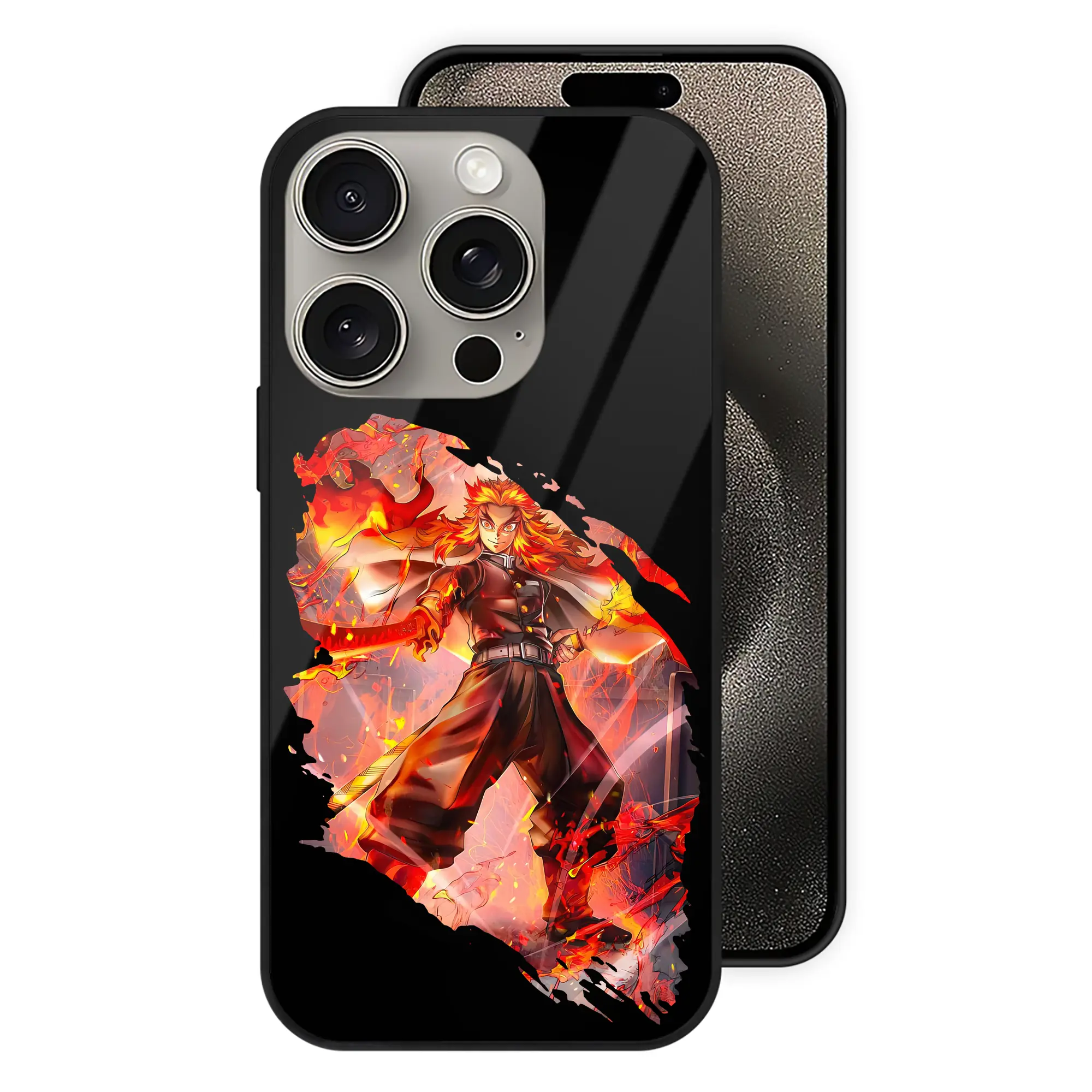 鬼滅の刃 グッズ,煉獄 杏寿郎 - IPhone15Pro対応 ・ スマホケース ・ 背面ガラス ・ TPU+強化ガラス ・ 耐衝撃 ・ 黄変防止 ・ ワイヤレス充電対応 ・ 3D立体ボタン