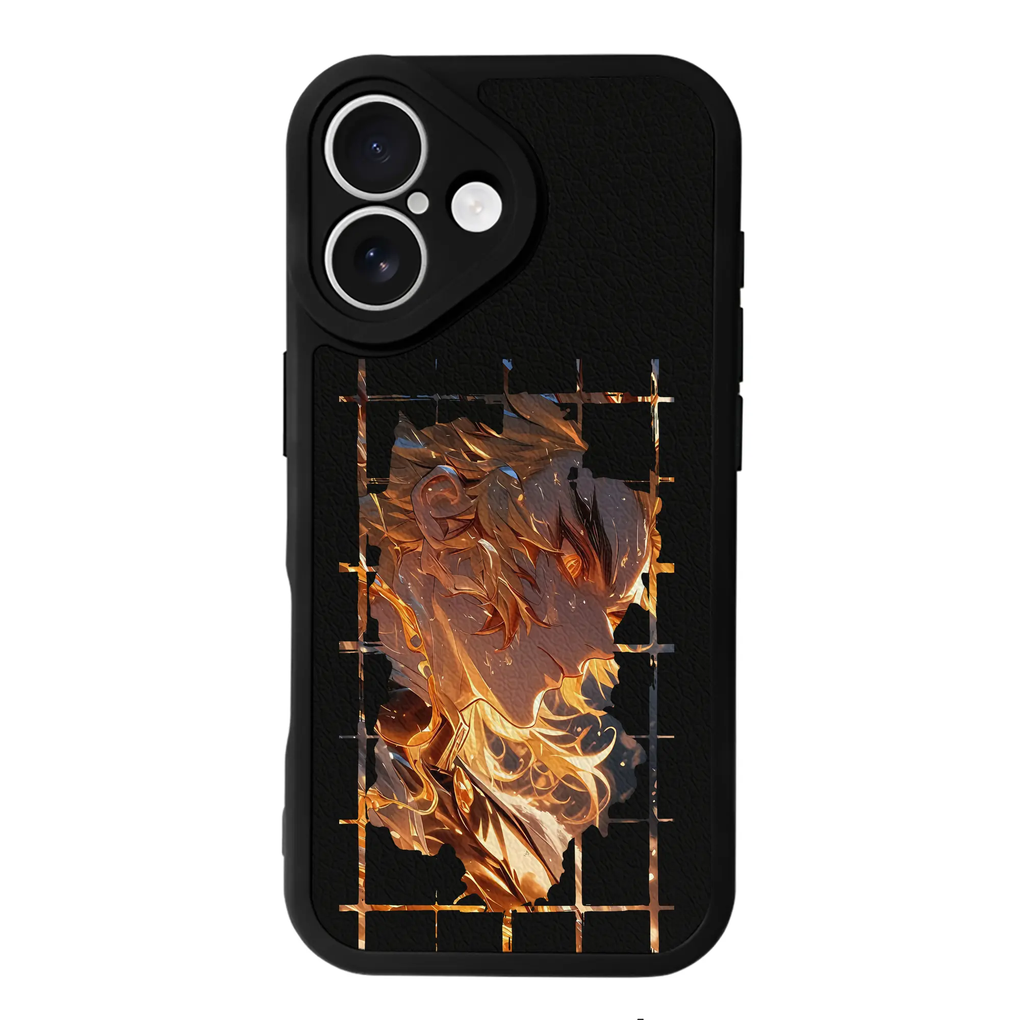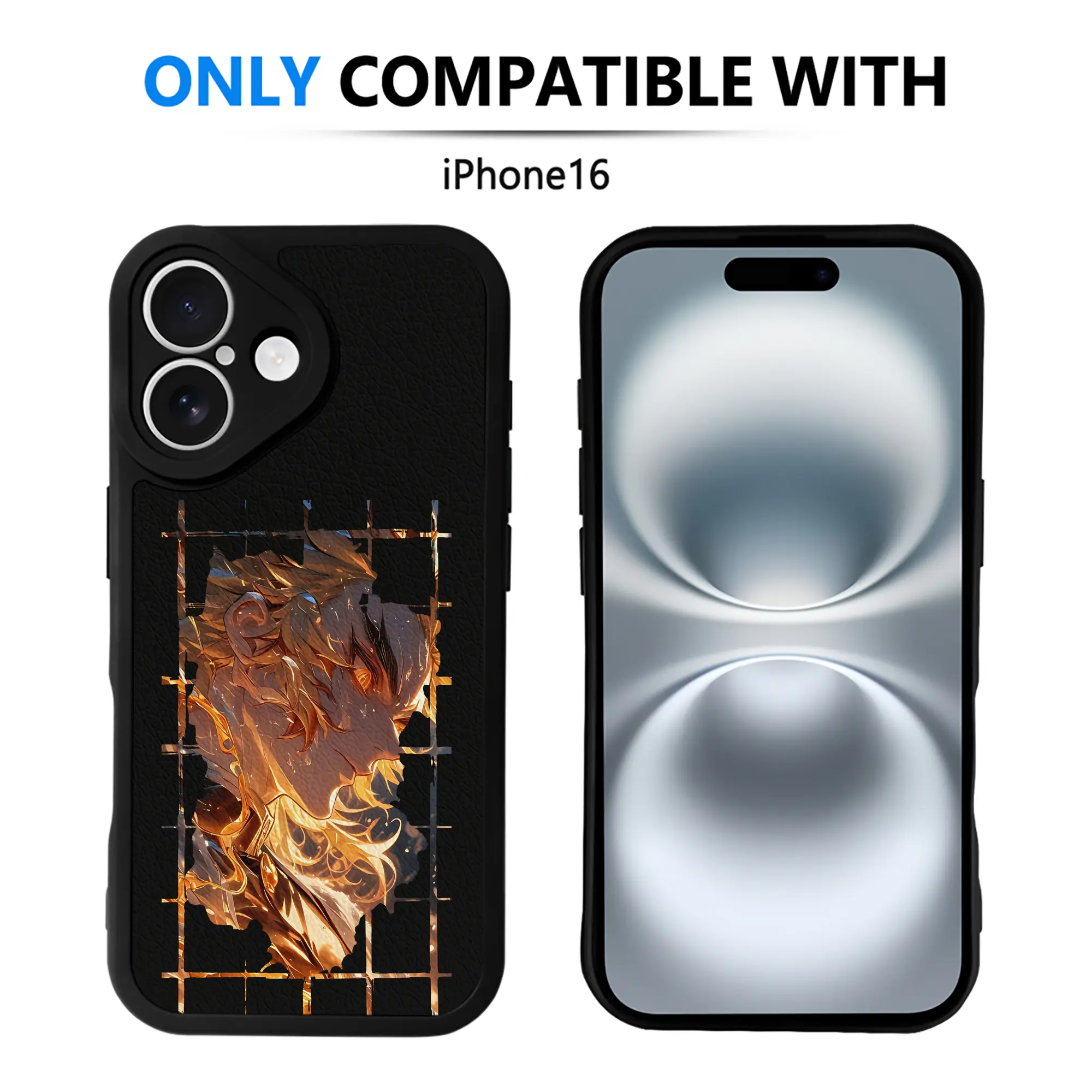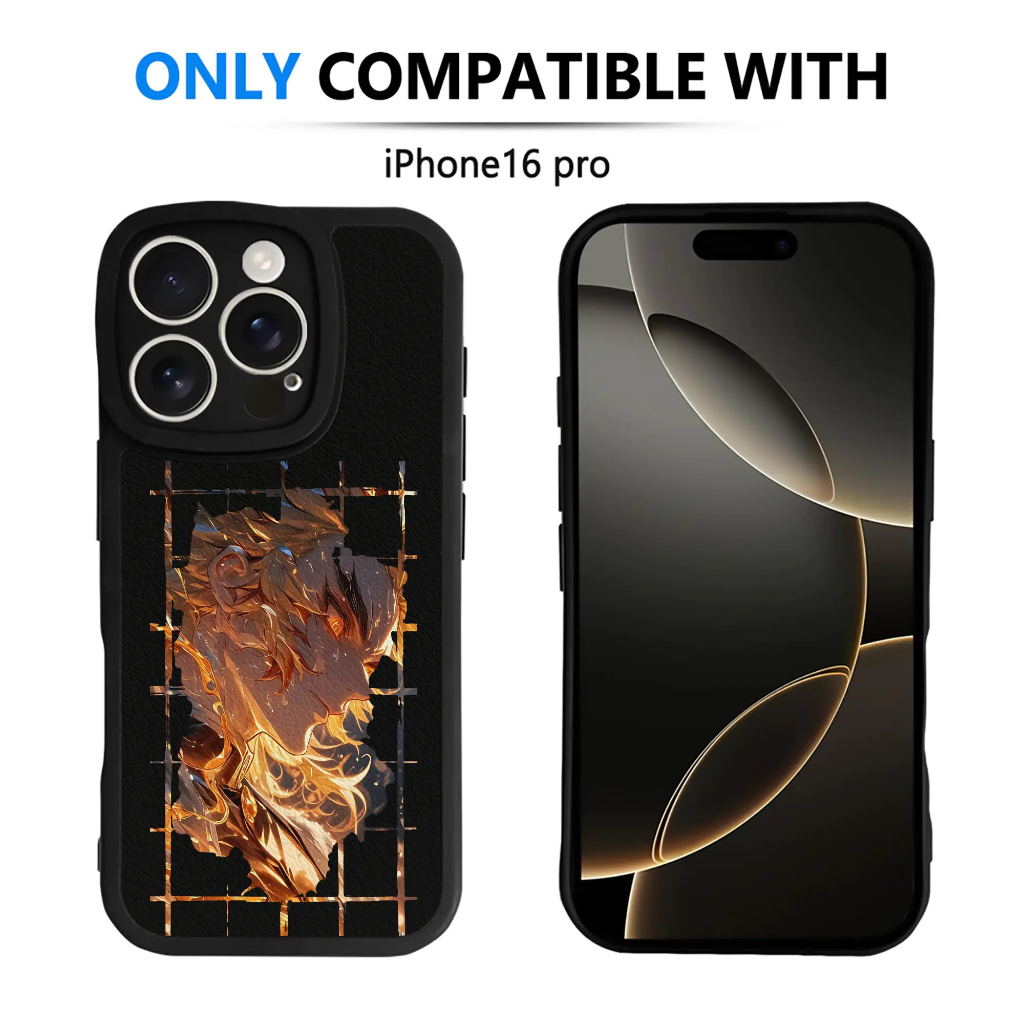 鬼滅の刃 グッズ,煉獄 杏寿郎 - IPhone 16シリーズ対応 ・ シリコンスマホケース ・ レザー調 ・ 高精度フィット ・ 耐衝撃 ・ ワイヤレス充電対応 ・ 精密カット