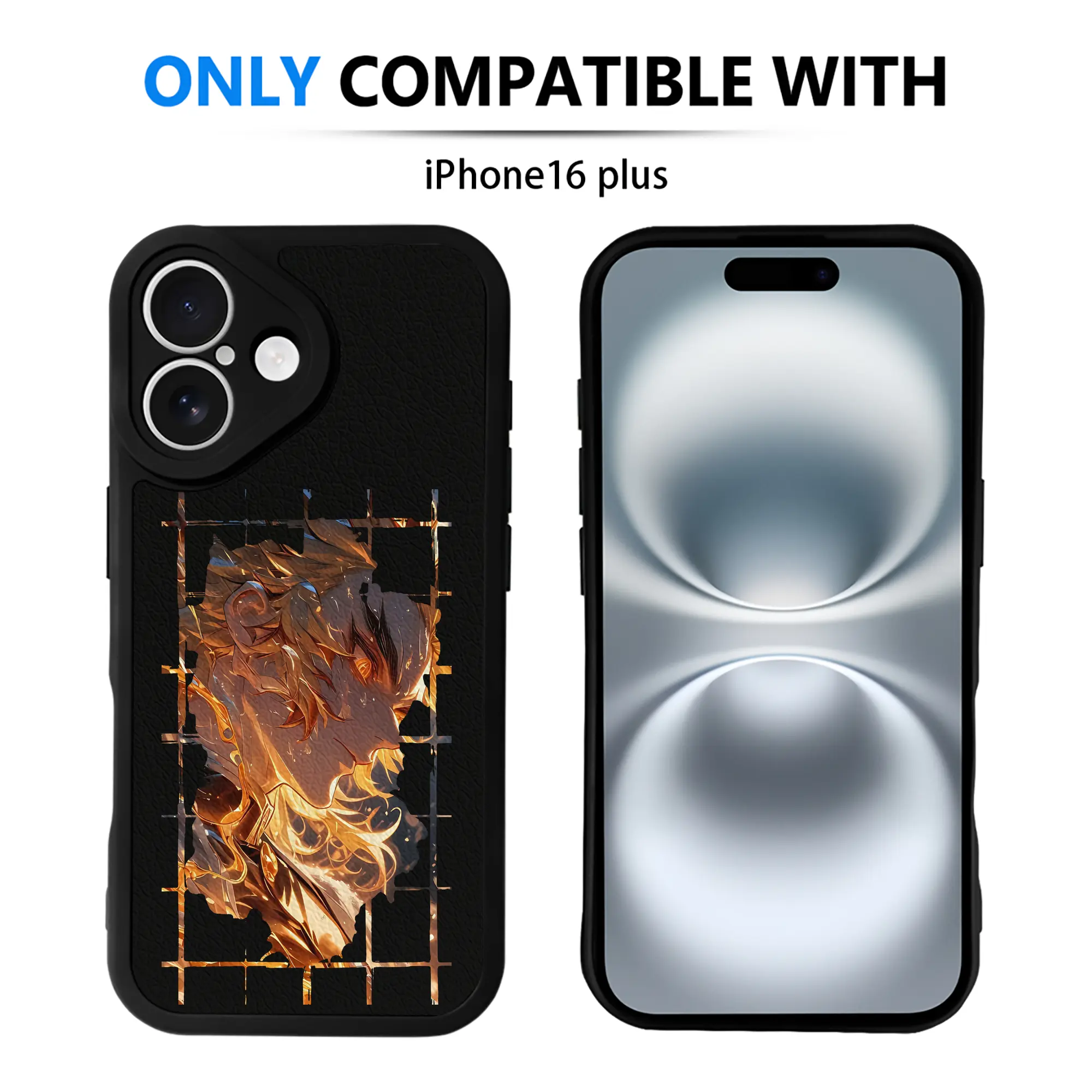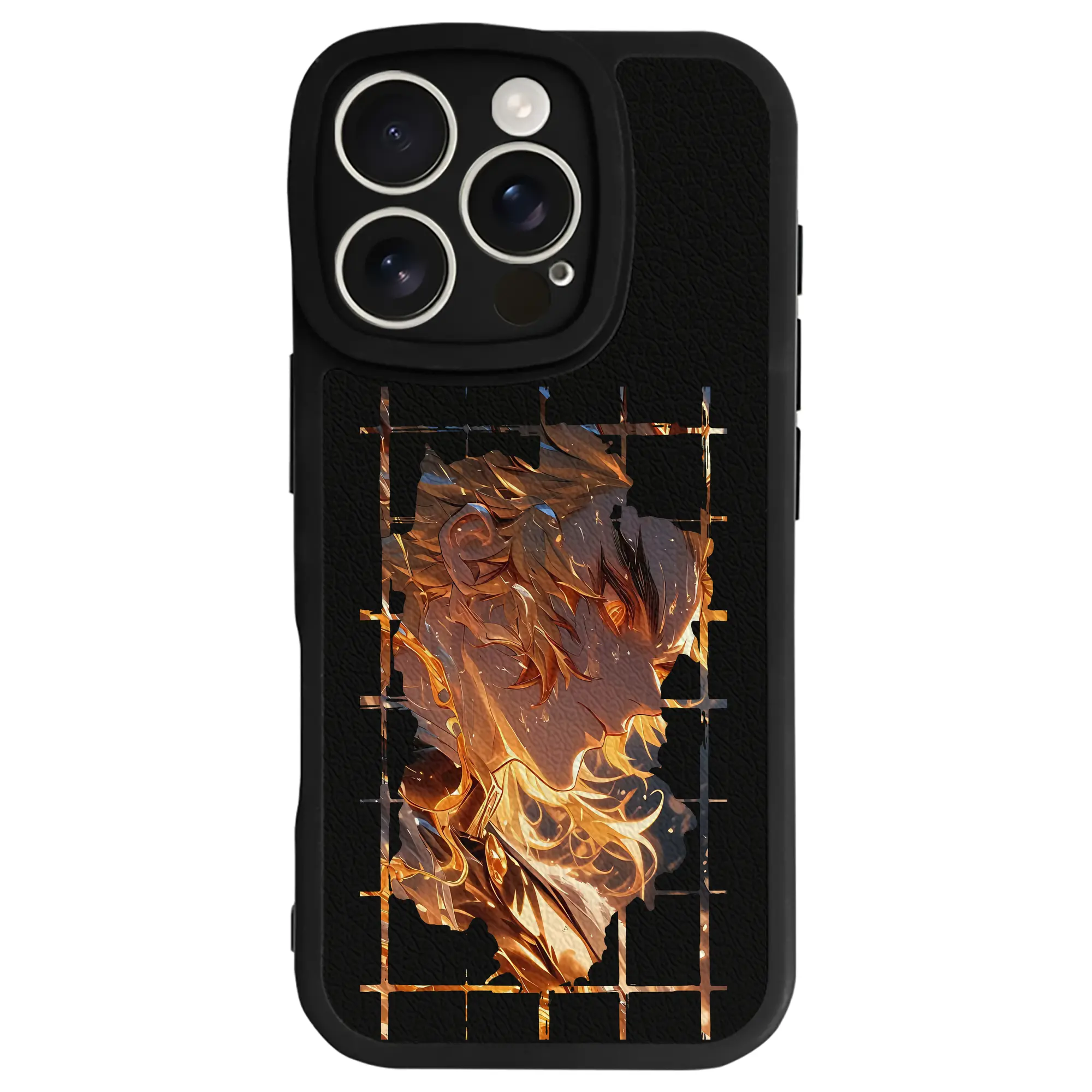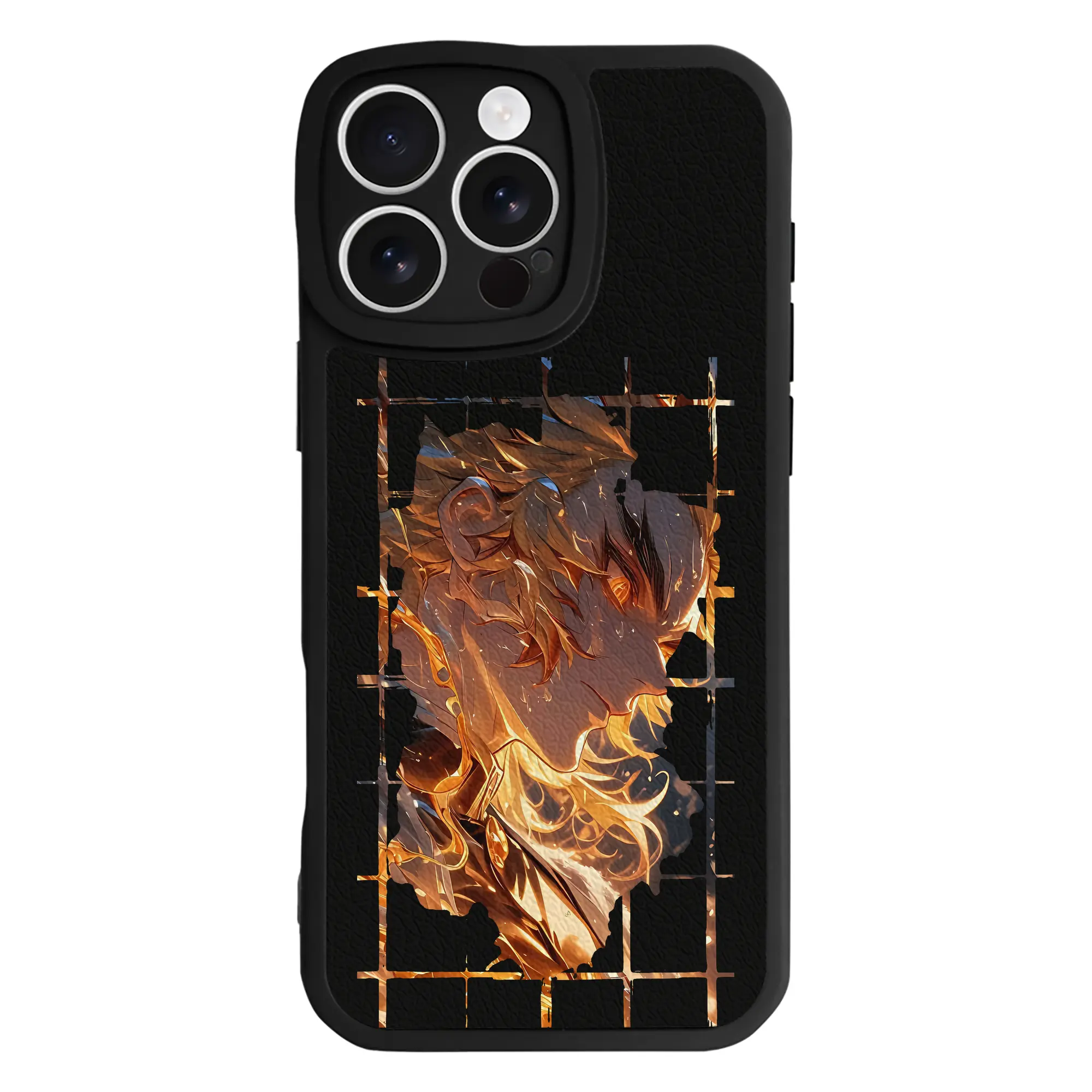 鬼滅の刃 グッズ,煉獄 杏寿郎 - IPhone 16シリーズ対応 ・ シリコンスマホケース ・ レザー調 ・ 高精度フィット ・ 耐衝撃 ・ ワイヤレス充電対応 ・ 精密カット