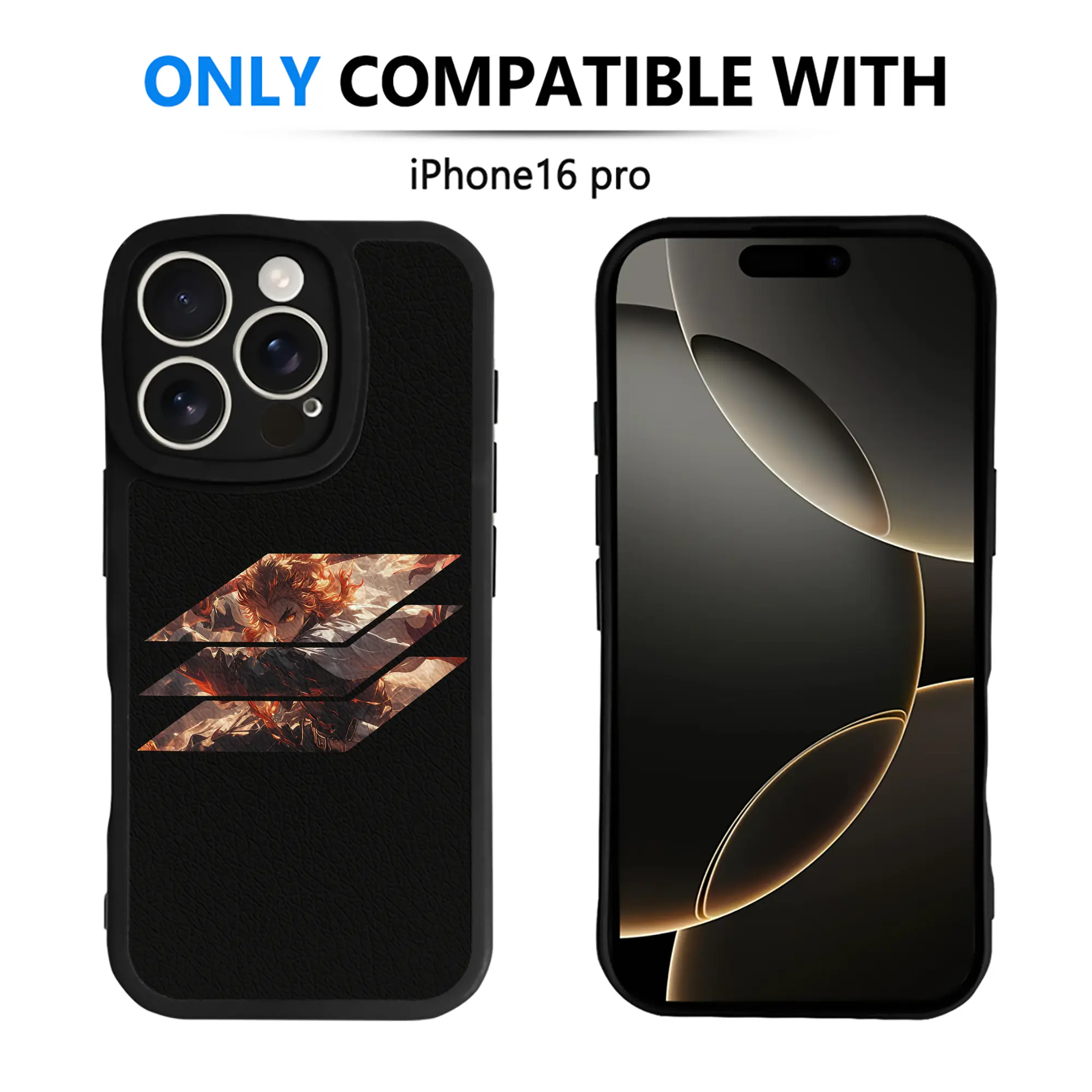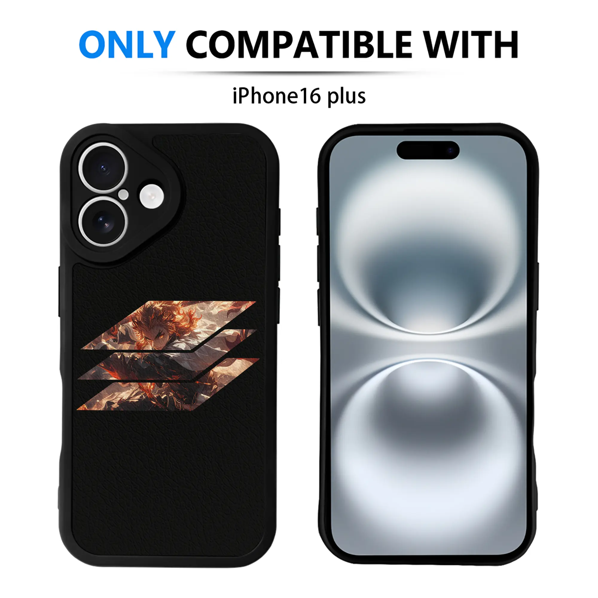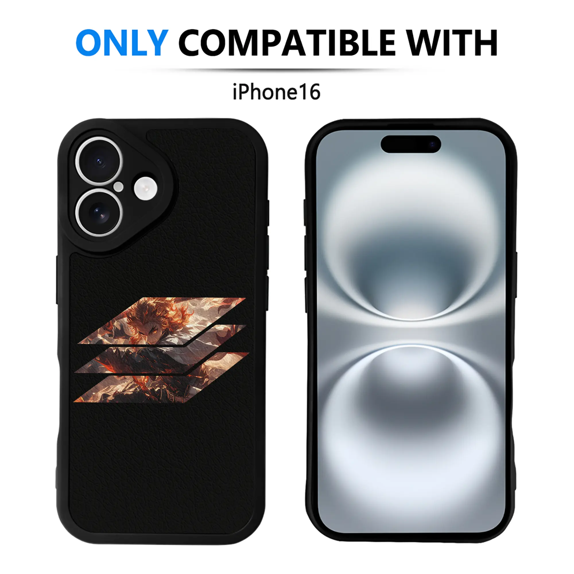 鬼滅の刃 グッズ,煉獄 杏寿郎 - IPhone 16シリーズ対応 ・ シリコンスマホケース ・ レザー調 ・ 高精度フィット ・ 耐衝撃 ・ ワイヤレス充電対応 ・ 精密カット