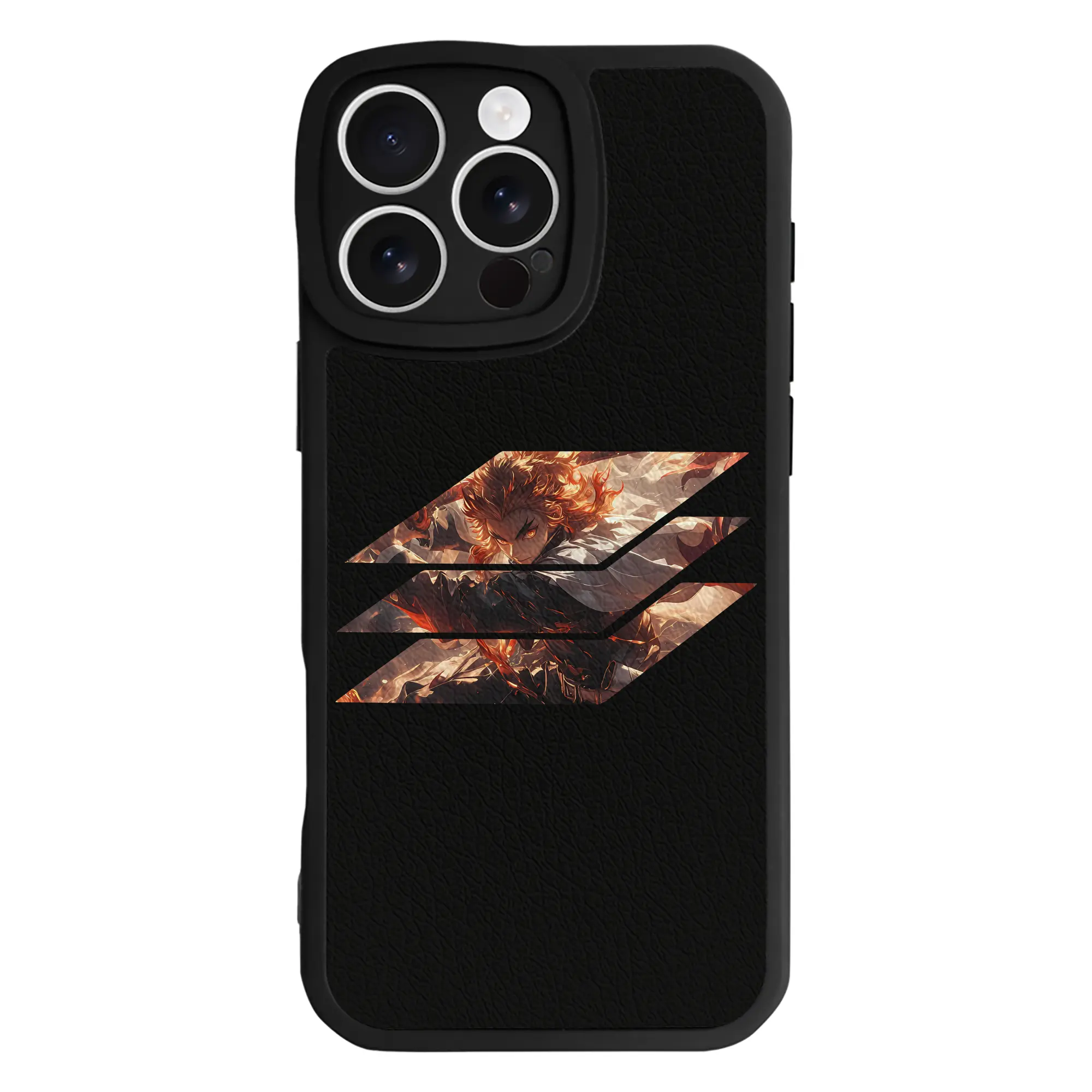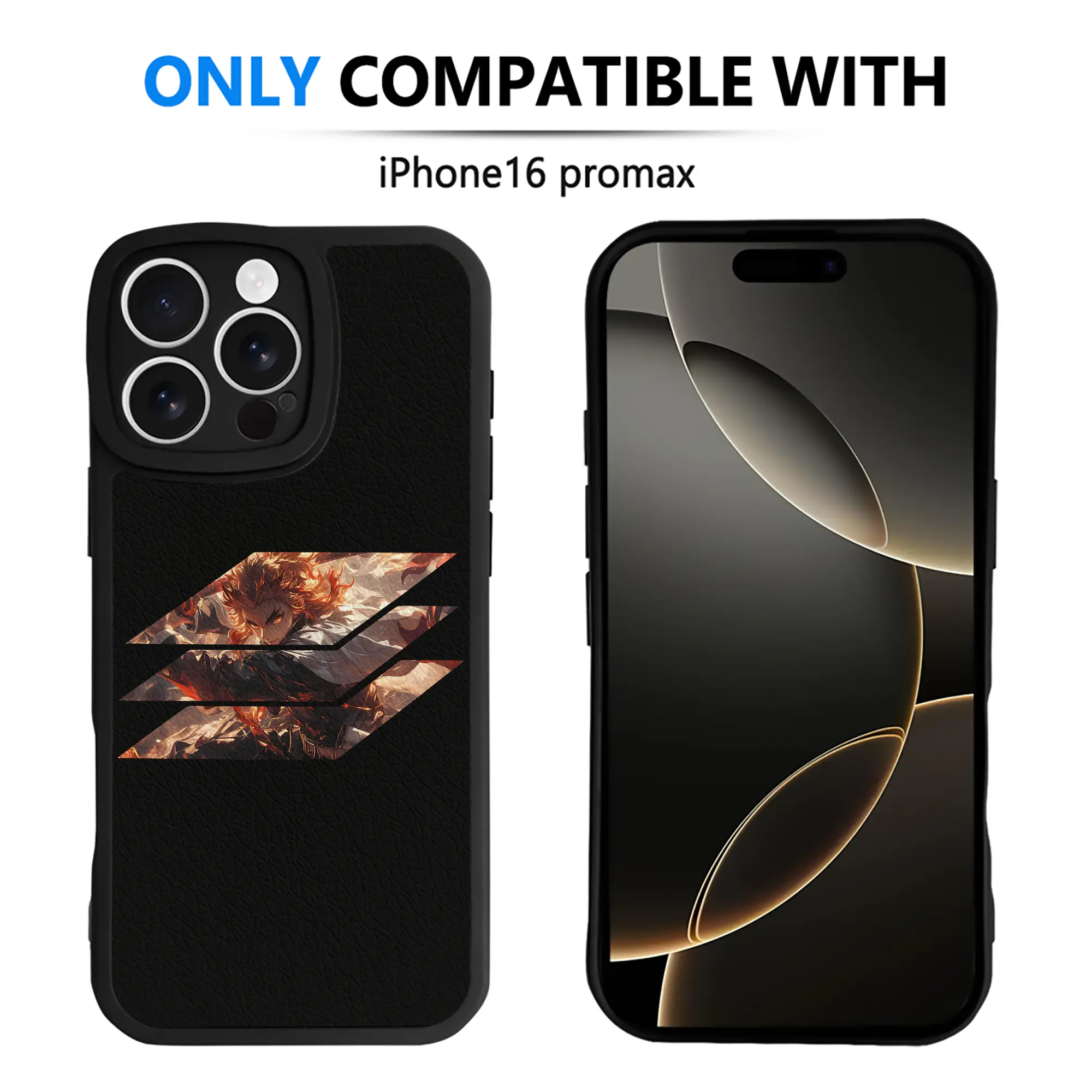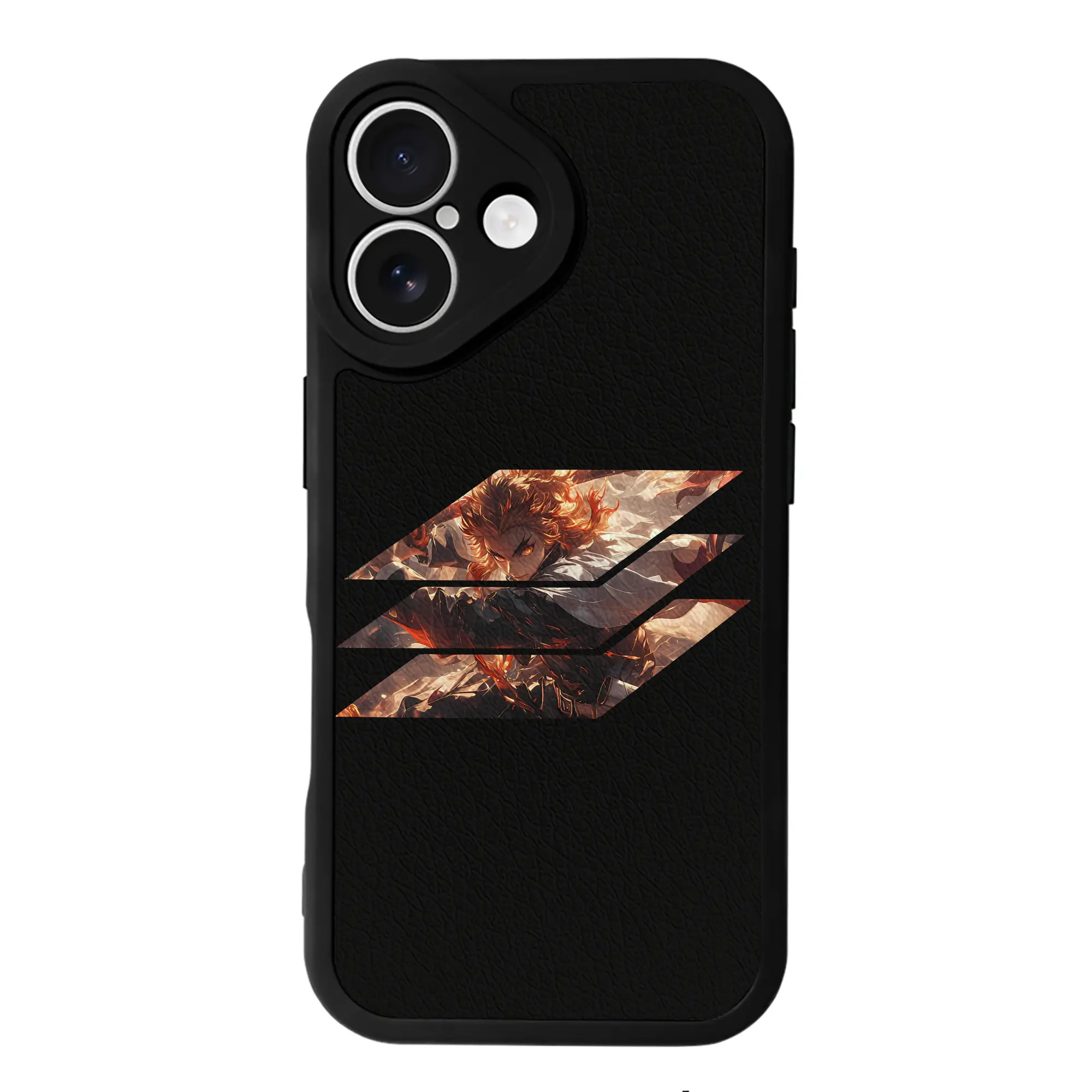 鬼滅の刃 グッズ,煉獄 杏寿郎 - IPhone 16シリーズ対応 ・ シリコンスマホケース ・ レザー調 ・ 高精度フィット ・ 耐衝撃 ・ ワイヤレス充電対応 ・ 精密カット