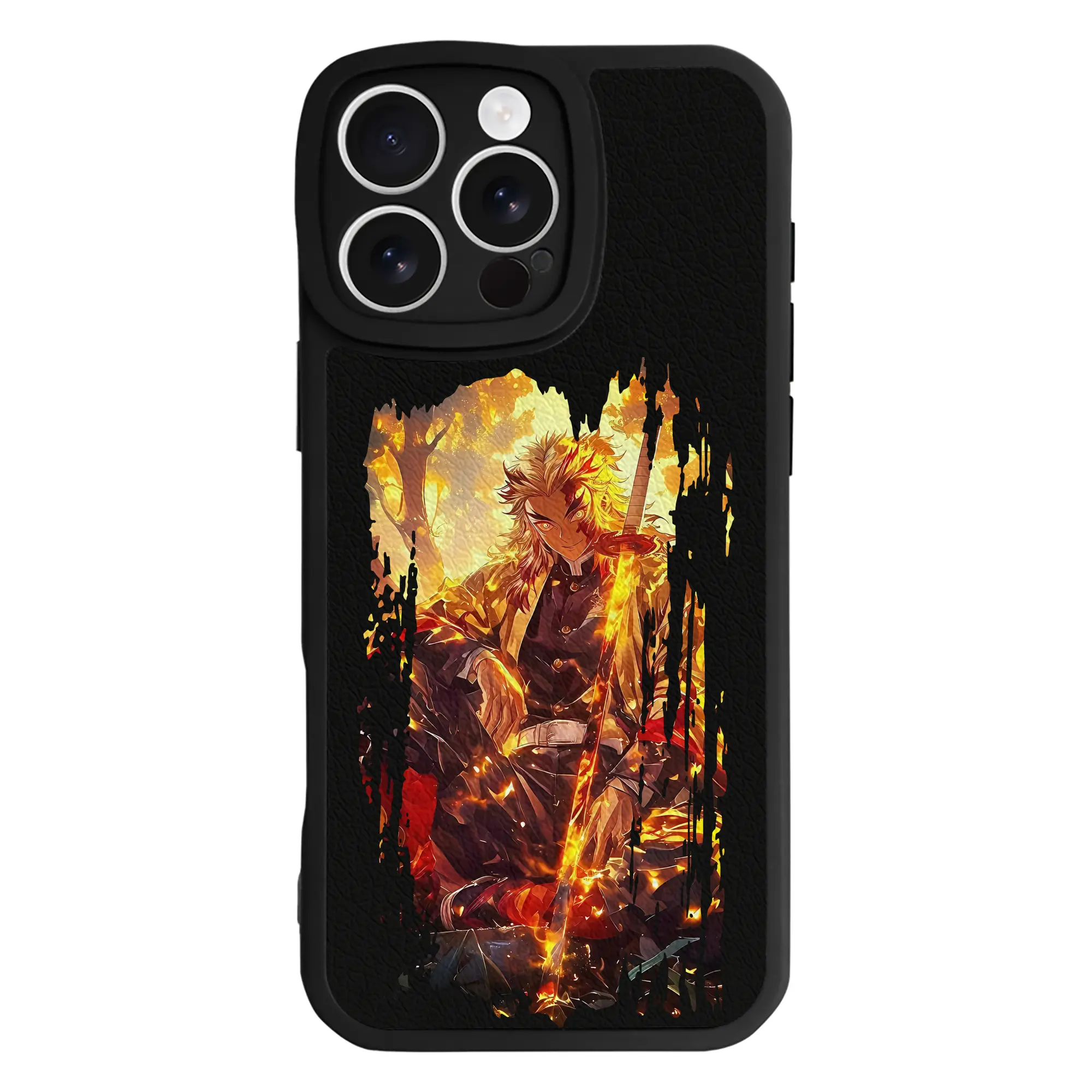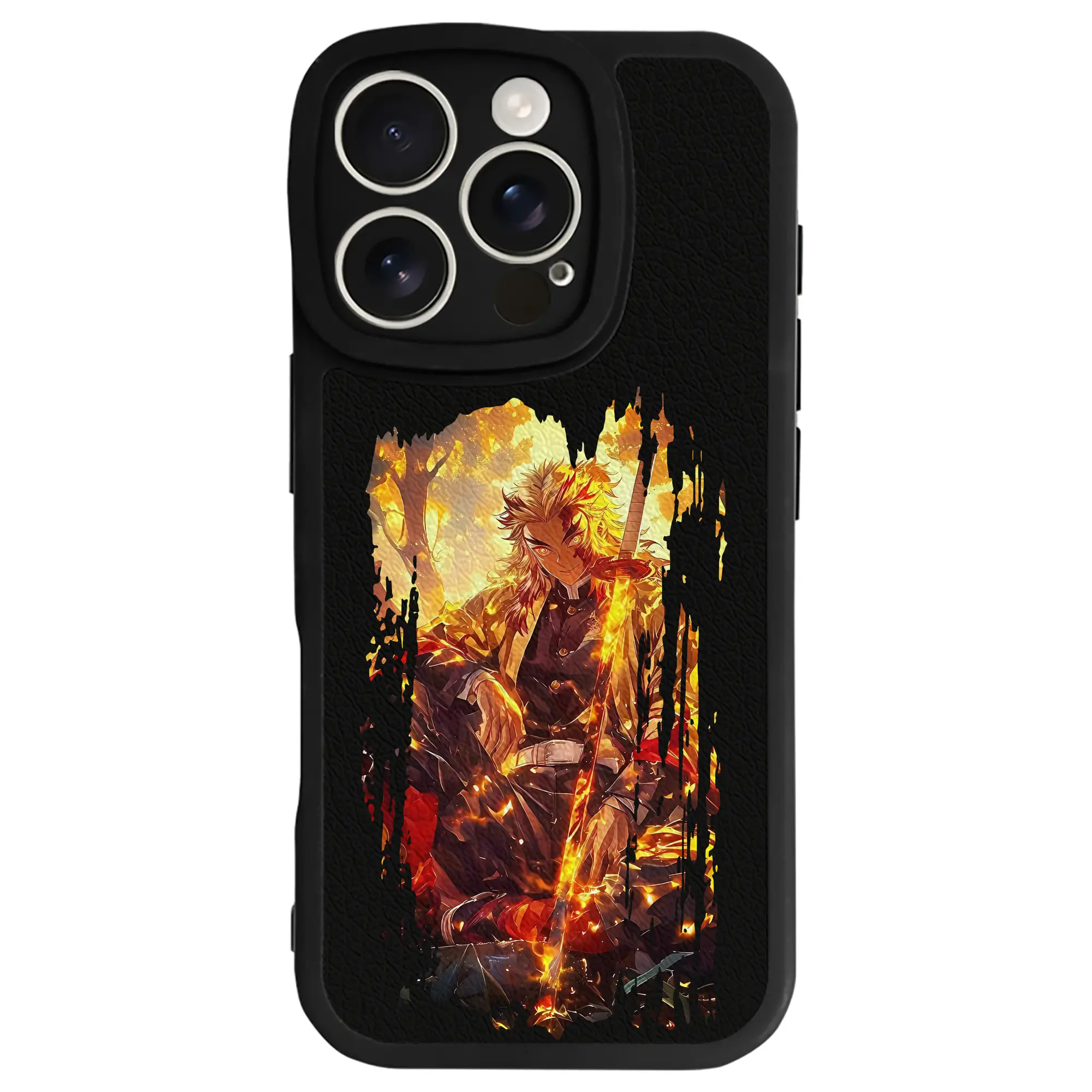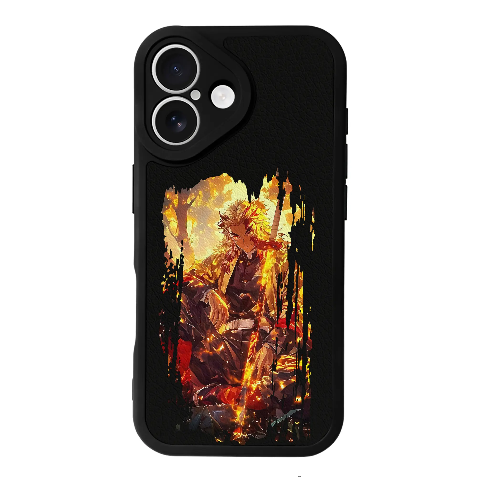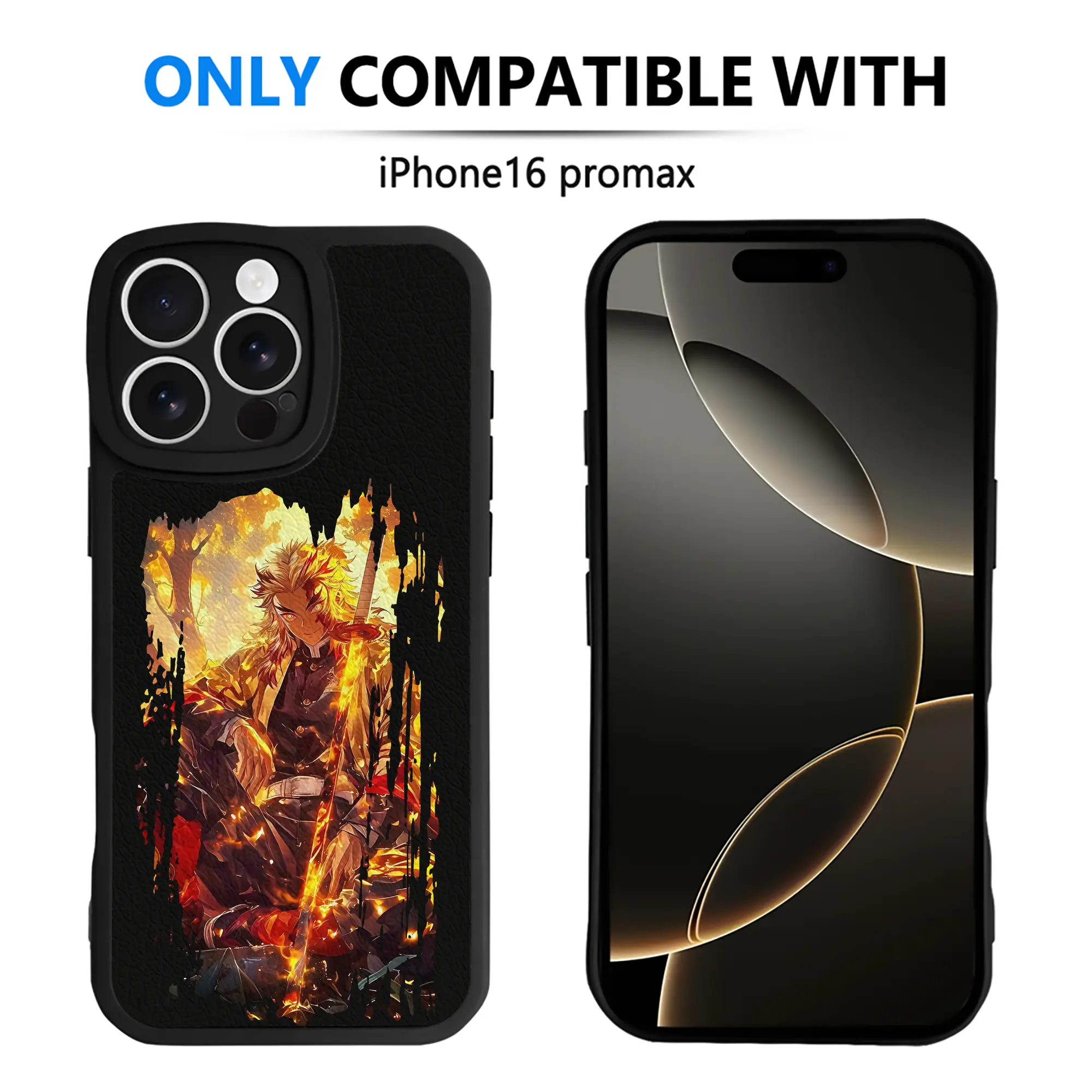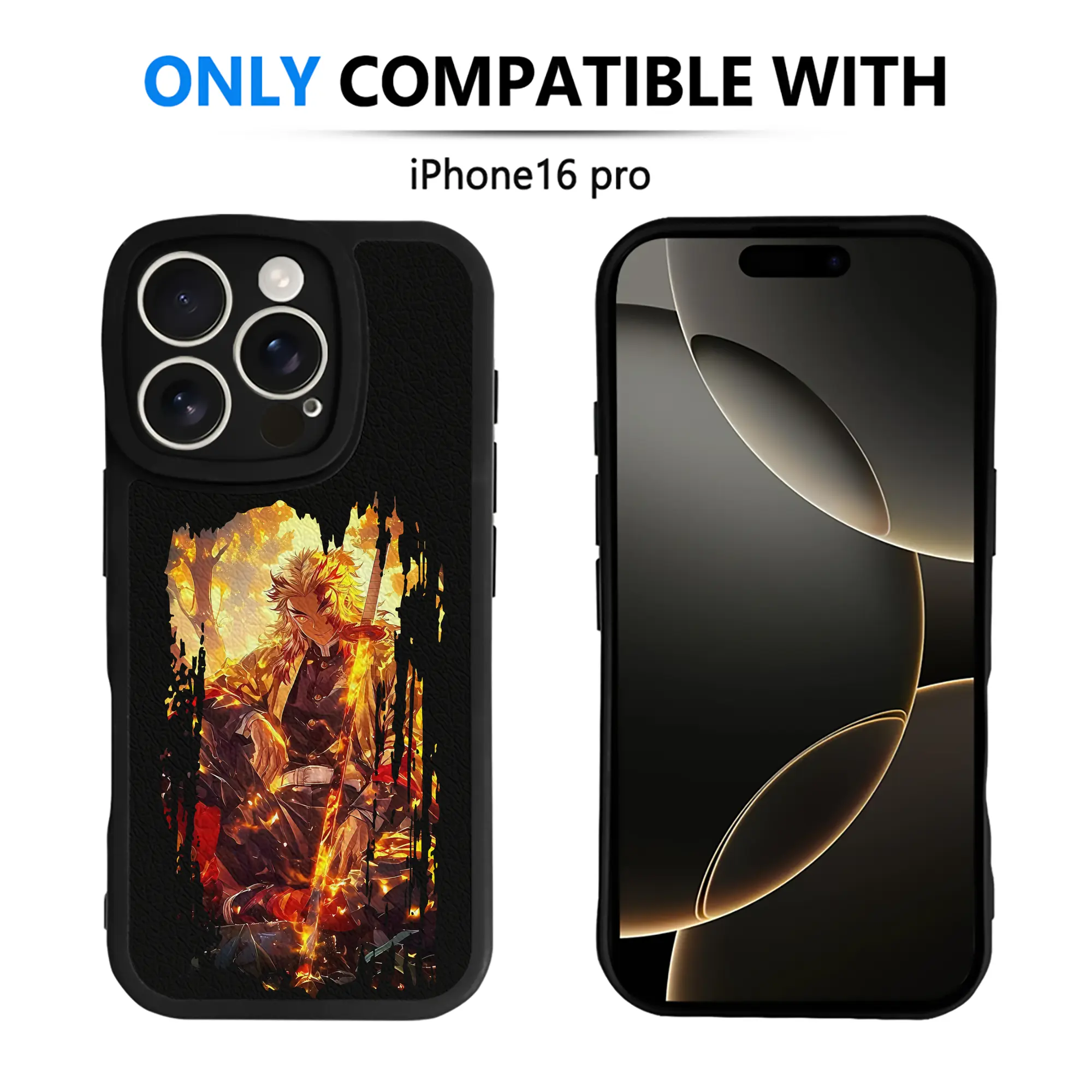 鬼滅の刃 グッズ,煉獄 杏寿郎 - IPhone 16シリーズ対応 ・ シリコンスマホケース ・ レザー調 ・ 高精度フィット ・ 耐衝撃 ・ ワイヤレス充電対応 ・ 精密カット