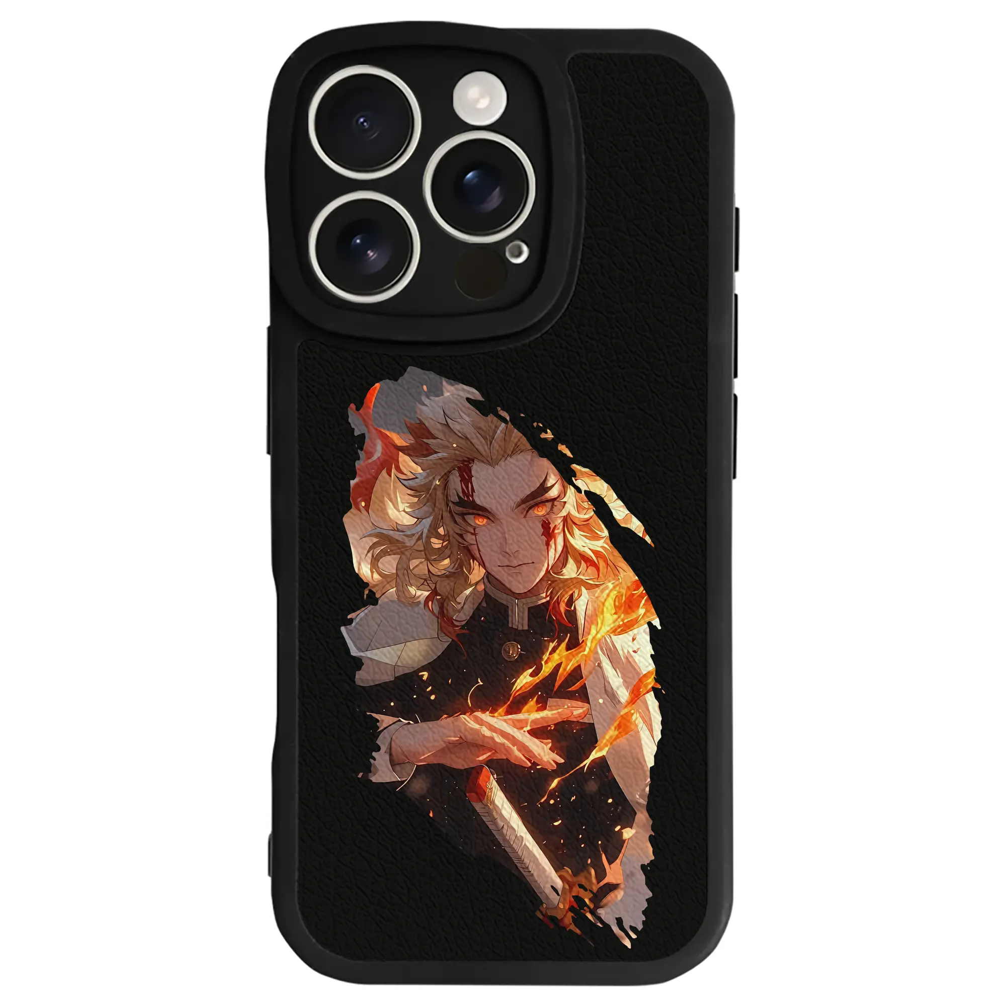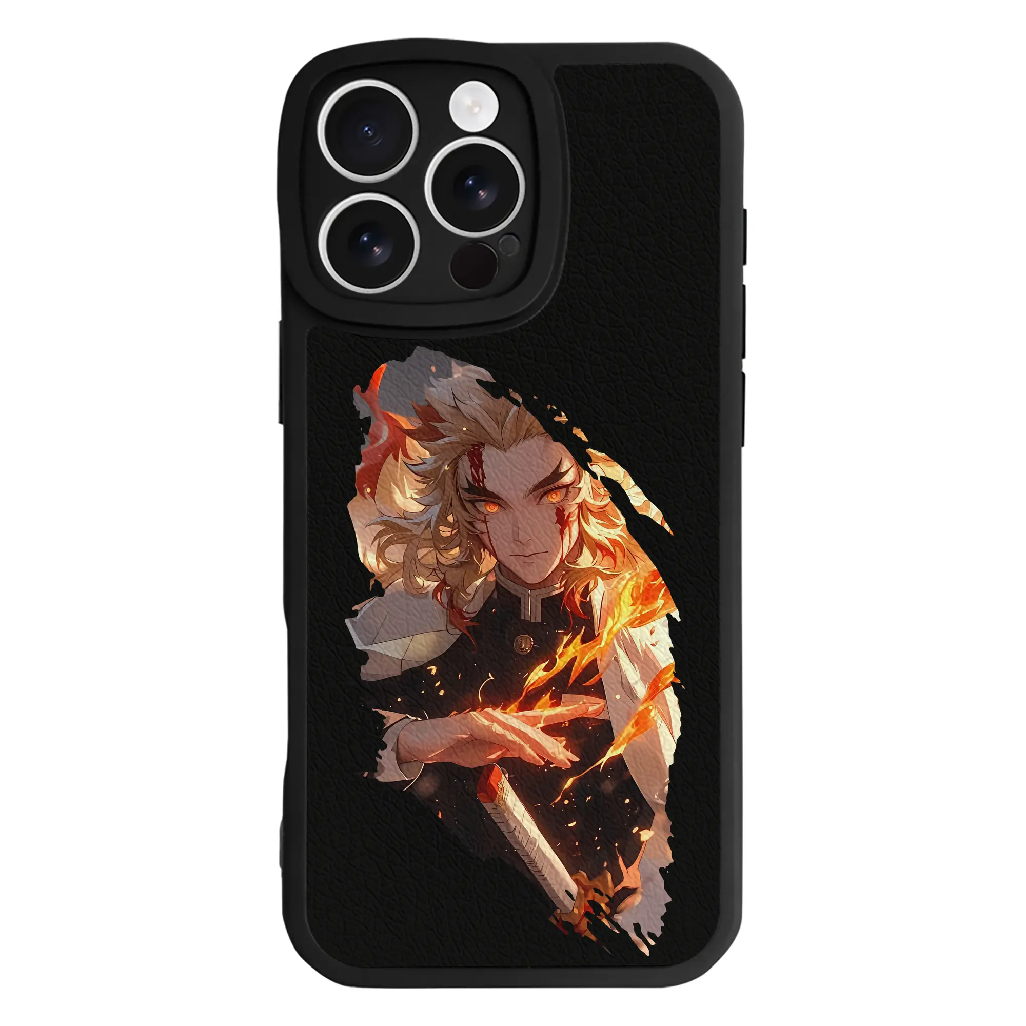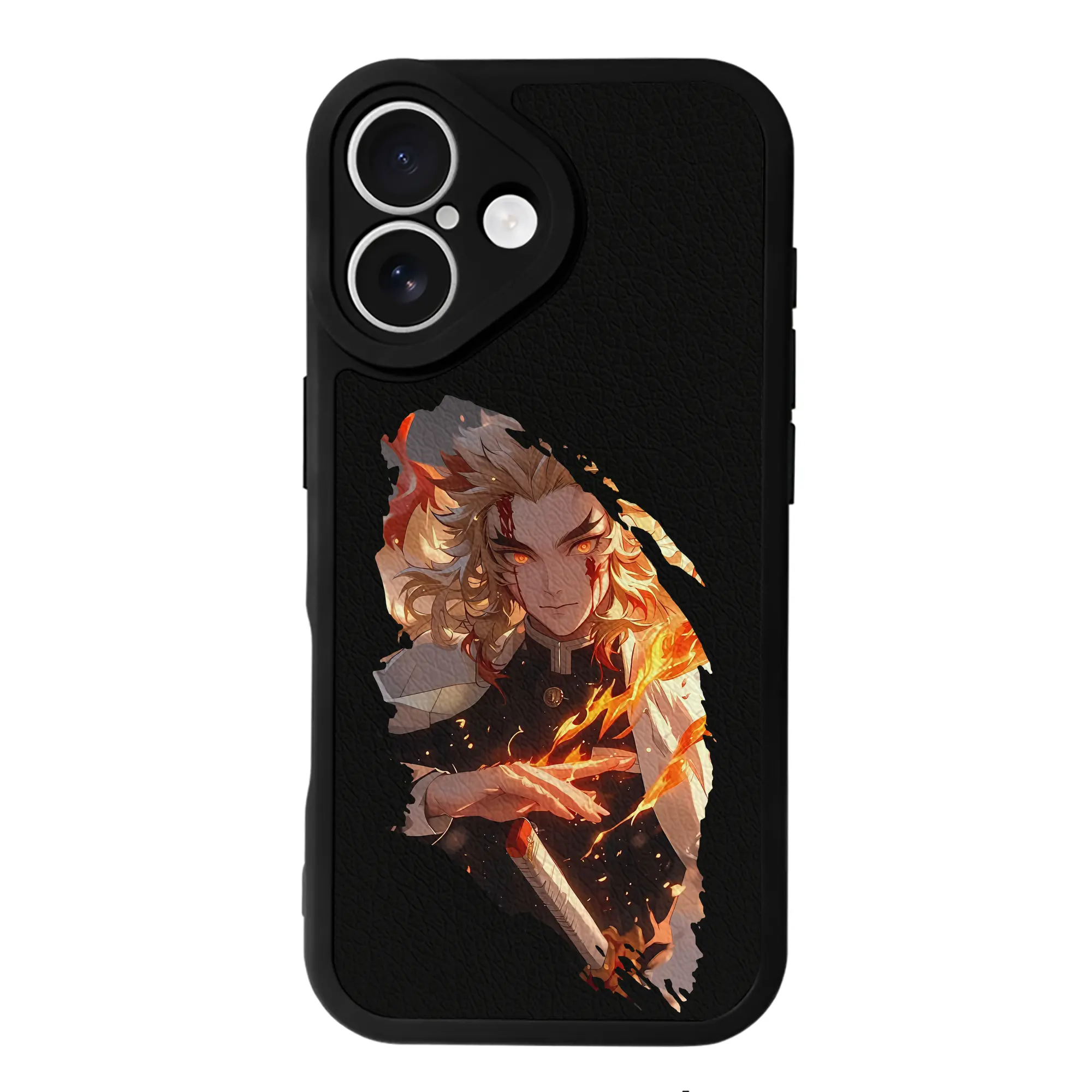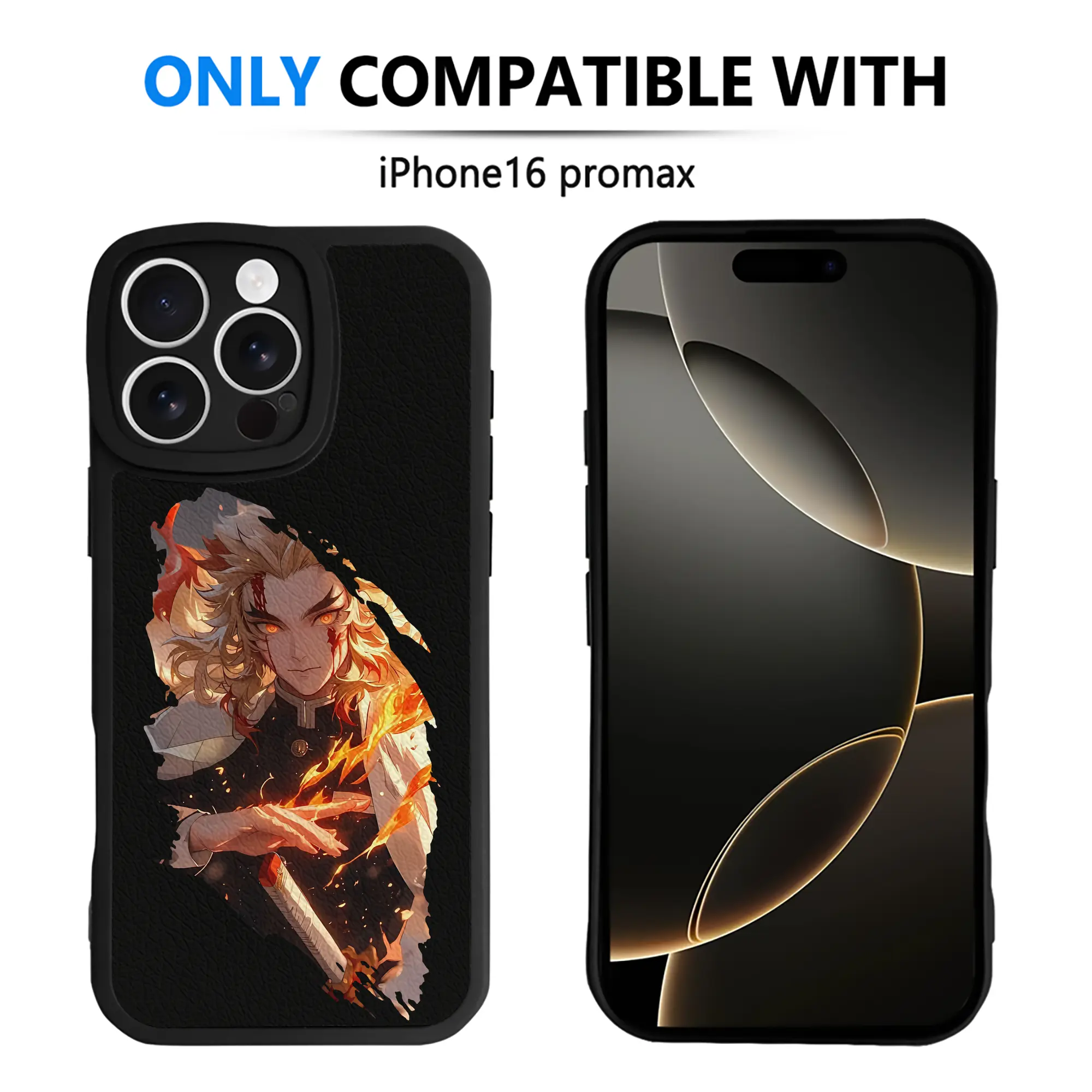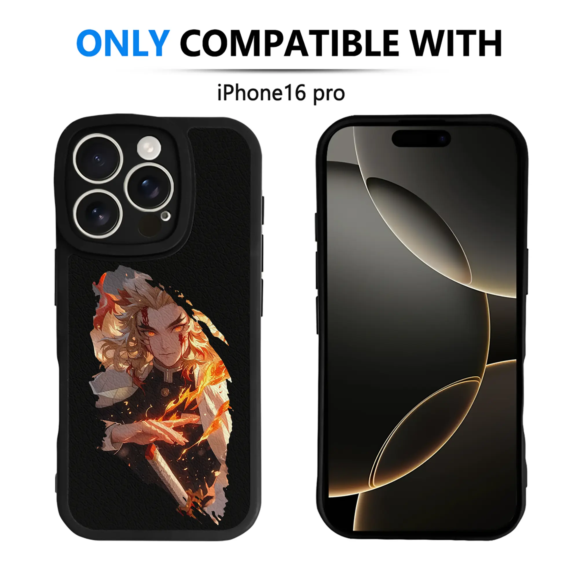 鬼滅の刃 グッズ,煉獄 杏寿郎 - IPhone 16シリーズ対応 ・ シリコンスマホケース ・ レザー調 ・ 高精度フィット ・ 耐衝撃 ・ ワイヤレス充電対応 ・ 精密カット
