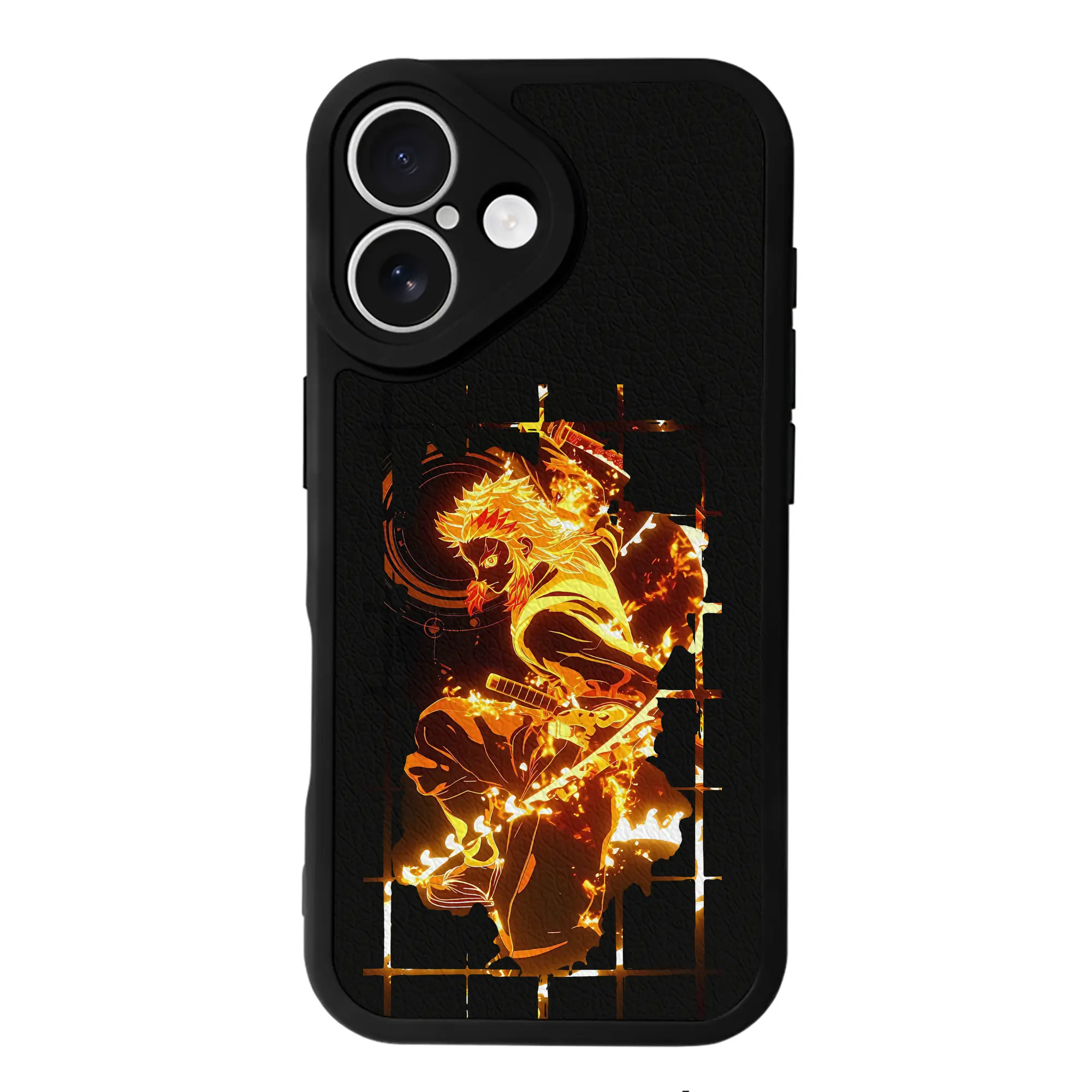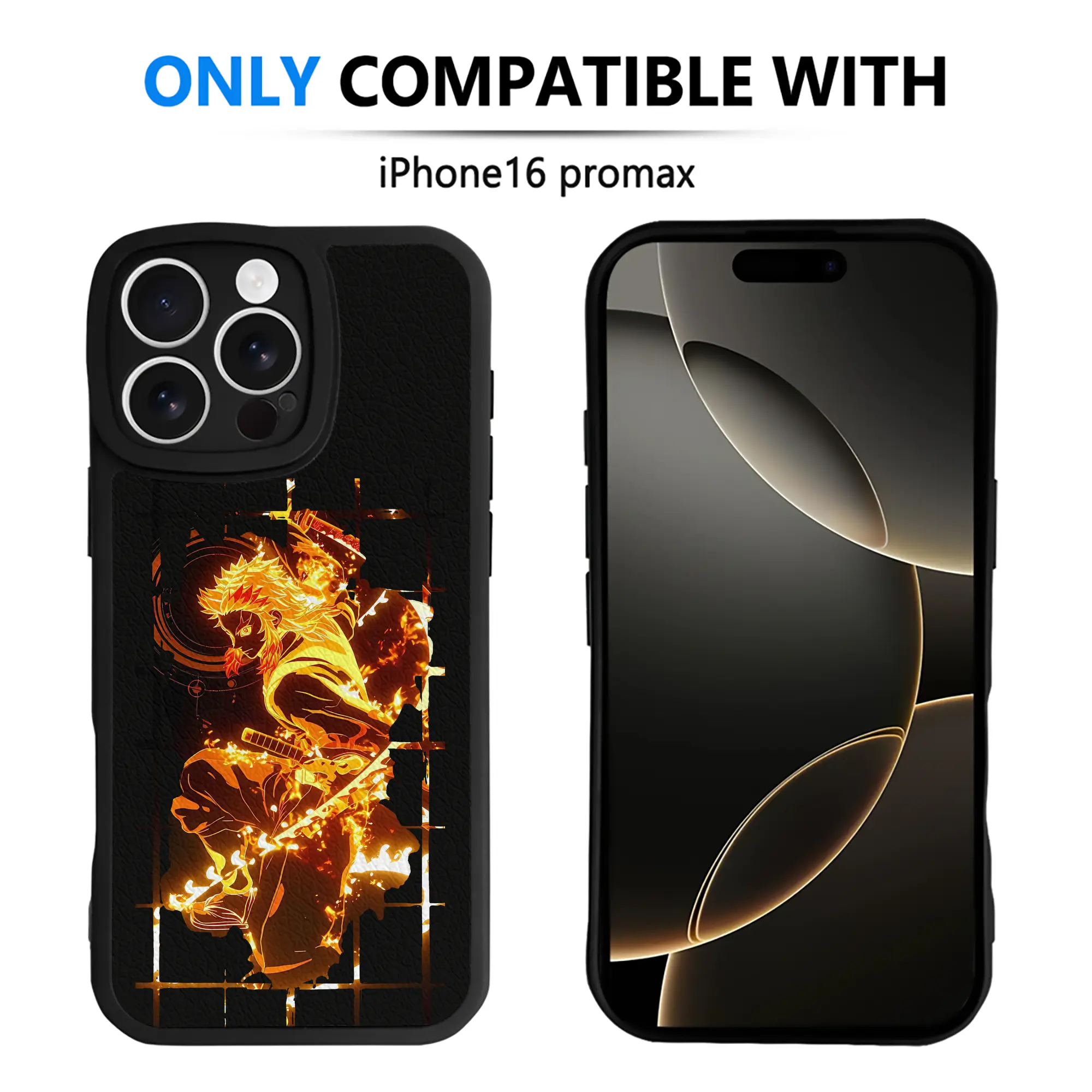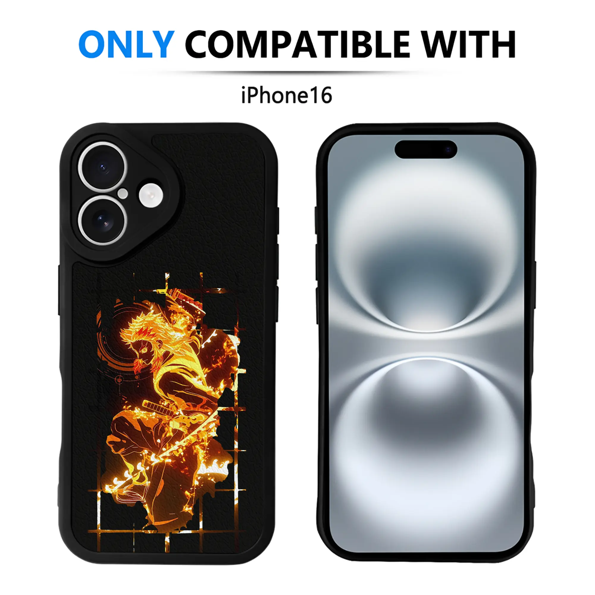 鬼滅の刃 グッズ,煉獄 杏寿郎 - IPhone 16シリーズ対応 ・ シリコンスマホケース ・ レザー調 ・ 高精度フィット ・ 耐衝撃 ・ ワイヤレス充電対応 ・ 精密カット