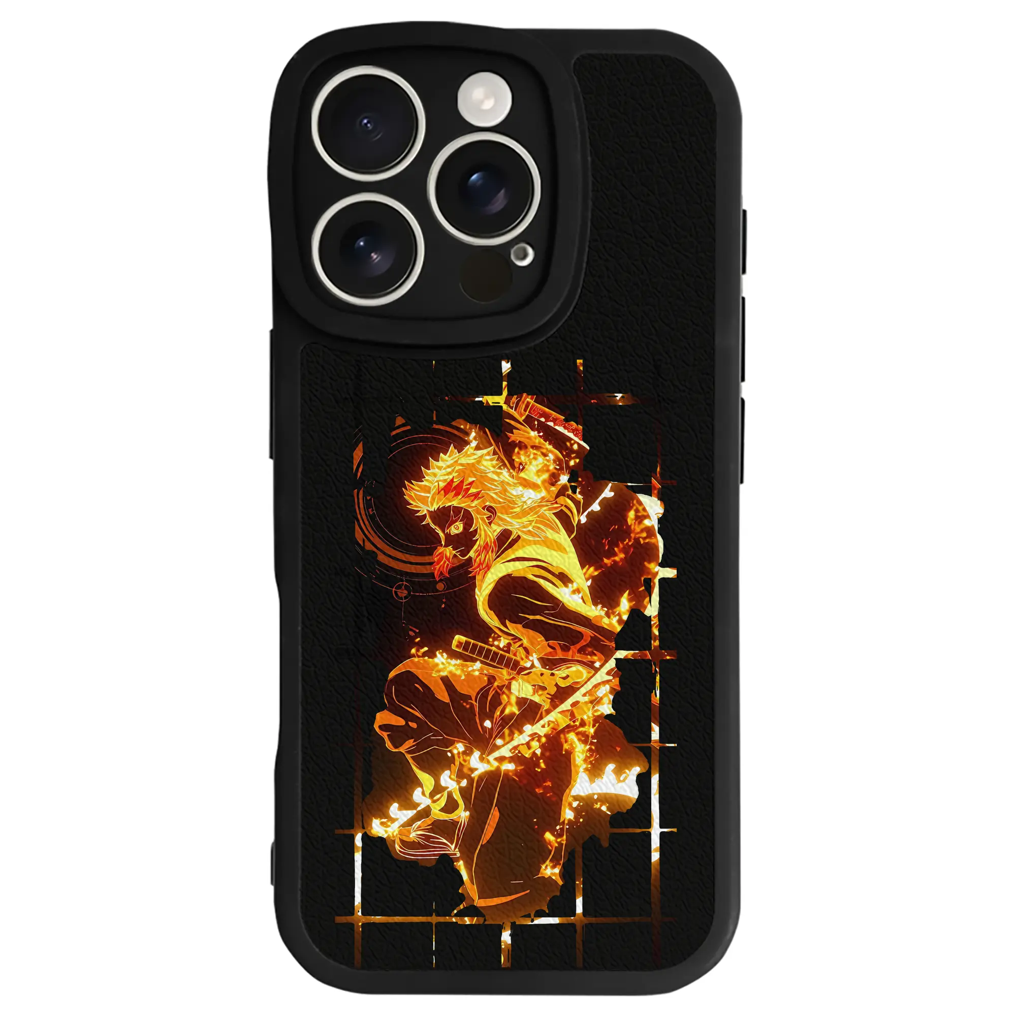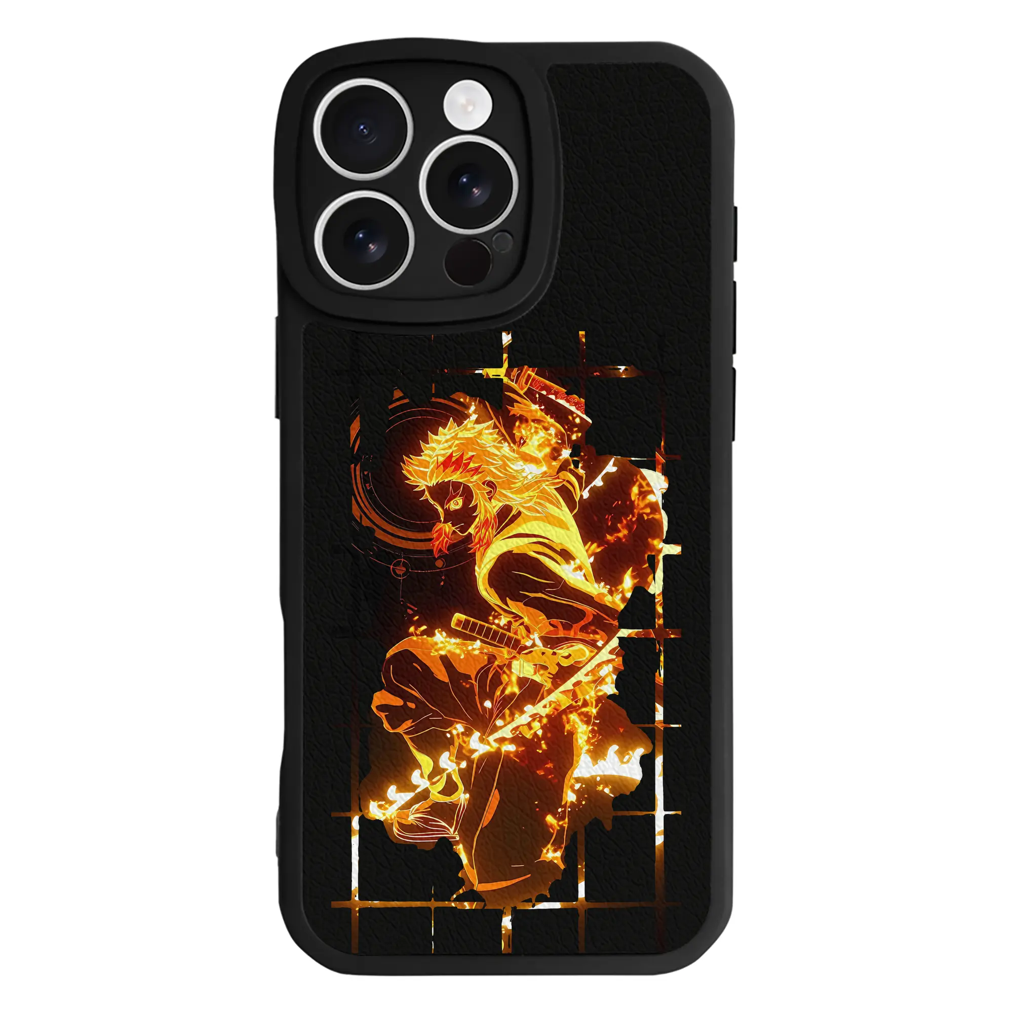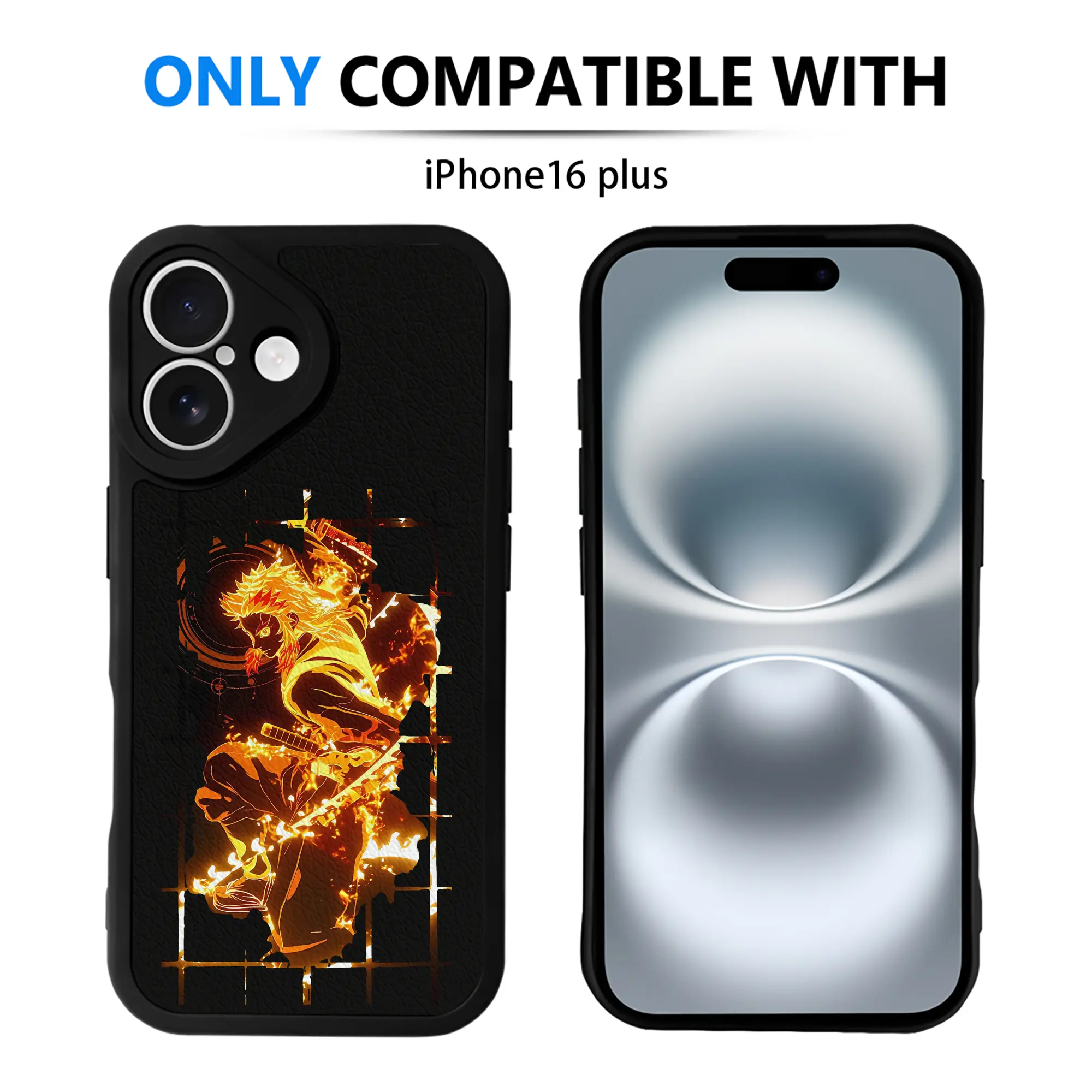 鬼滅の刃 グッズ,煉獄 杏寿郎 - IPhone 16シリーズ対応 ・ シリコンスマホケース ・ レザー調 ・ 高精度フィット ・ 耐衝撃 ・ ワイヤレス充電対応 ・ 精密カット
