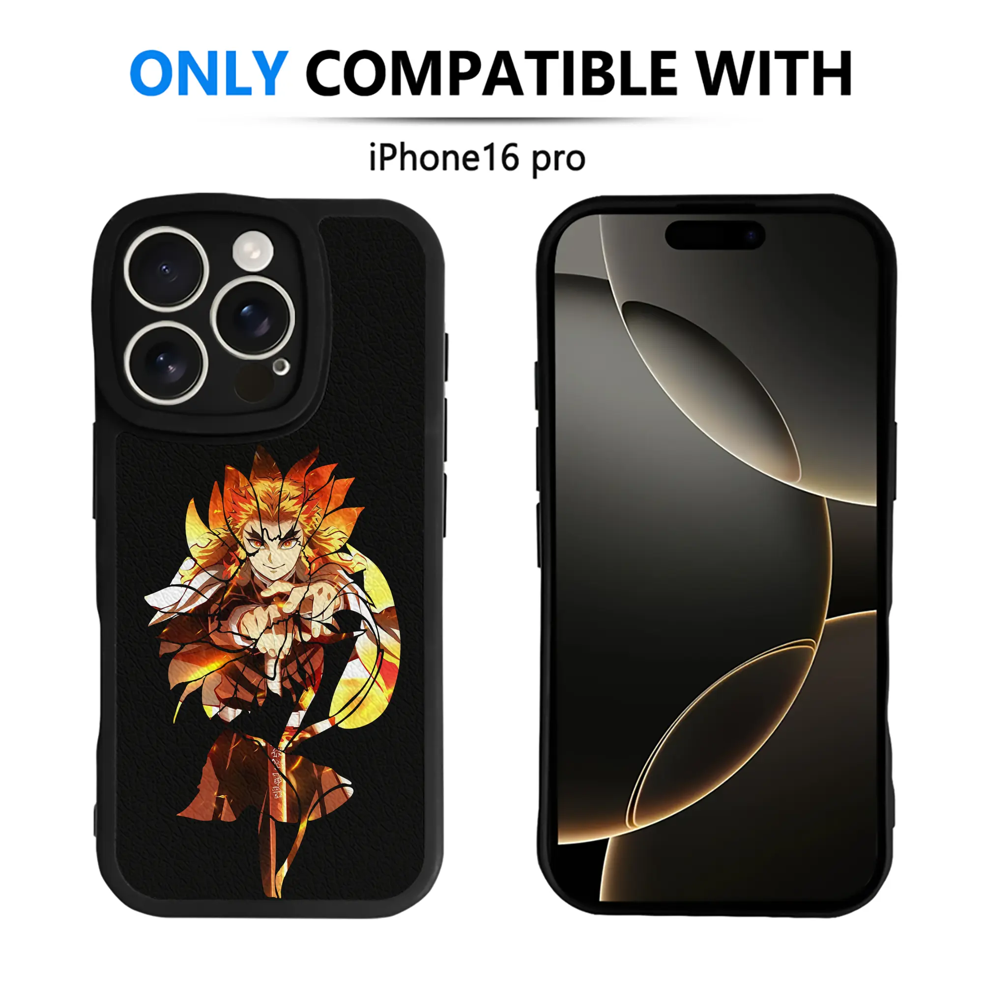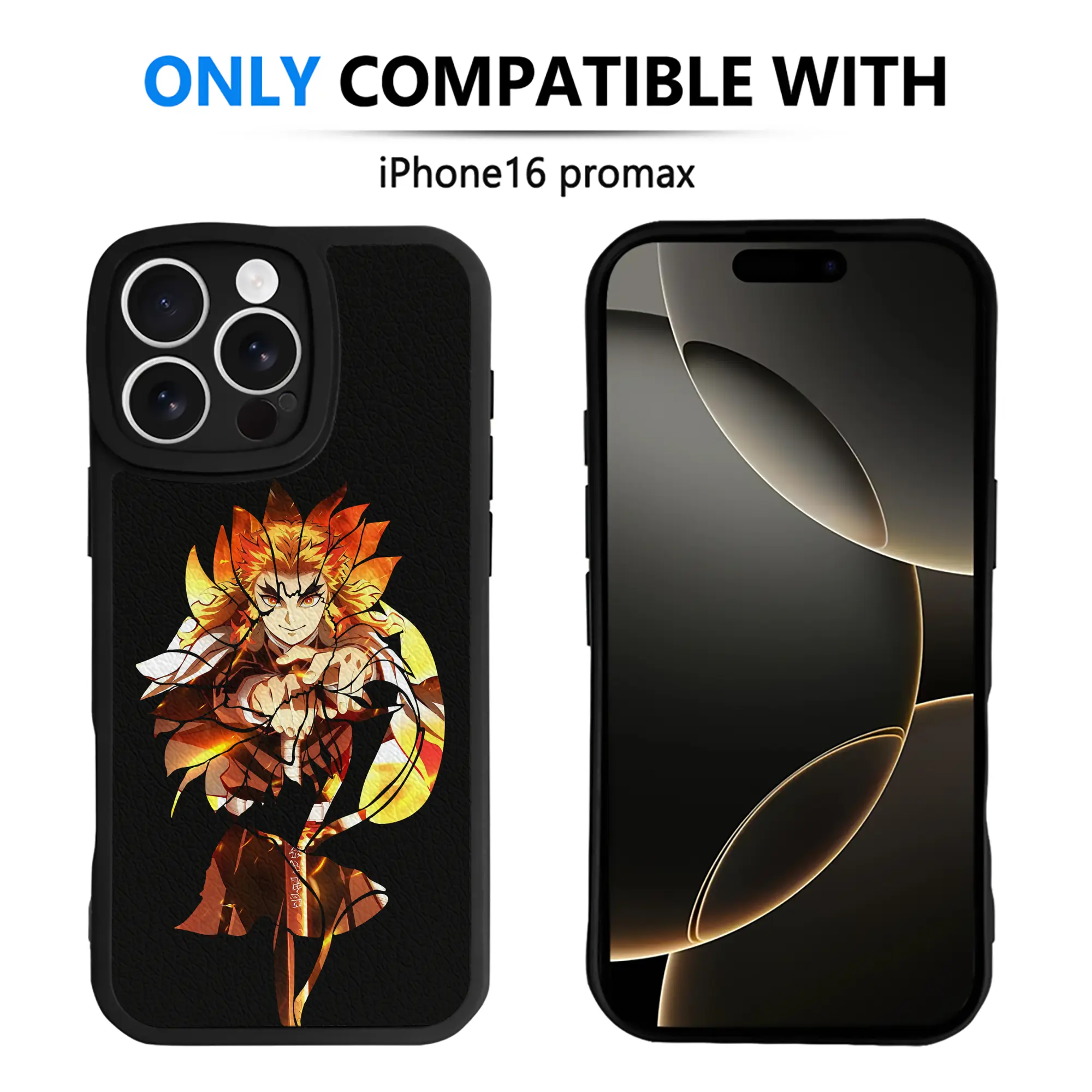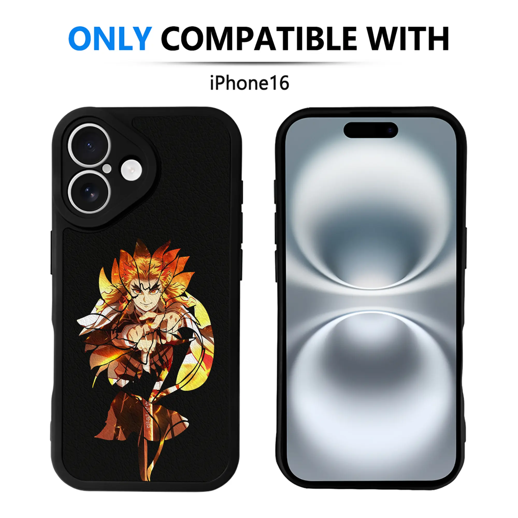 鬼滅の刃 グッズ,煉獄 杏寿郎 - IPhone 16シリーズ対応 ・ シリコンスマホケース ・ レザー調 ・ 高精度フィット ・ 耐衝撃 ・ ワイヤレス充電対応 ・ 精密カット