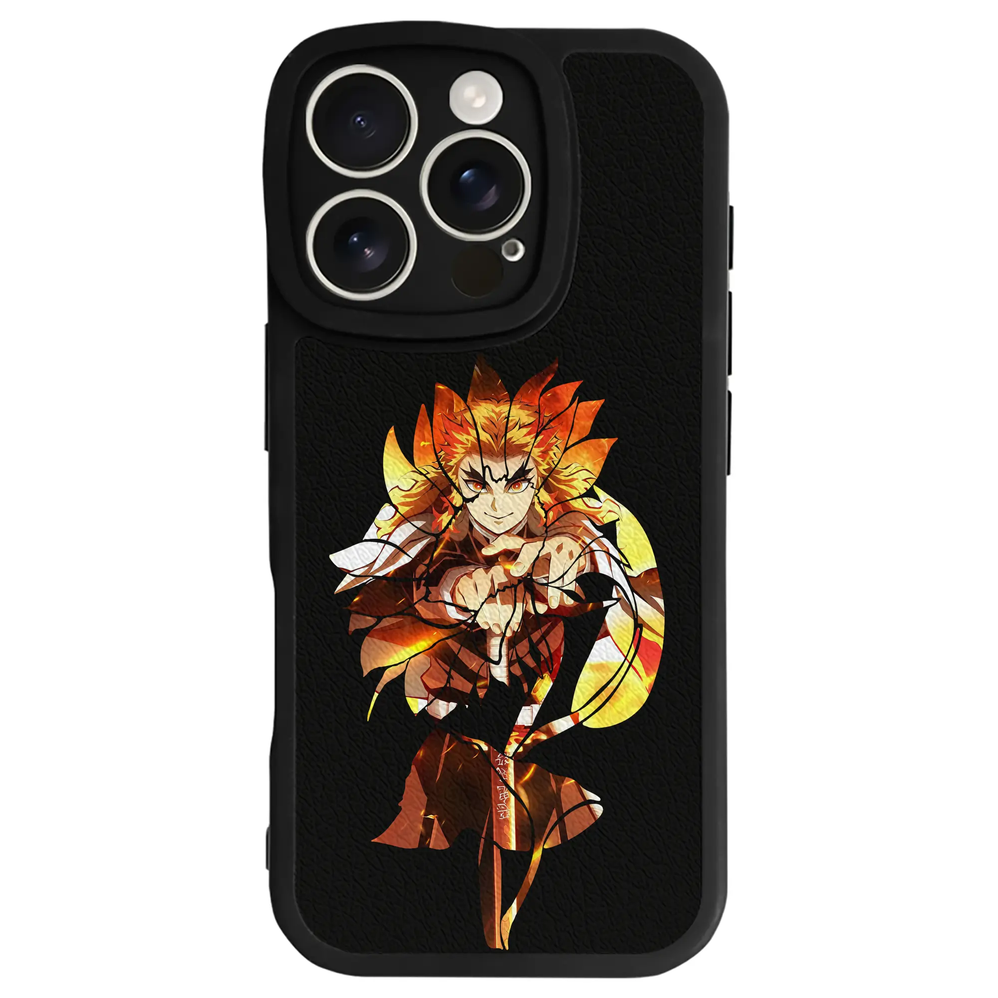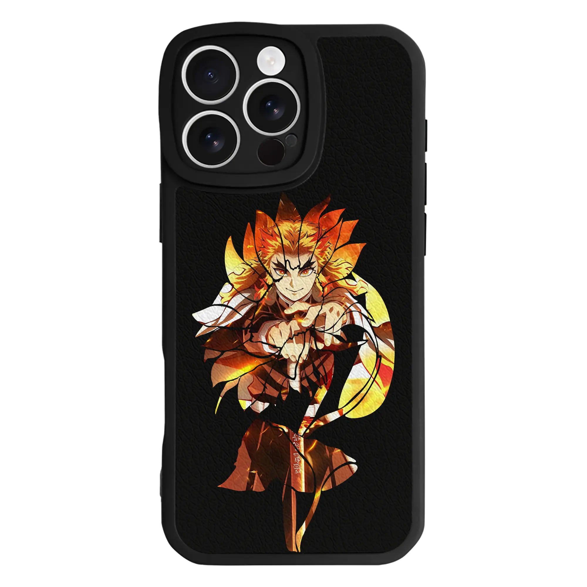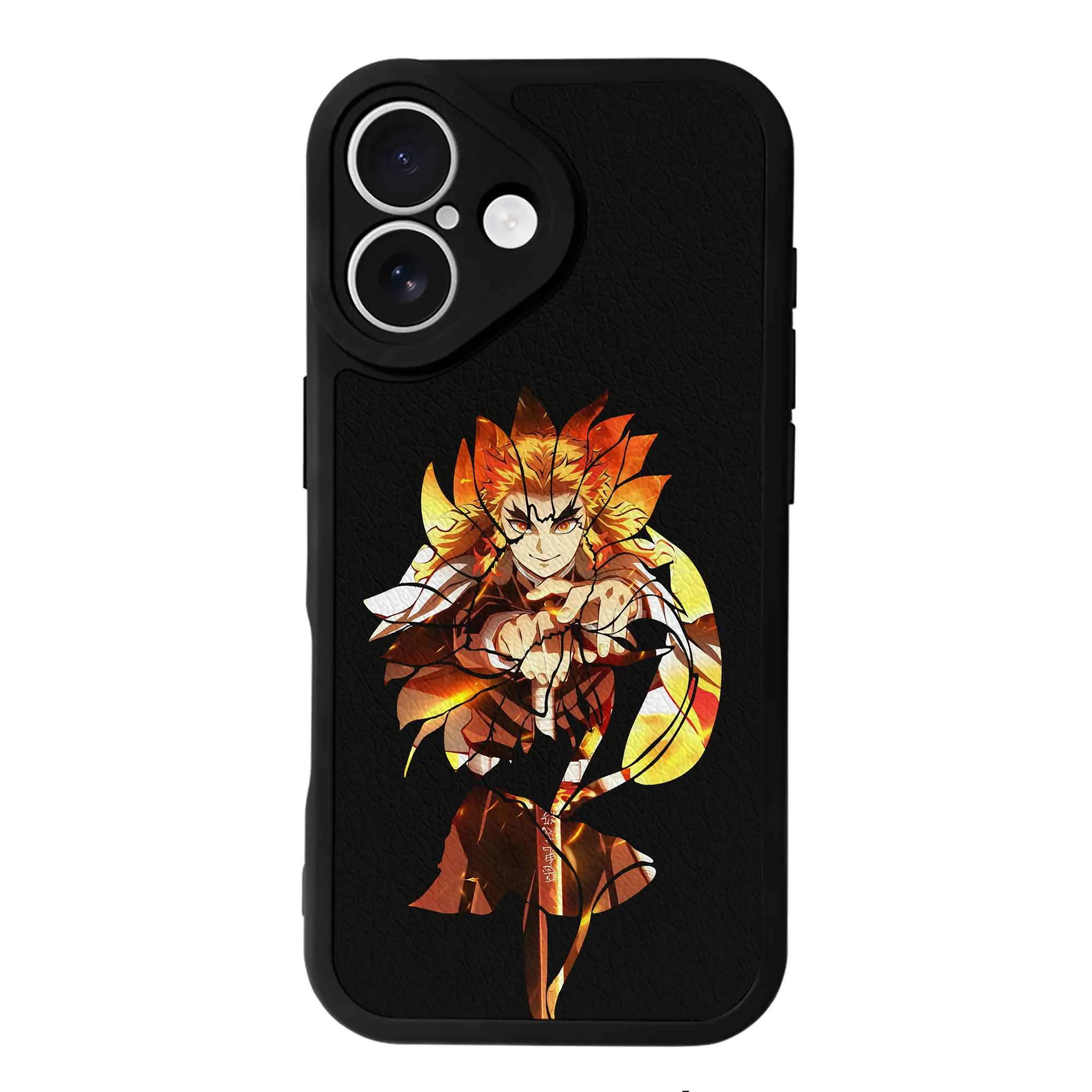 鬼滅の刃 グッズ,煉獄 杏寿郎 - IPhone 16シリーズ対応 ・ シリコンスマホケース ・ レザー調 ・ 高精度フィット ・ 耐衝撃 ・ ワイヤレス充電対応 ・ 精密カット