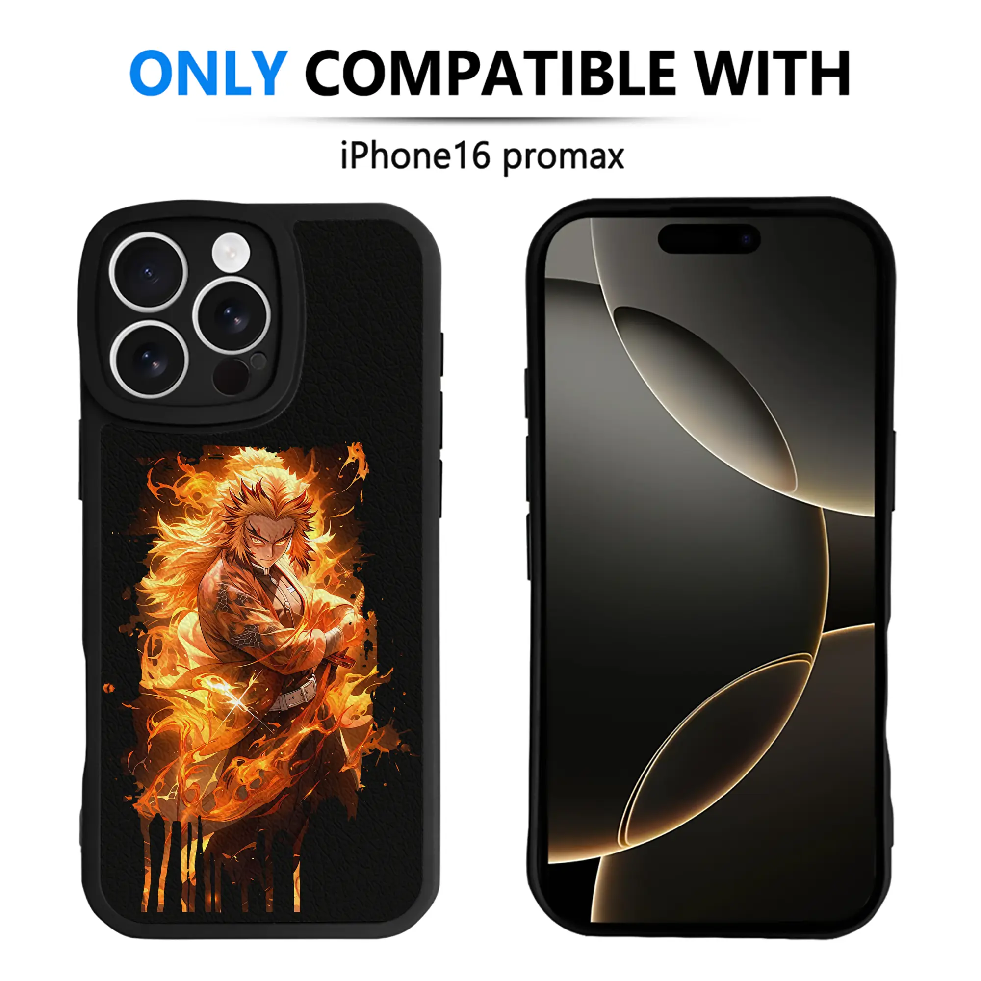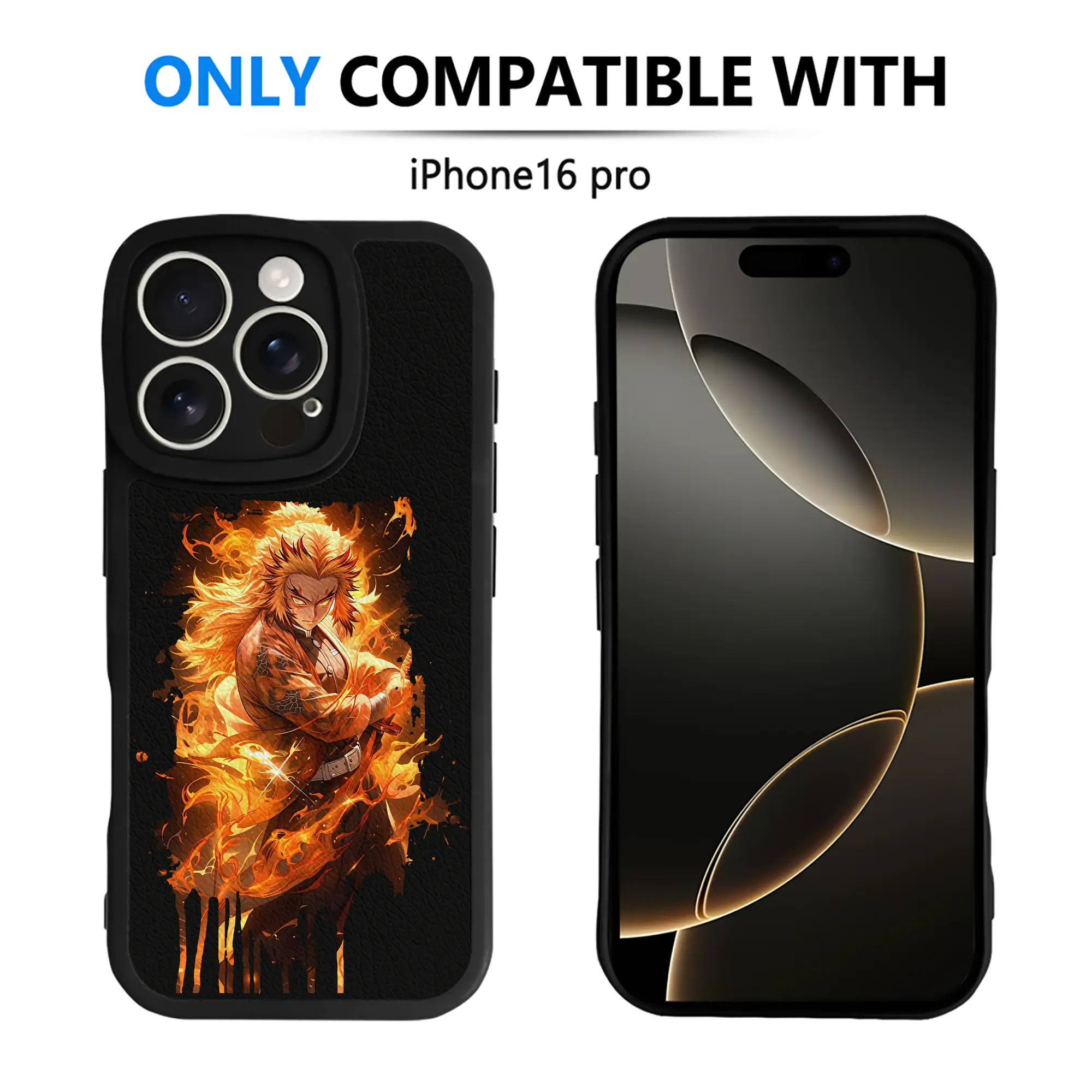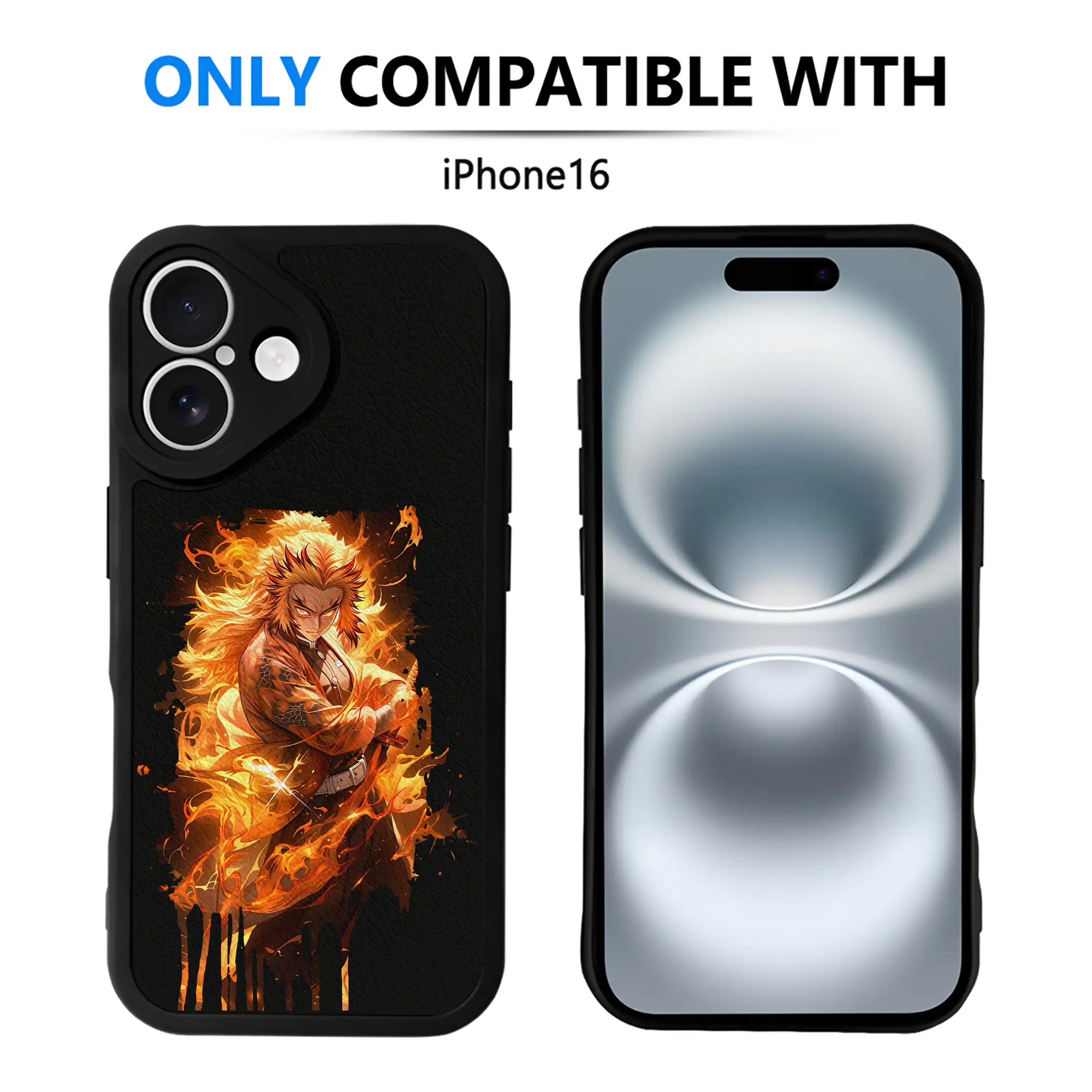 鬼滅の刃 グッズ,煉獄 杏寿郎 - IPhone 16シリーズ対応 ・ シリコンスマホケース ・ レザー調 ・ 高精度フィット ・ 耐衝撃 ・ ワイヤレス充電対応 ・ 精密カット