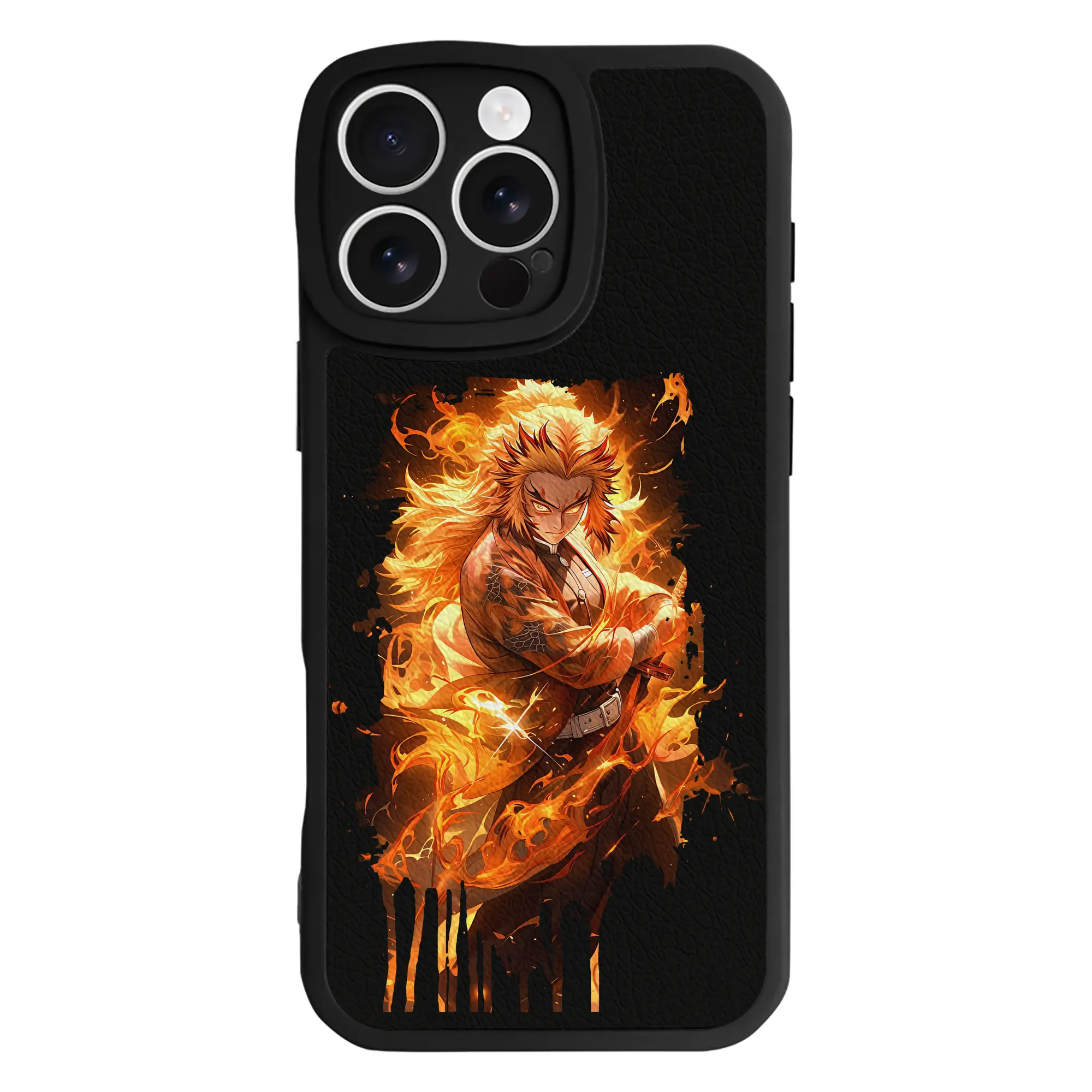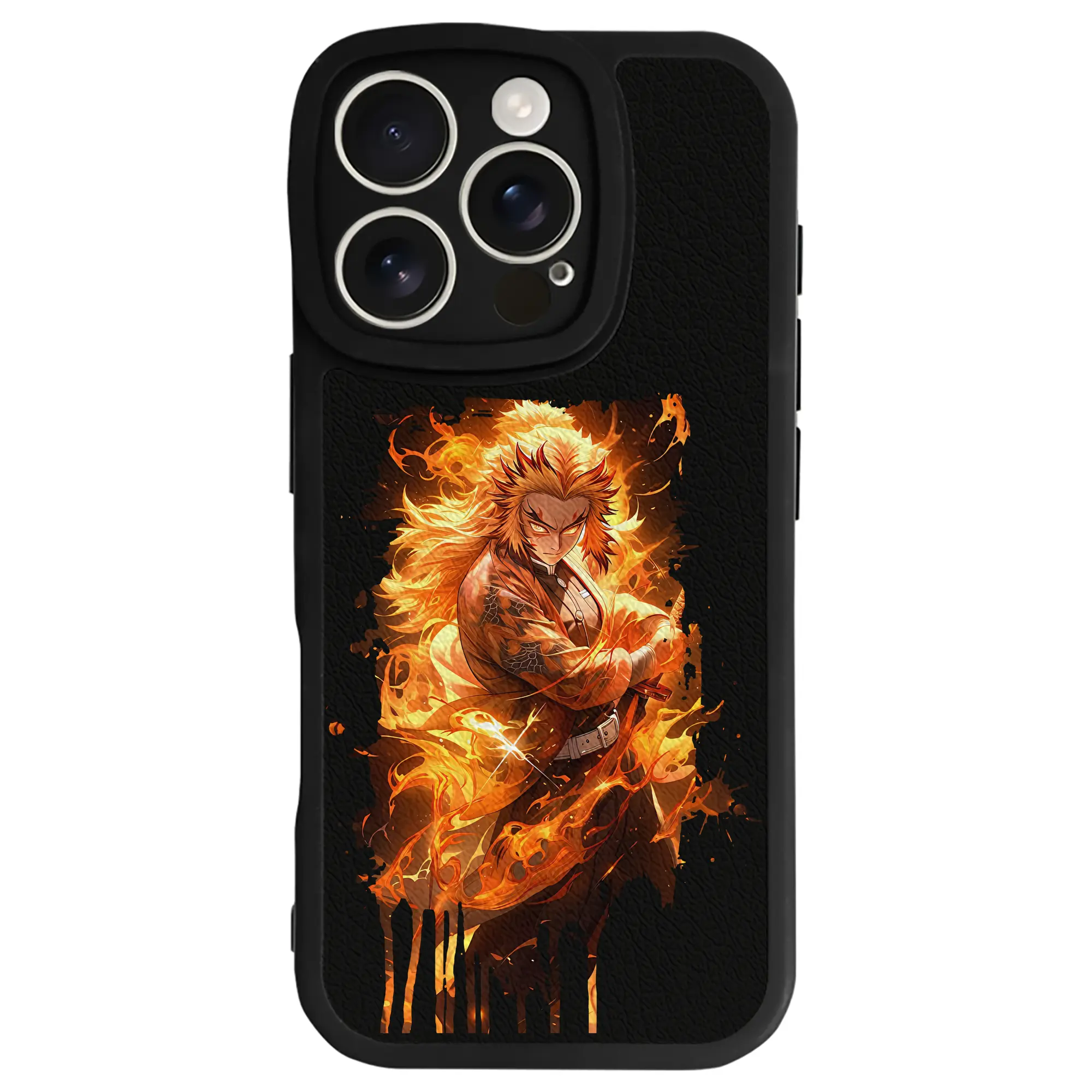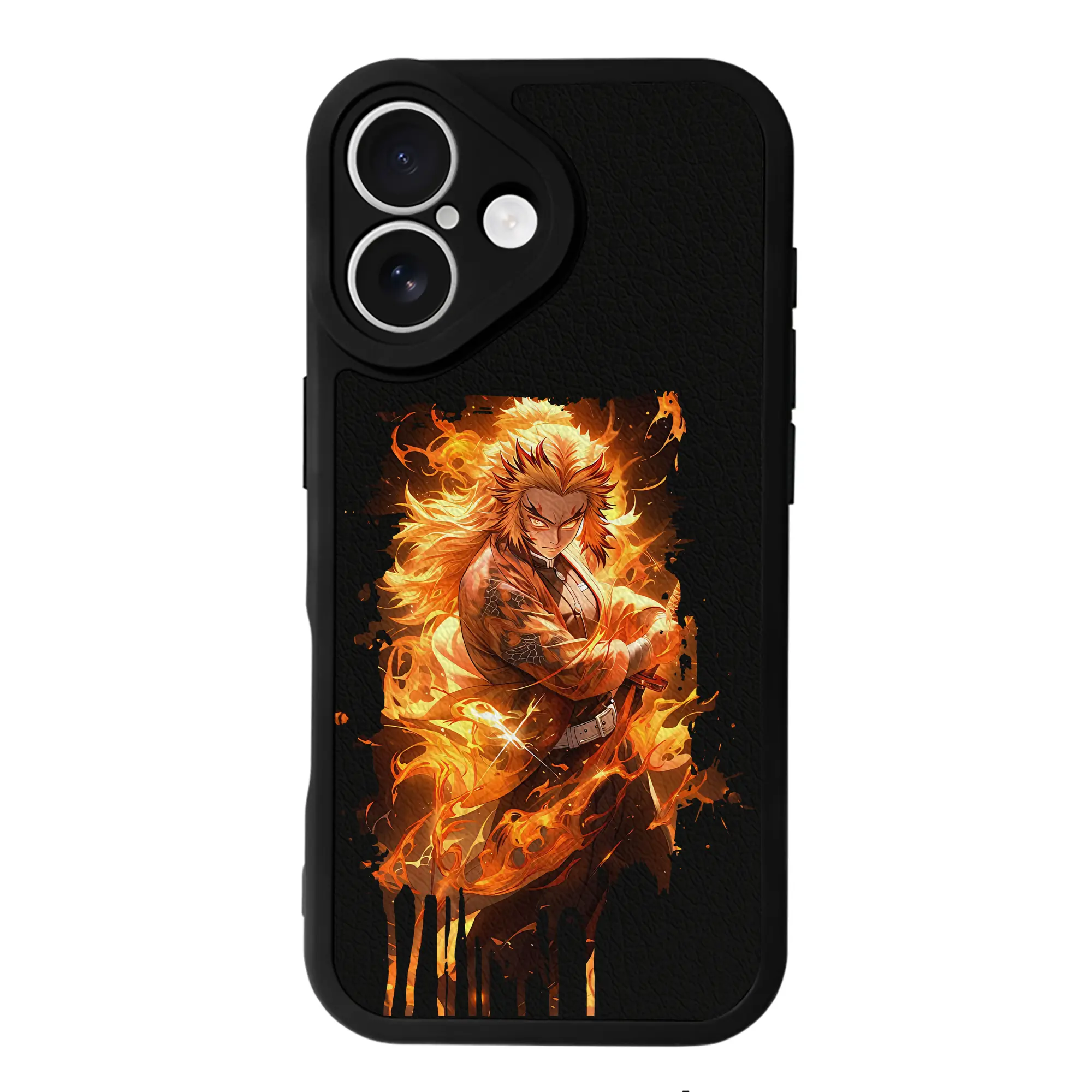 鬼滅の刃 グッズ,煉獄 杏寿郎 - IPhone 16シリーズ対応 ・ シリコンスマホケース ・ レザー調 ・ 高精度フィット ・ 耐衝撃 ・ ワイヤレス充電対応 ・ 精密カット