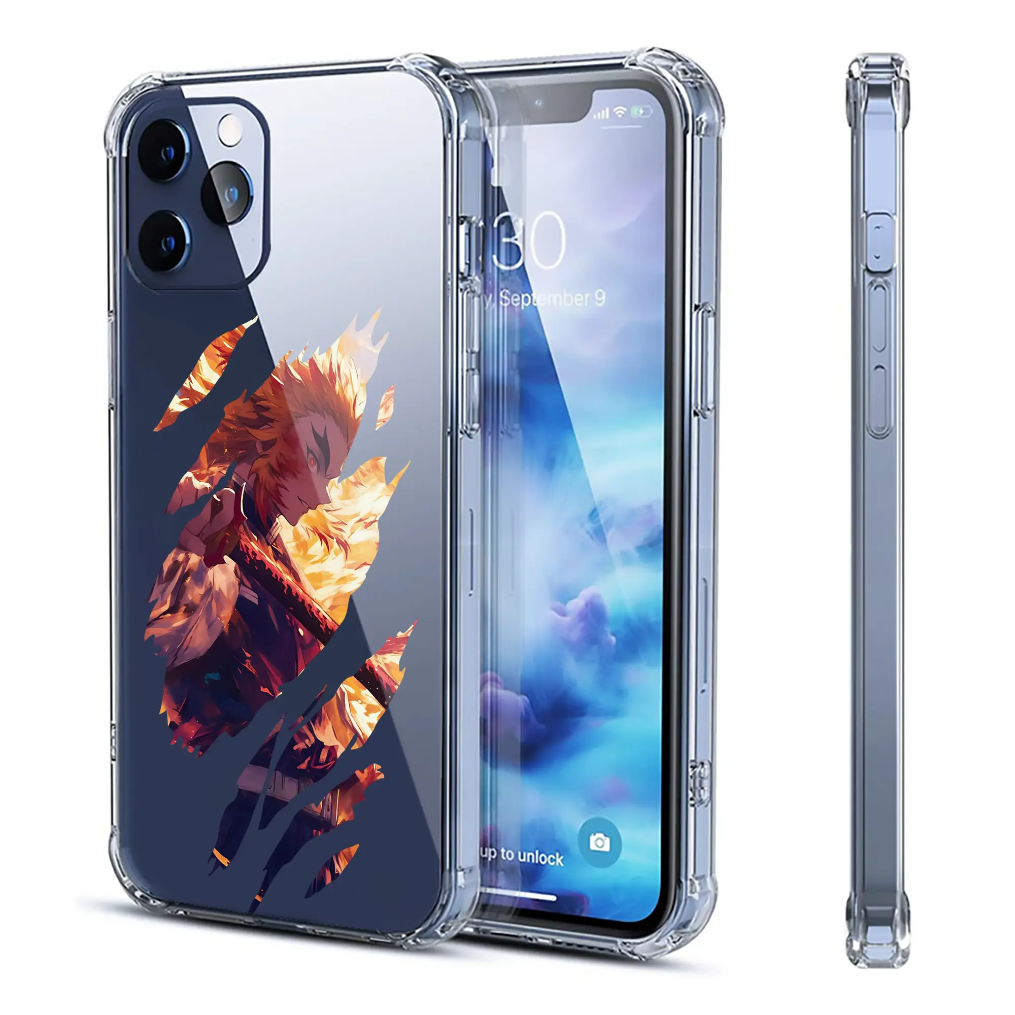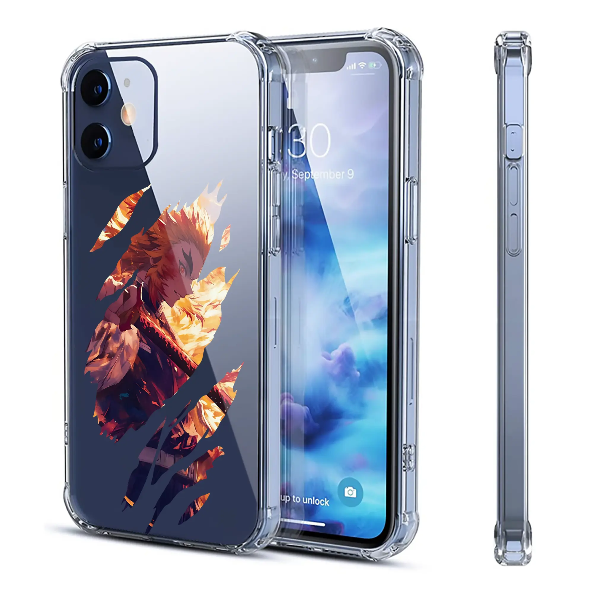 鬼滅の刃 グッズ,煉獄 杏寿郎 - IPhone 12シリーズ対応 ・ 透明スマホケース ・ クリアソフトケース ・ TPU素材 ・ 耐衝撃 ・ 高密着 ・ 防汚 防指紋 ・ 簡単着脱