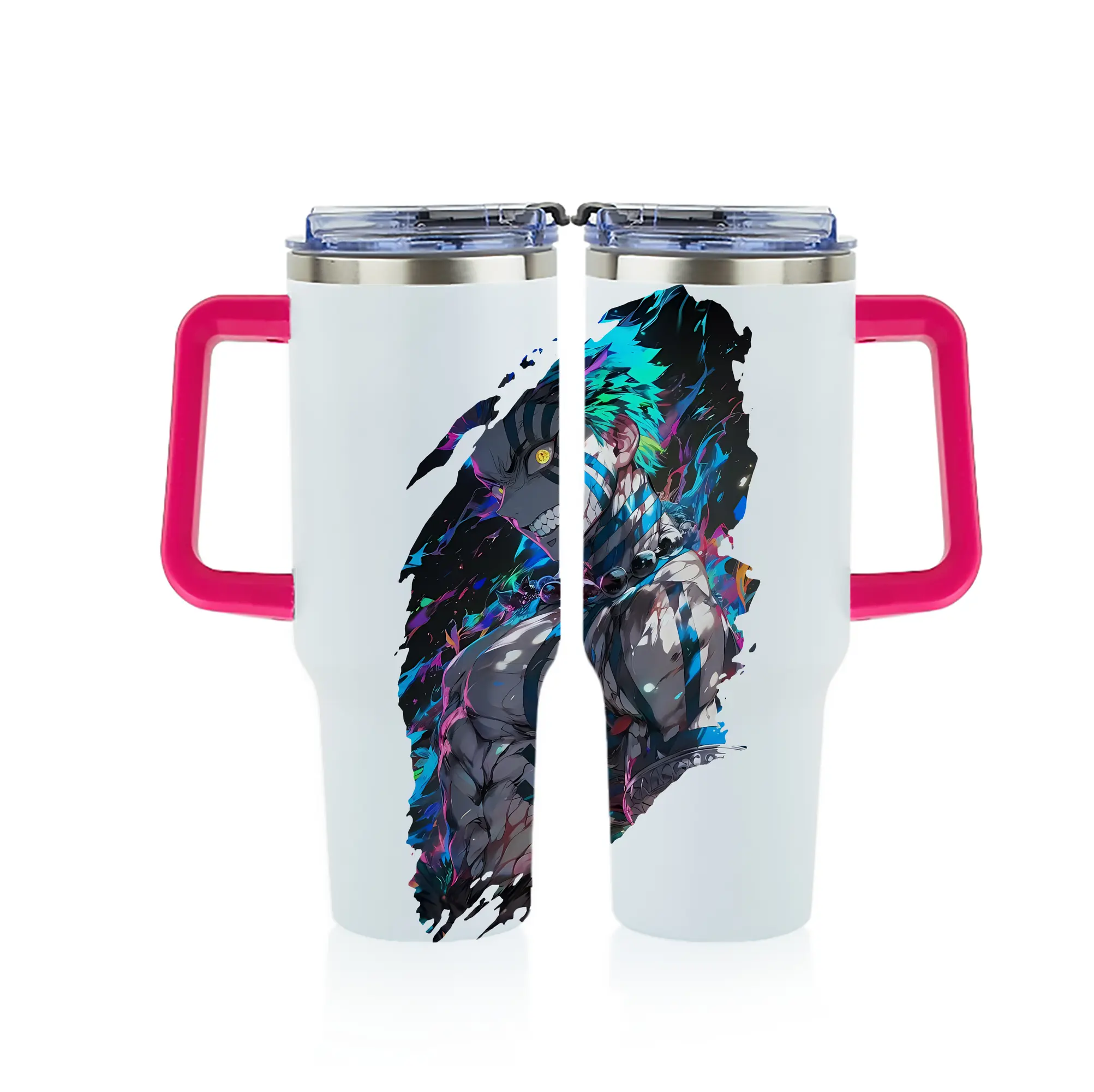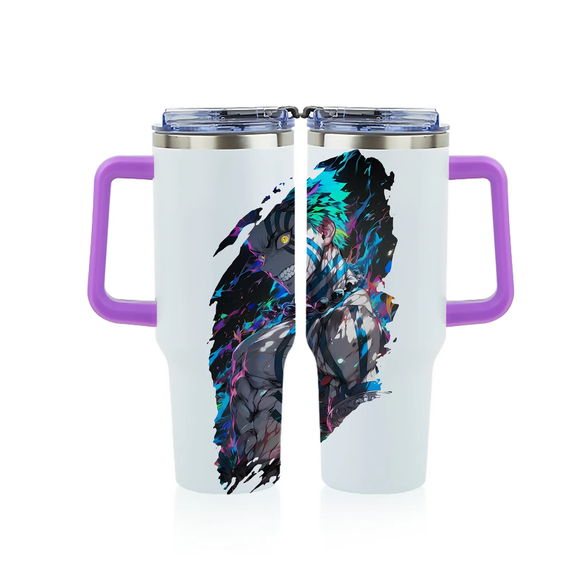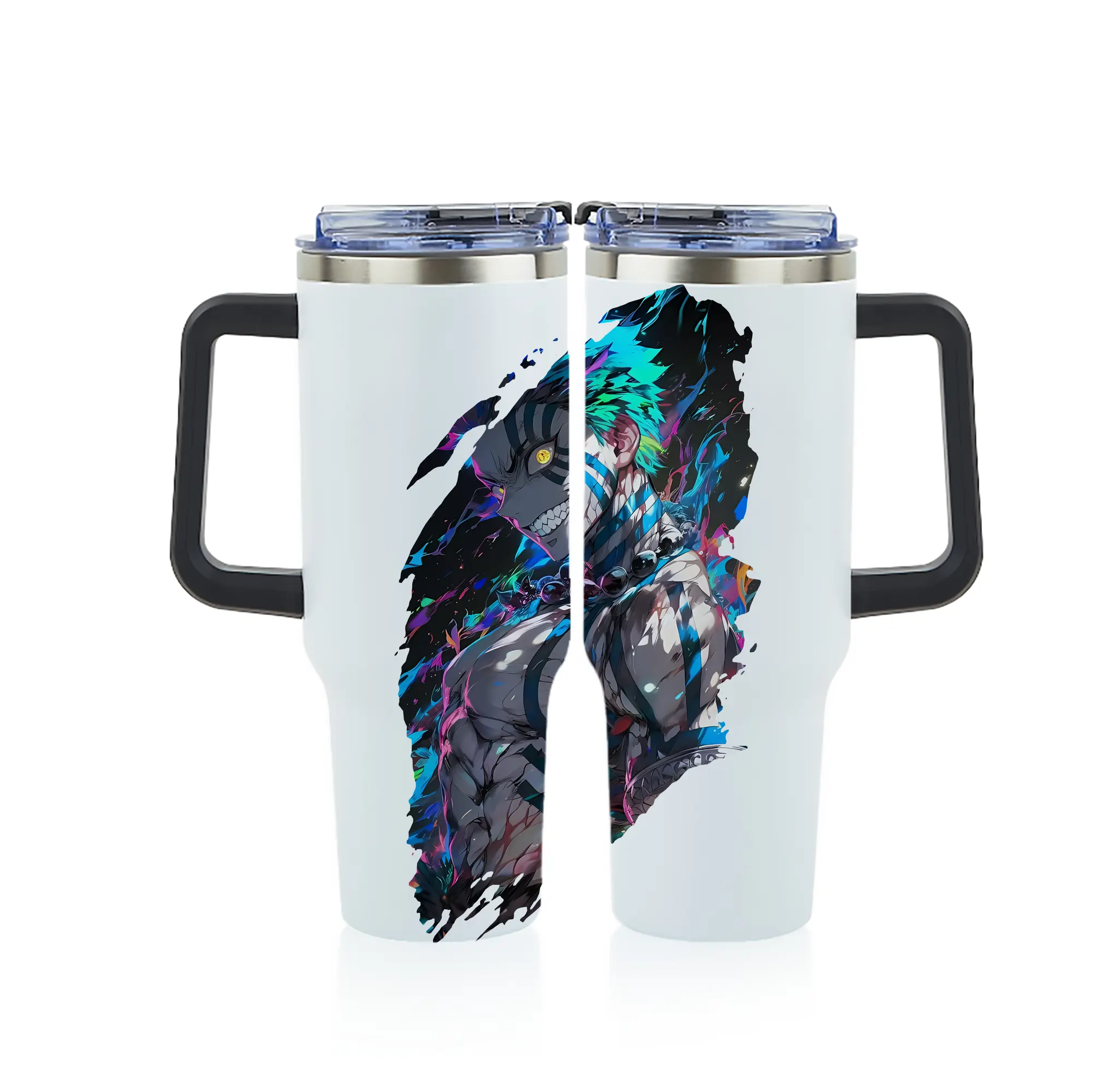 鬼滅の刃 グッズ,猗窩座 - 1200mL フルプリント車用タンブラー ・ 304ステンレス 内側 ・ 201ステンレス 外側 ・ 保温 保冷 ・ 通勤 ドライブ アウトドア用