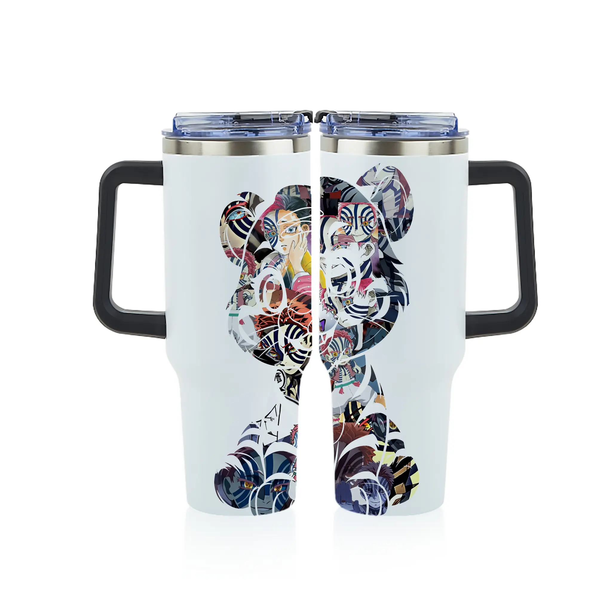 鬼滅の刃 グッズ,猗窩座 - 1200mL フルプリント車用タンブラー ・ 304ステンレス 内側 ・ 201ステンレス 外側 ・ 保温 保冷 ・ 通勤 ドライブ アウトドア用