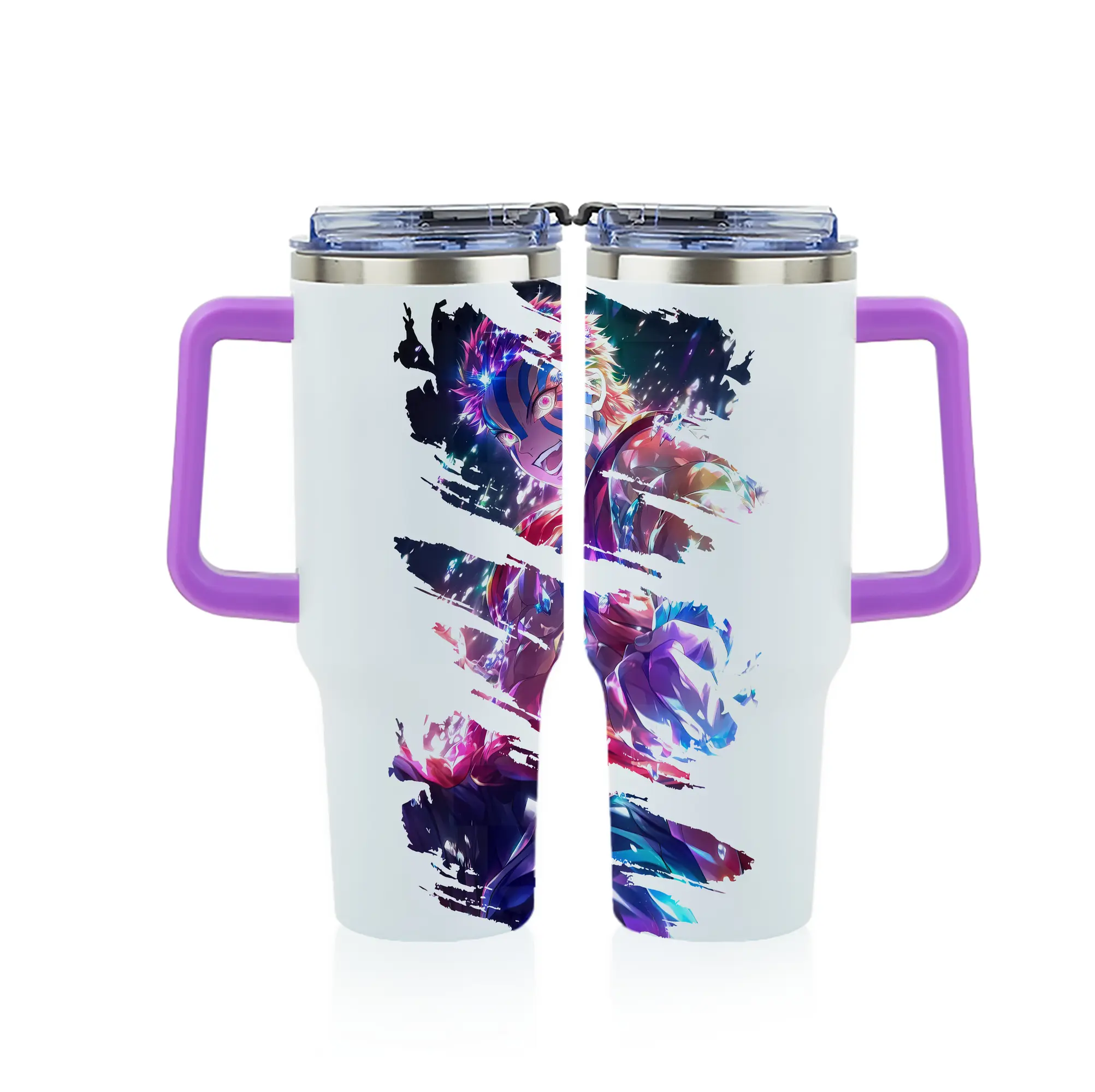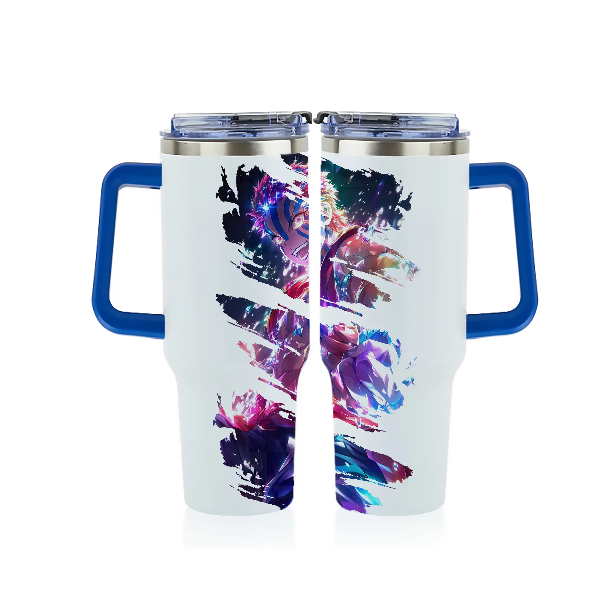 鬼滅の刃 グッズ,猗窩座 - 1200mL フルプリント車用タンブラー ・ 304ステンレス 内側 ・ 201ステンレス 外側 ・ 保温 保冷 ・ 通勤 ドライブ アウトドア用