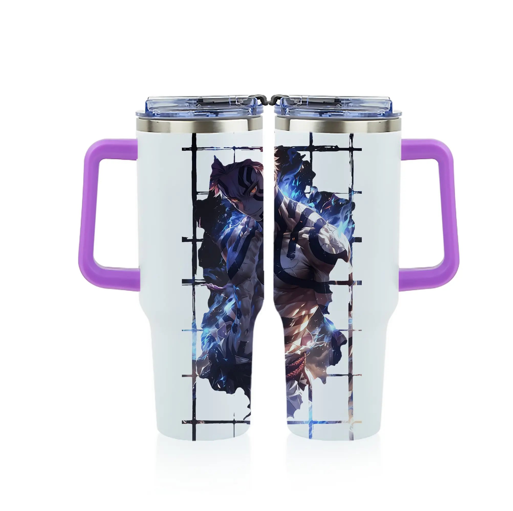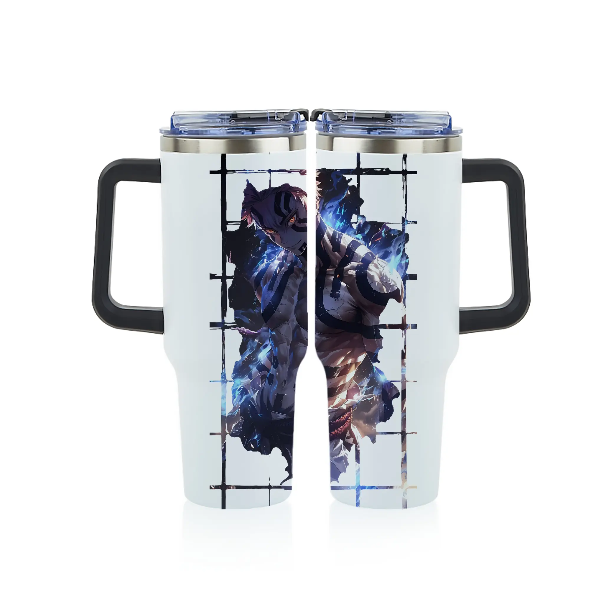 鬼滅の刃 グッズ,猗窩座 - 1200mL フルプリント車用タンブラー ・ 304ステンレス 内側 ・ 201ステンレス 外側 ・ 保温 保冷 ・ 通勤 ドライブ アウトドア用