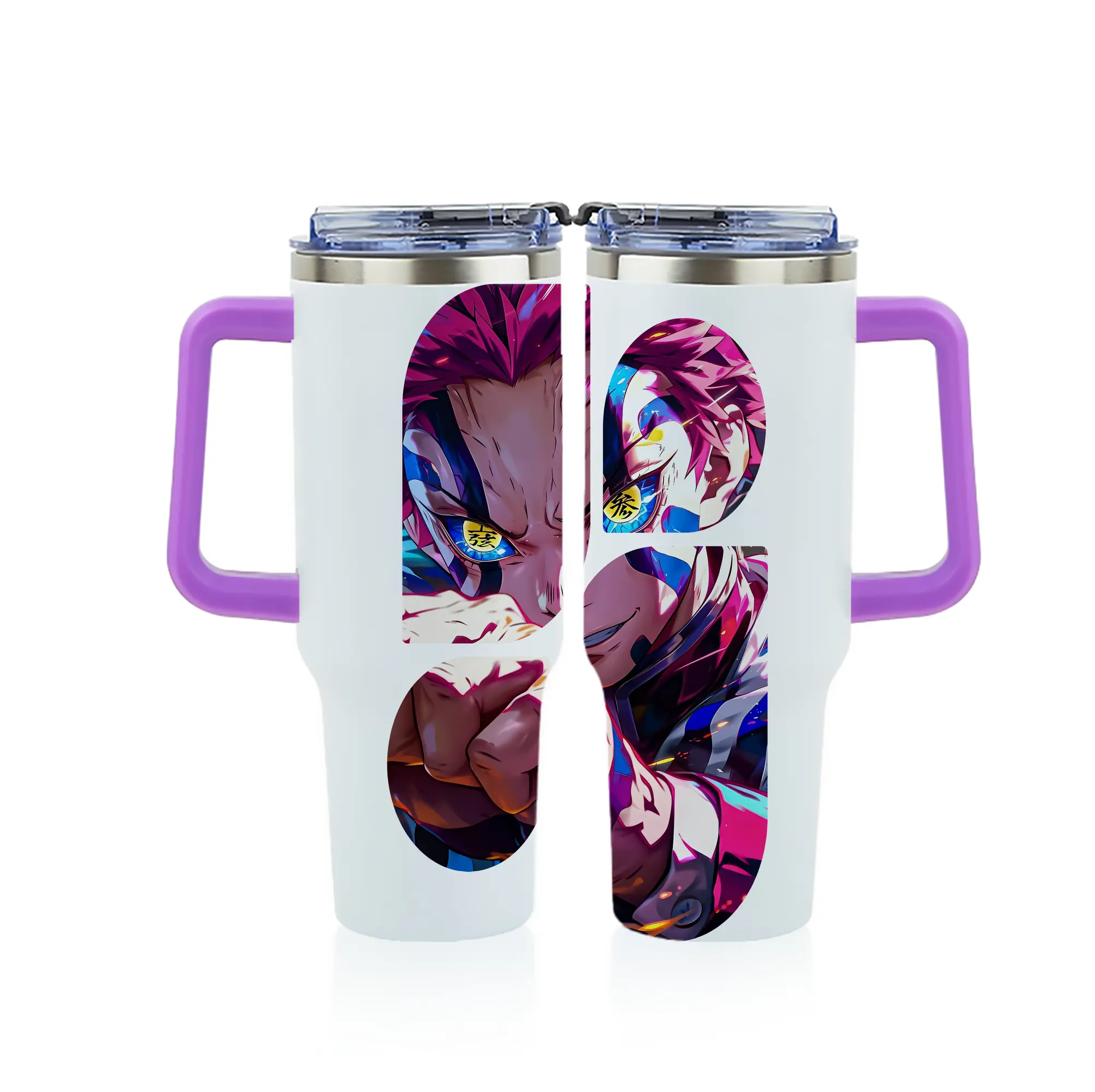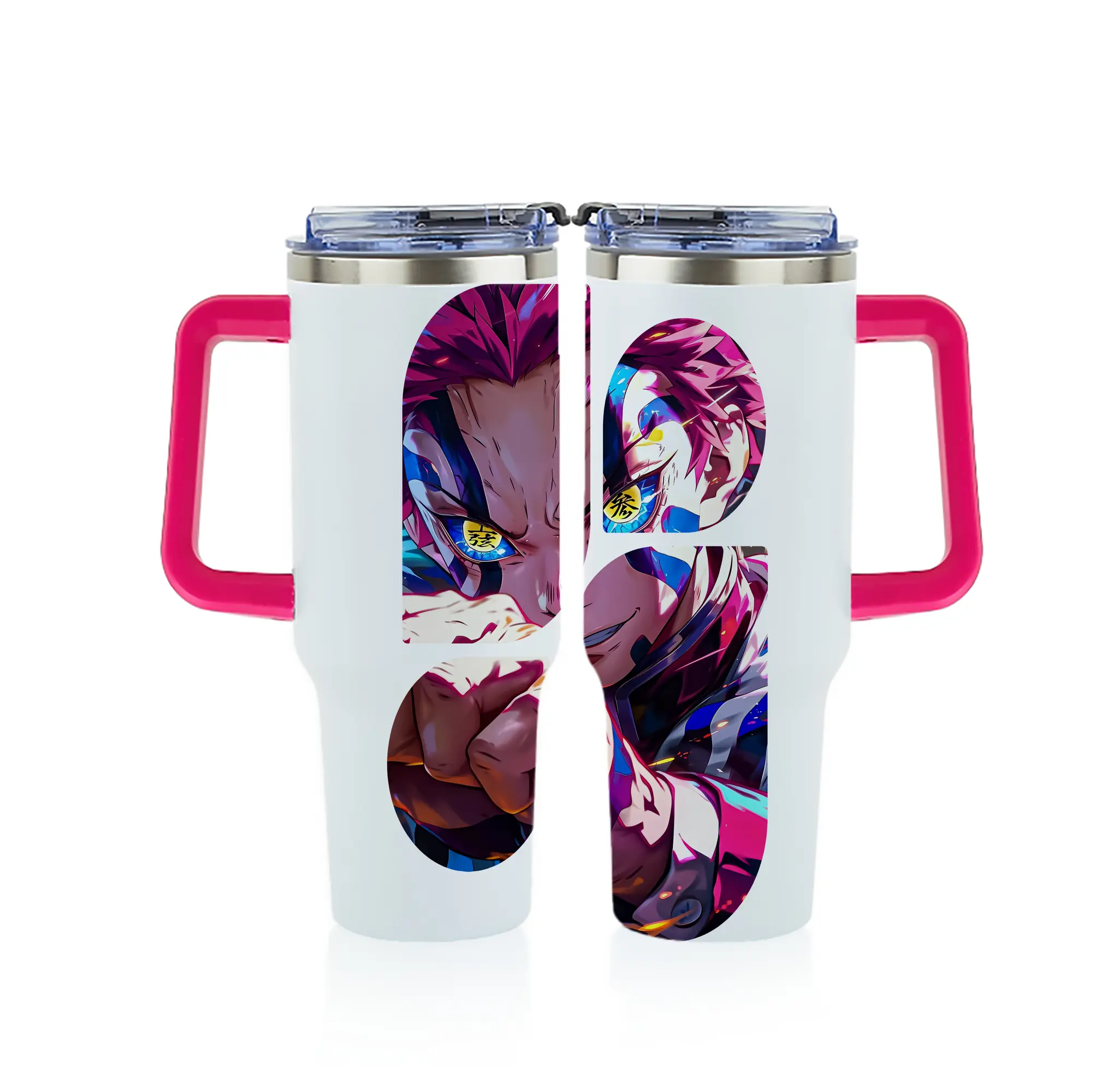鬼滅の刃 グッズ,猗窩座 - 1200mL フルプリント車用タンブラー ・ 304ステンレス 内側 ・ 201ステンレス 外側 ・ 保温 保冷 ・ 通勤 ドライブ アウトドア用