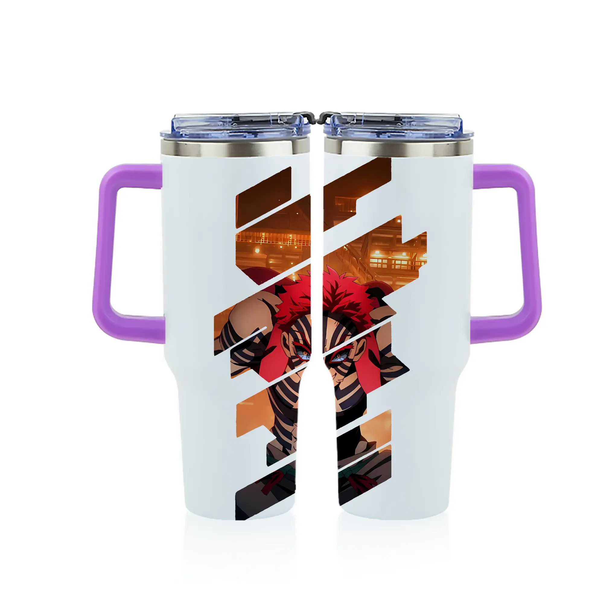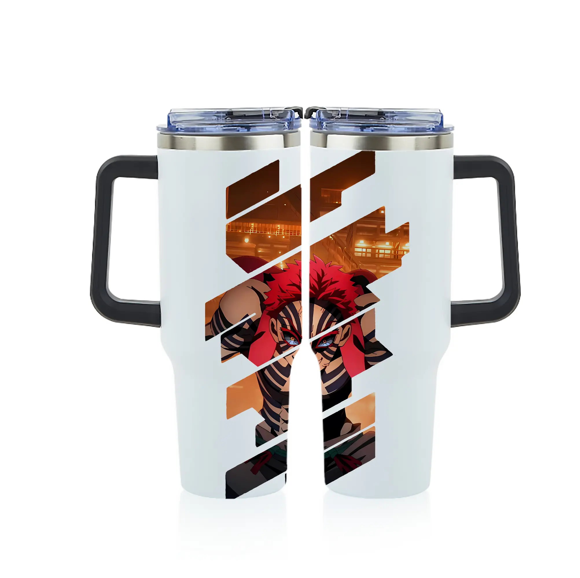 鬼滅の刃 グッズ,猗窩座 - 1200mL フルプリント車用タンブラー ・ 304ステンレス 内側 ・ 201ステンレス 外側 ・ 保温 保冷 ・ 通勤 ドライブ アウトドア用