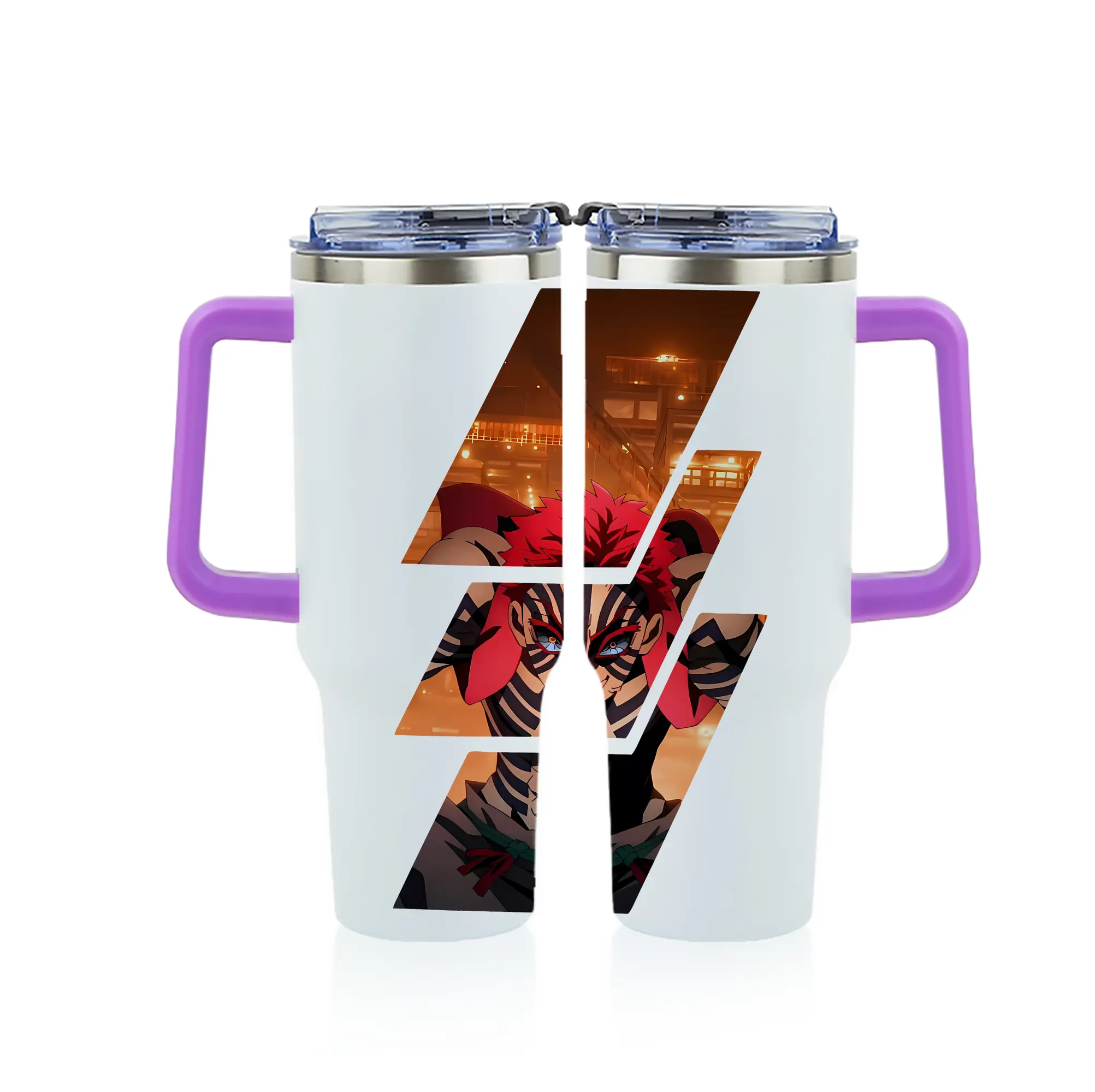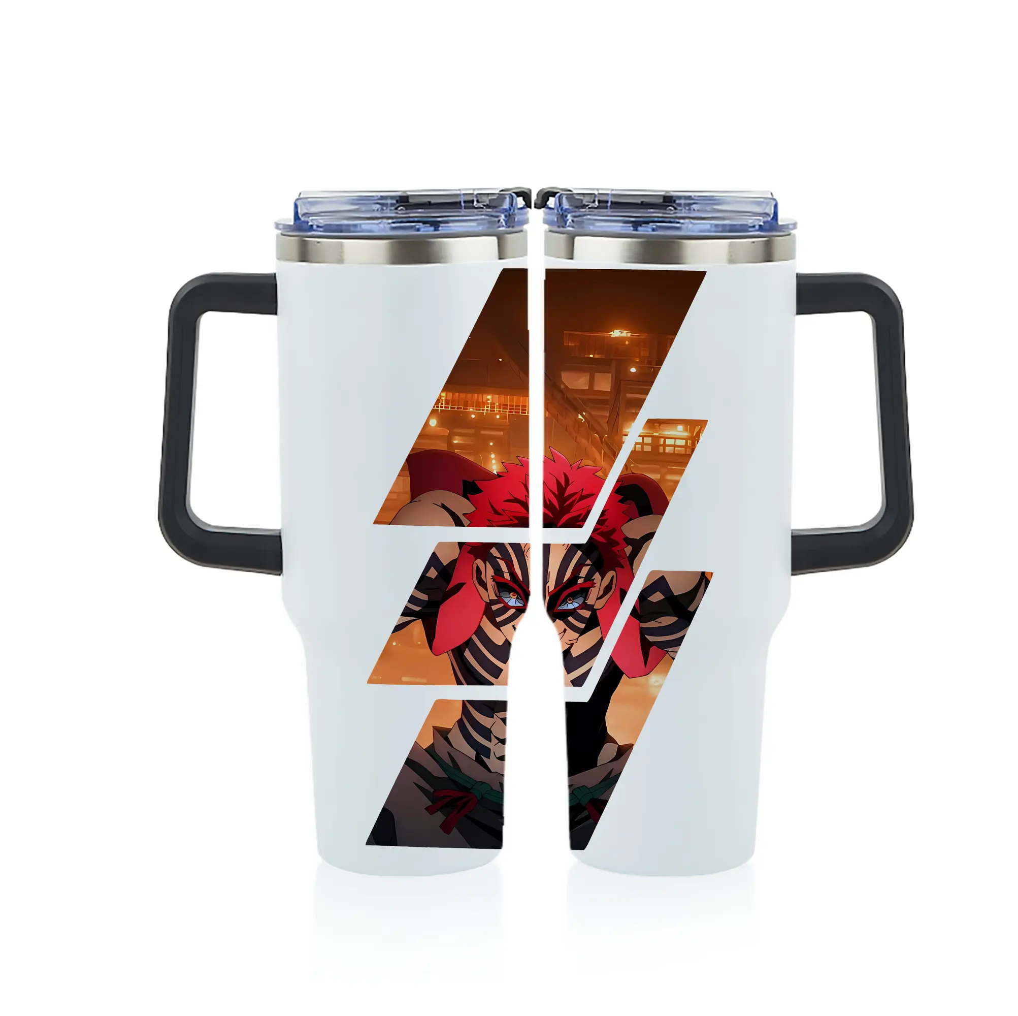 鬼滅の刃 グッズ,猗窩座 - 1200mL フルプリント車用タンブラー ・ 304ステンレス 内側 ・ 201ステンレス 外側 ・ 保温 保冷 ・ 通勤 ドライブ アウトドア用