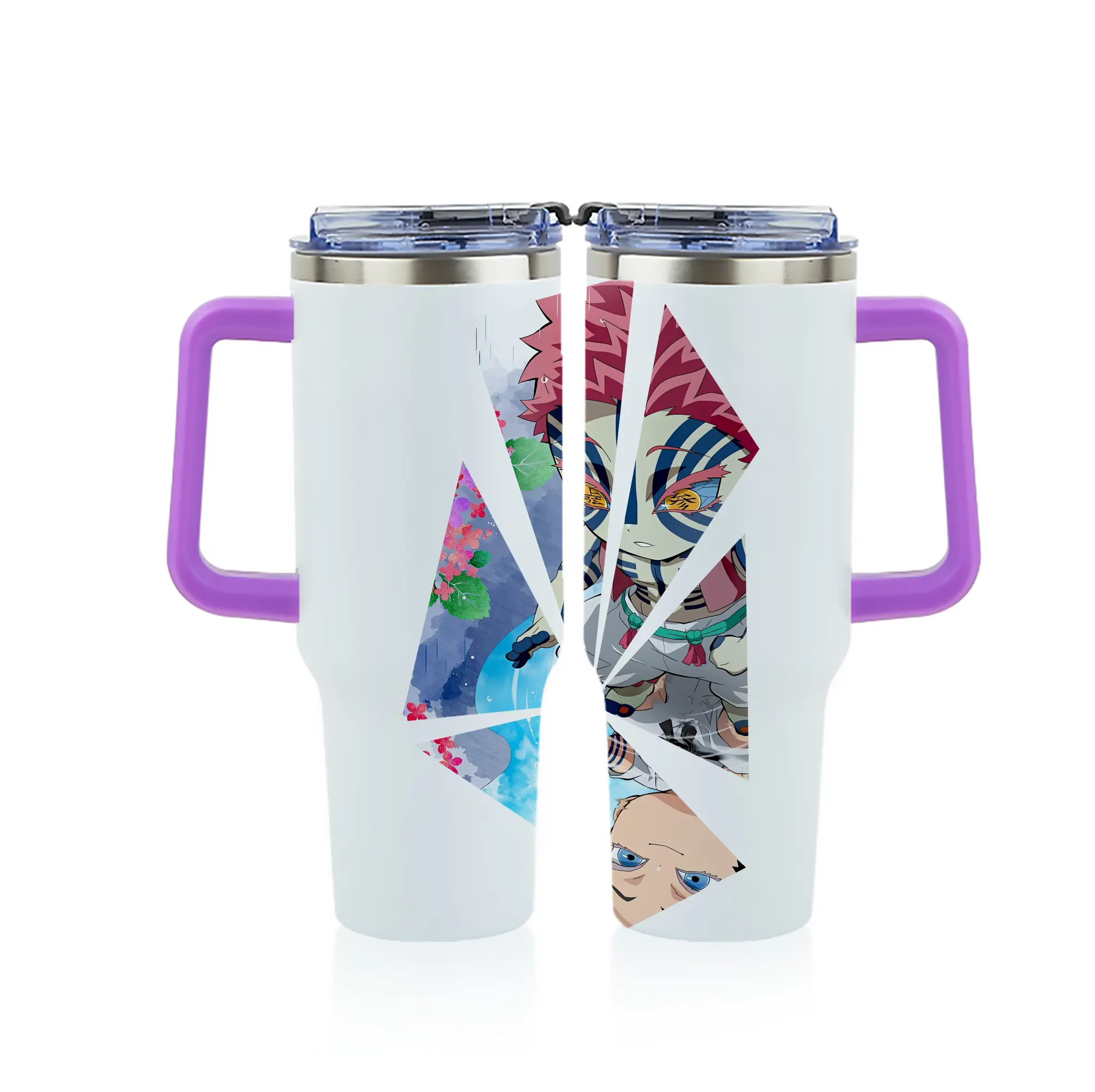 鬼滅の刃 グッズ,猗窩座 - 1200mL フルプリント車用タンブラー ・ 304ステンレス 内側 ・ 201ステンレス 外側 ・ 保温 保冷 ・ 通勤 ドライブ アウトドア用