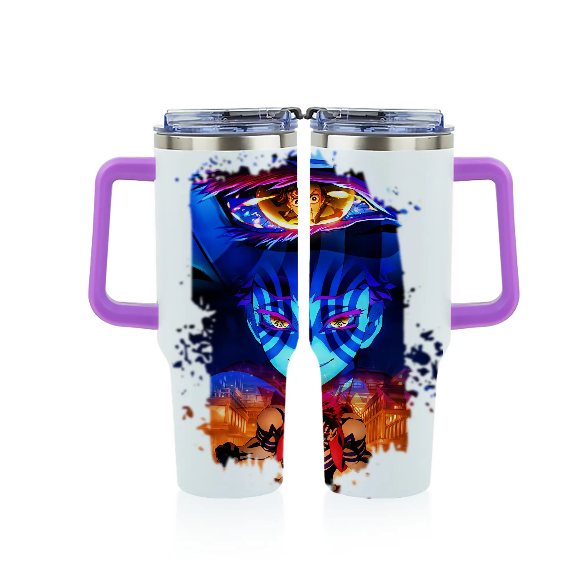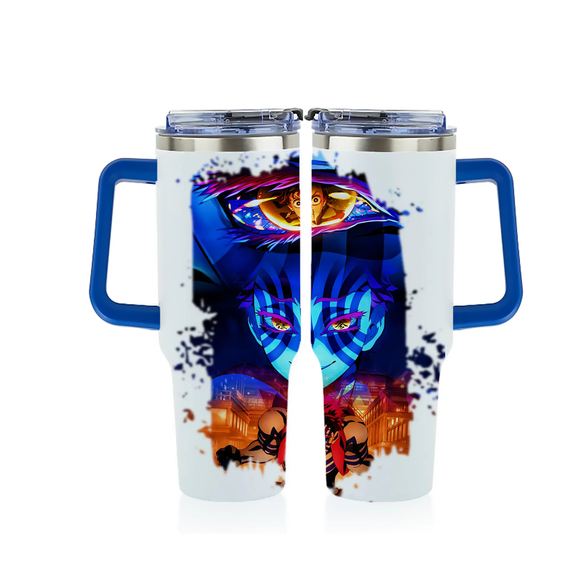 鬼滅の刃 グッズ,猗窩座 - 1200mL フルプリント車用タンブラー ・ 304ステンレス 内側 ・ 201ステンレス 外側 ・ 保温 保冷 ・ 通勤 ドライブ アウトドア用