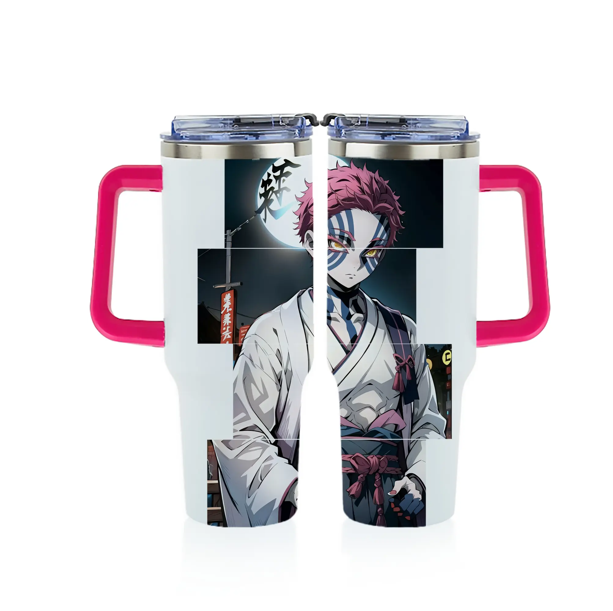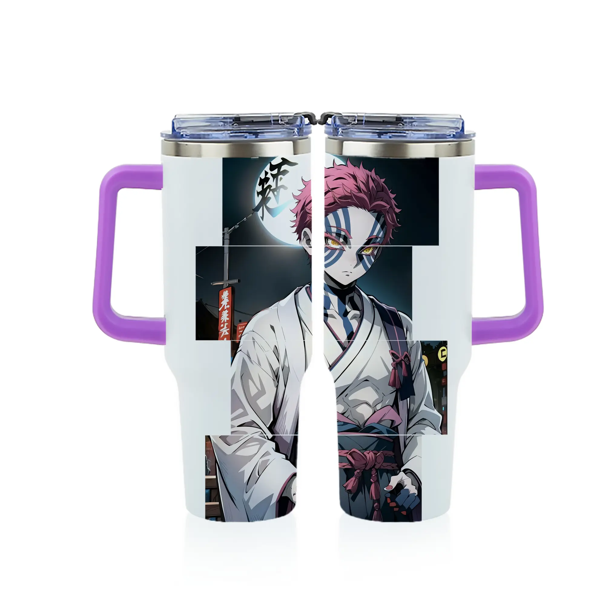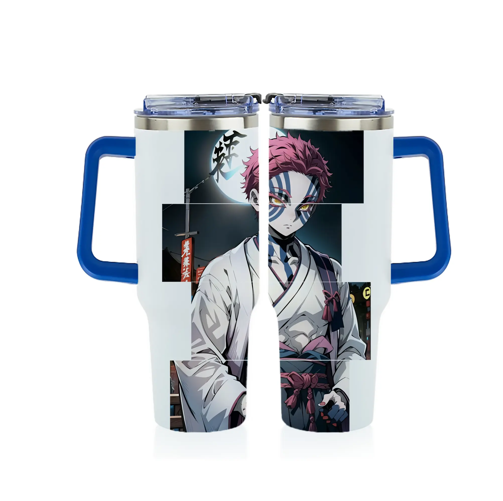 鬼滅の刃 グッズ,猗窩座 - 1200mL フルプリント車用タンブラー ・ 304ステンレス 内側 ・ 201ステンレス 外側 ・ 保温 保冷 ・ 通勤 ドライブ アウトドア用