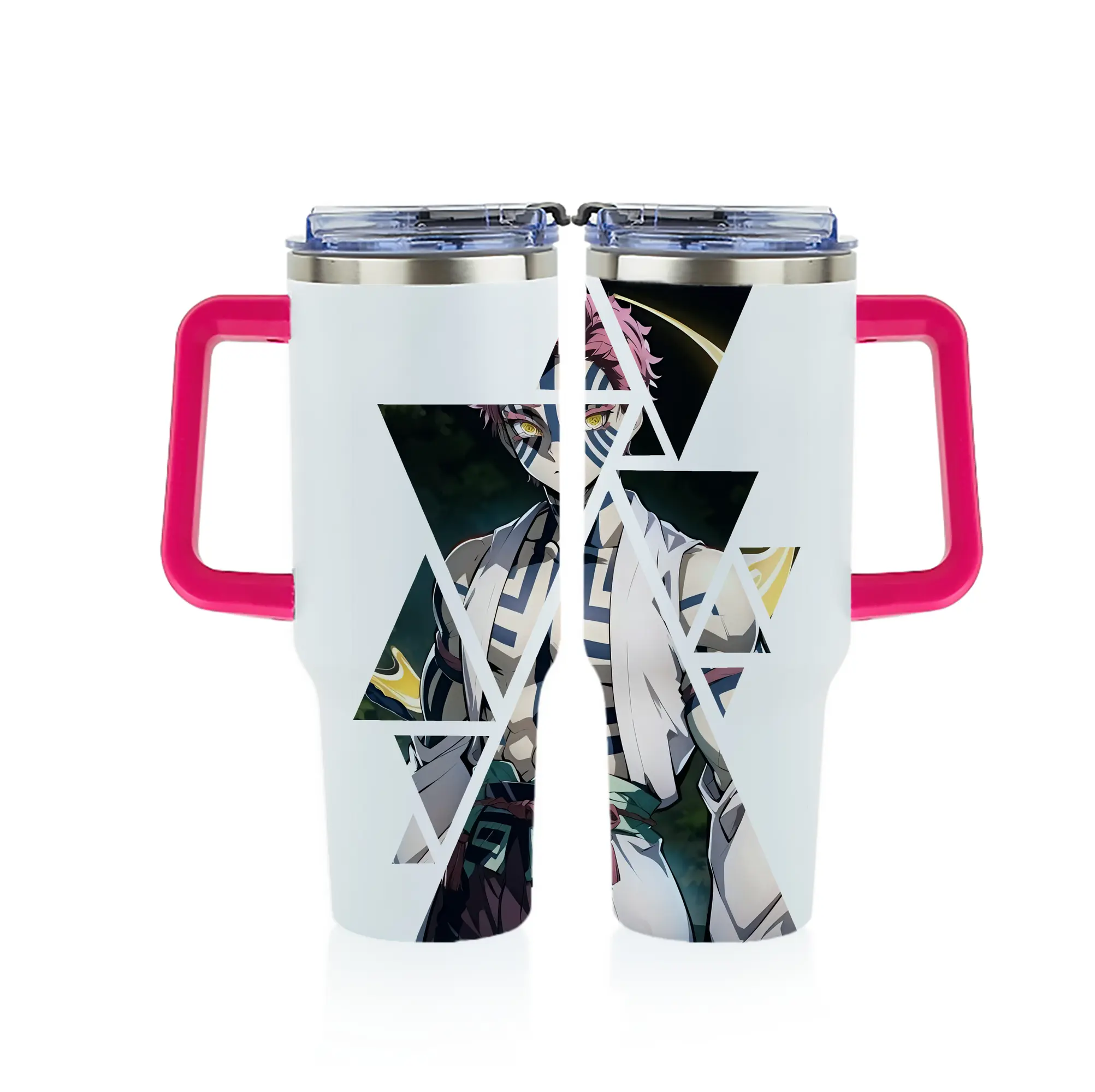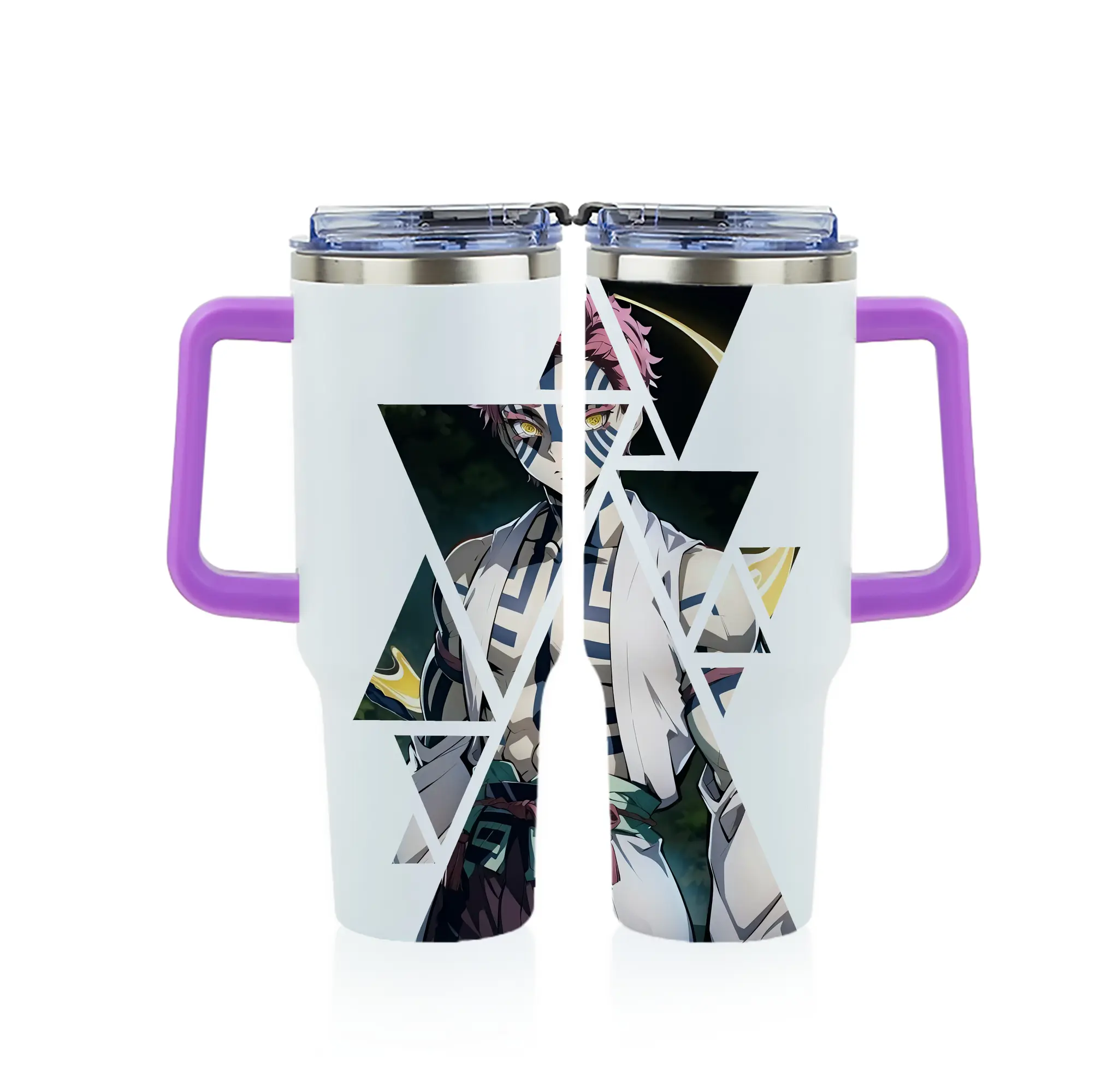 鬼滅の刃 グッズ,猗窩座 - 1200mL フルプリント車用タンブラー ・ 304ステンレス 内側 ・ 201ステンレス 外側 ・ 保温 保冷 ・ 通勤 ドライブ アウトドア用