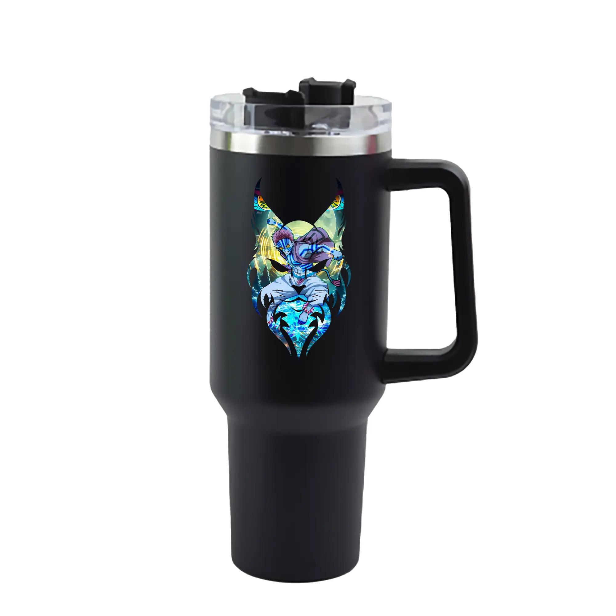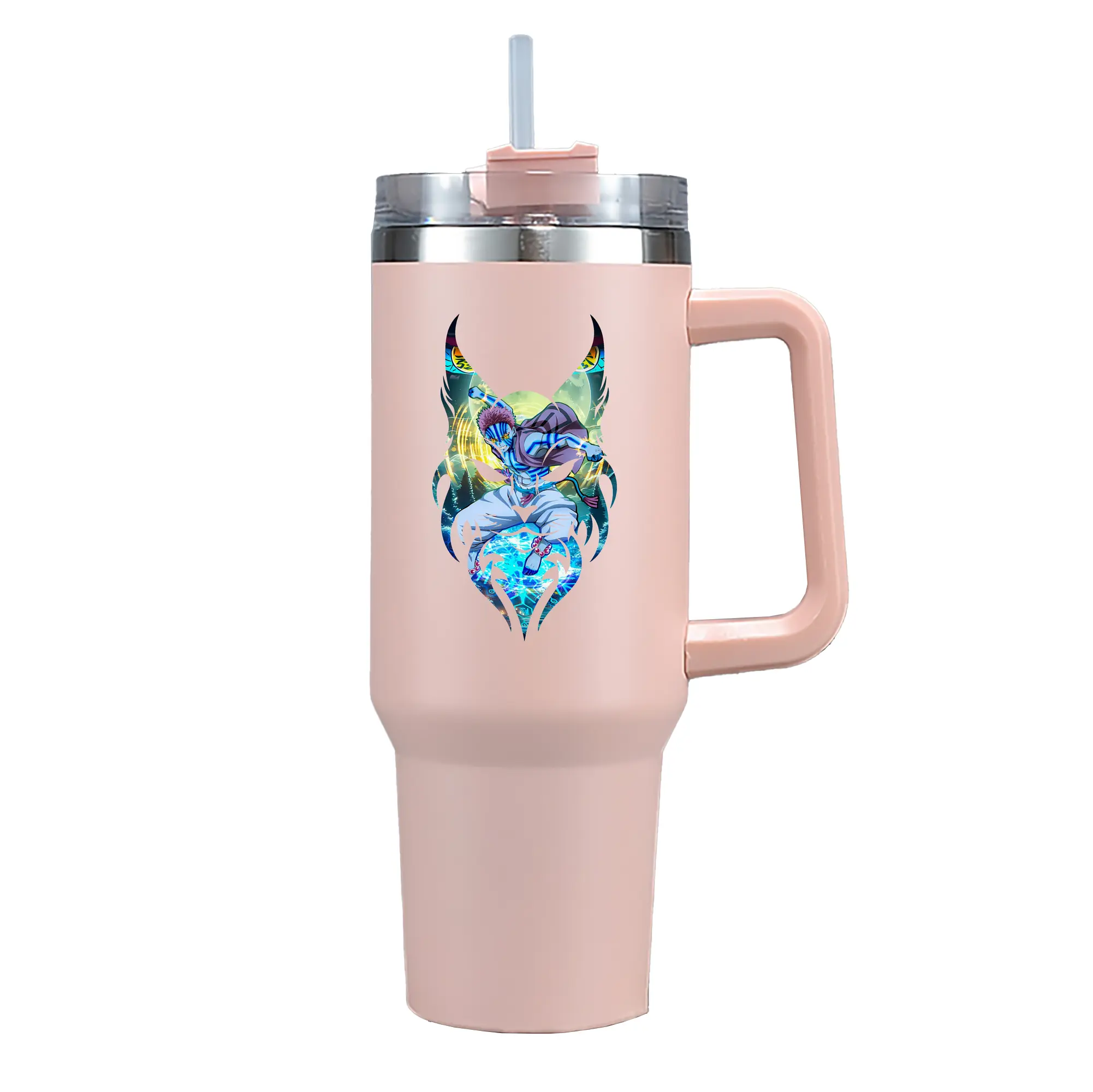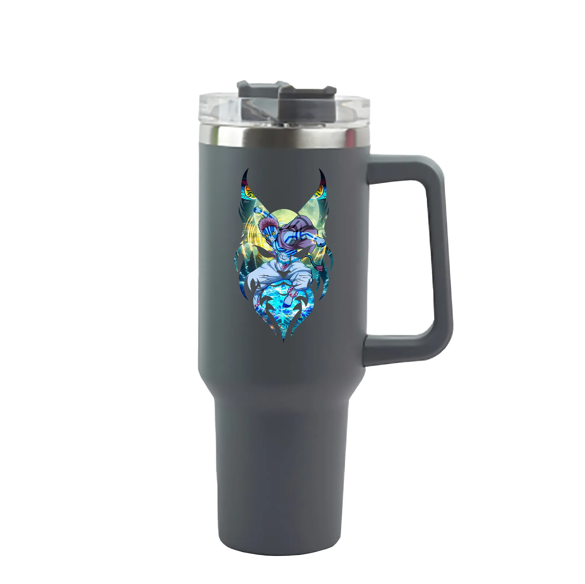鬼滅の刃 グッズ,猗窩座 - 1200mL 車用タンブラー ・ クリスタルステッカー ・ 304ステンレス 内側 ・ 201ステンレス 外側 ・ 保温 保冷 ・ ハンドル&ストロー付き ・ 通勤 ドライブ アウトドア用