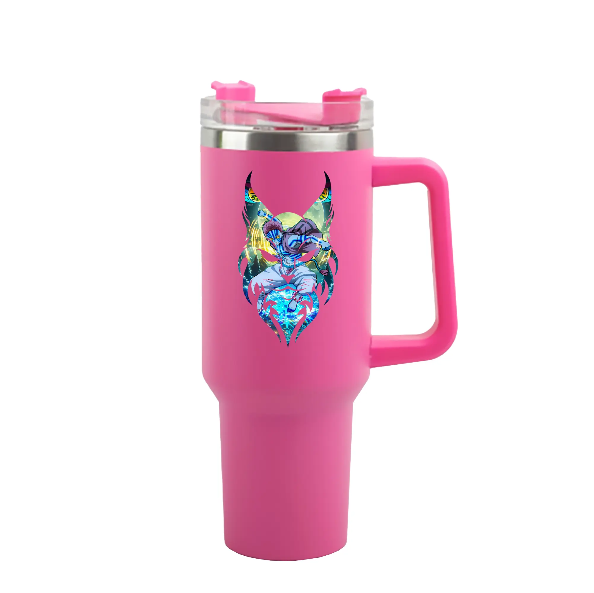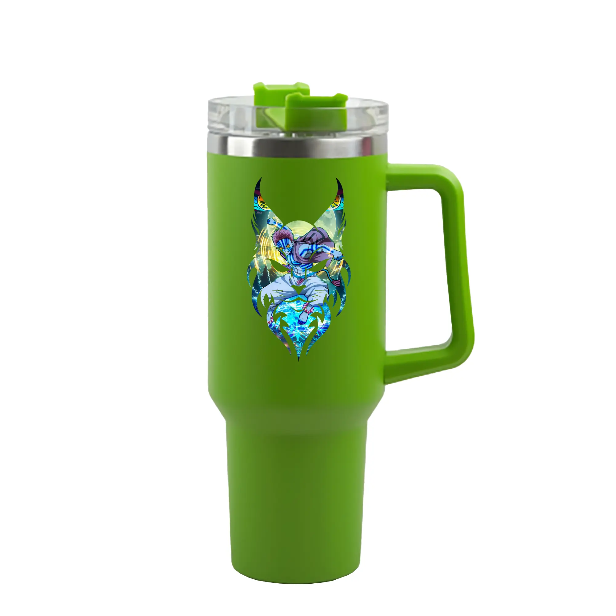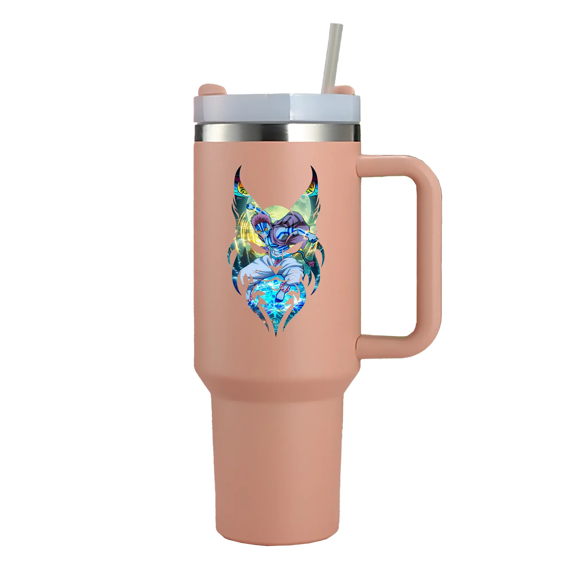 鬼滅の刃 グッズ,猗窩座 - 1200mL 車用タンブラー ・ クリスタルステッカー ・ 304ステンレス 内側 ・ 201ステンレス 外側 ・ 保温 保冷 ・ ハンドル&ストロー付き ・ 通勤 ドライブ アウトドア用