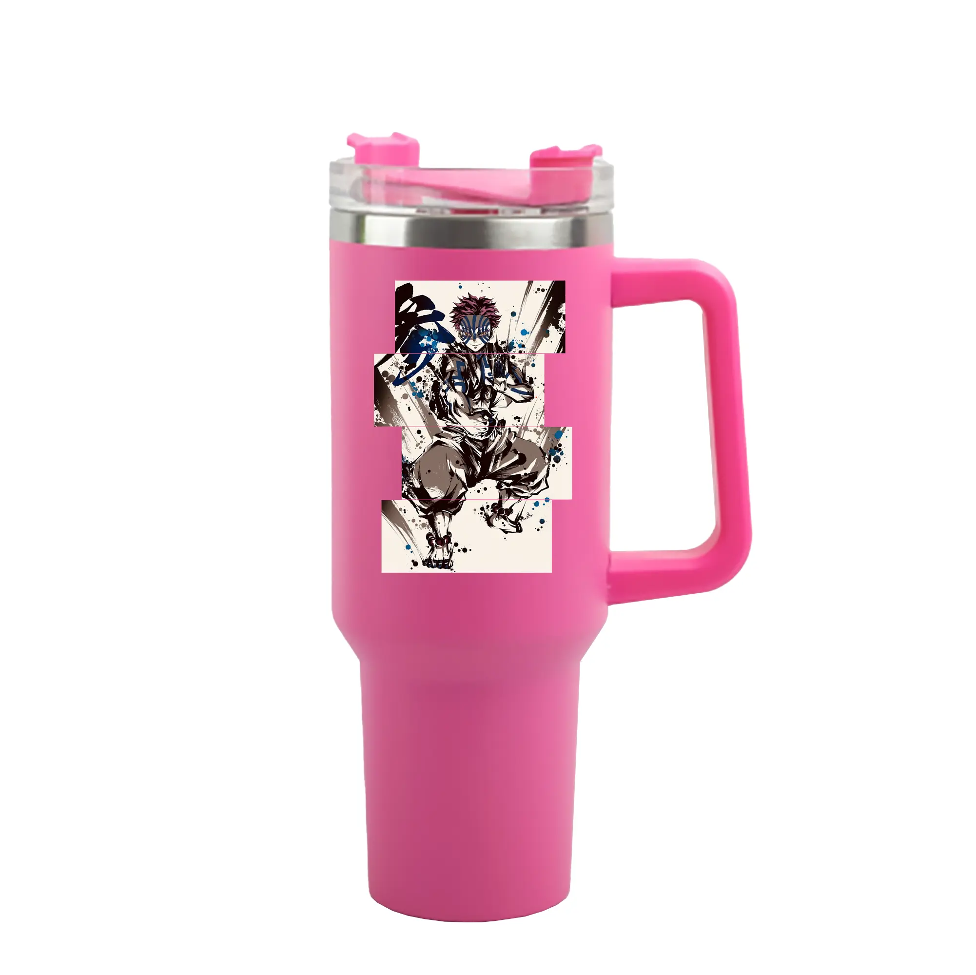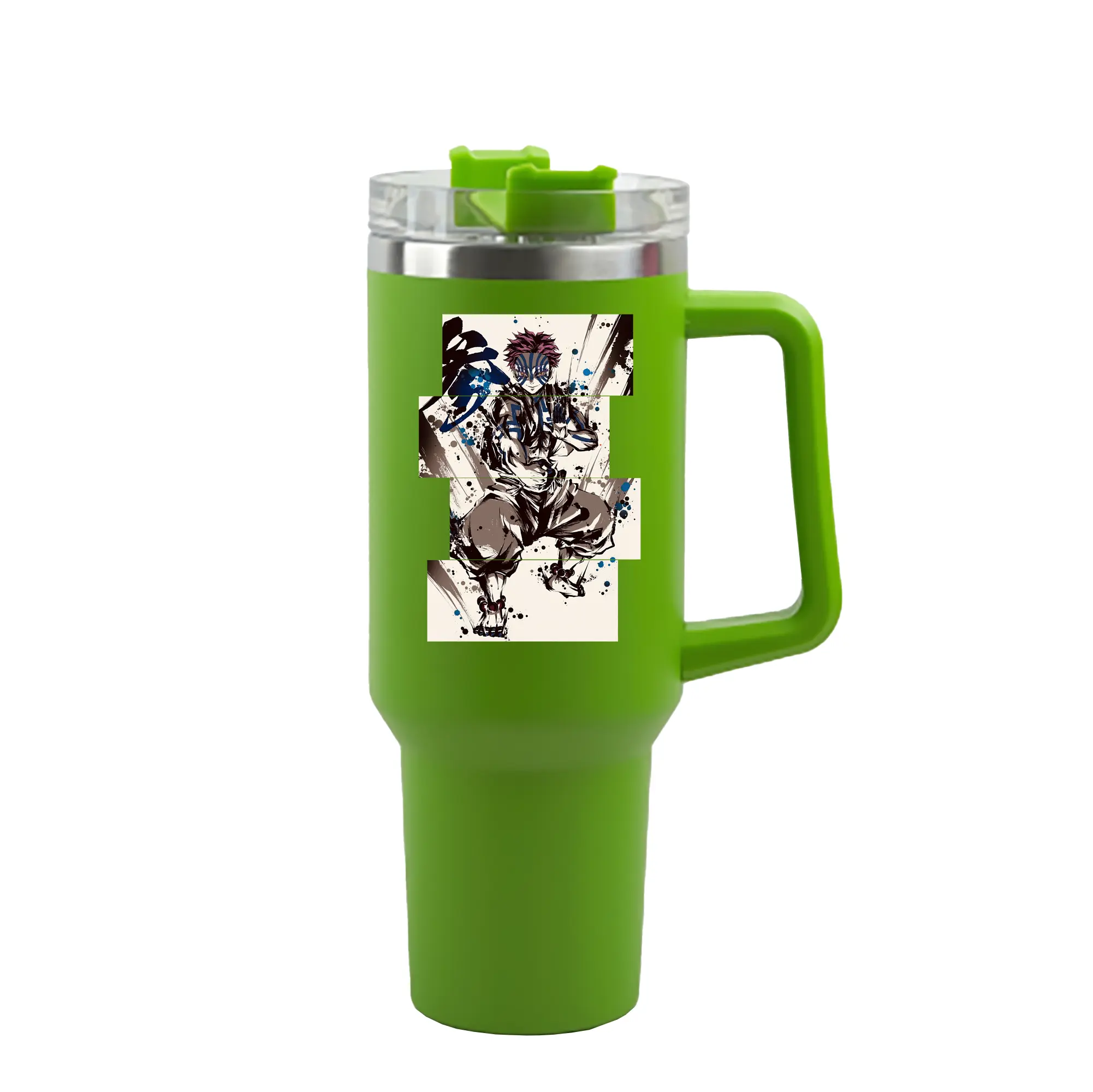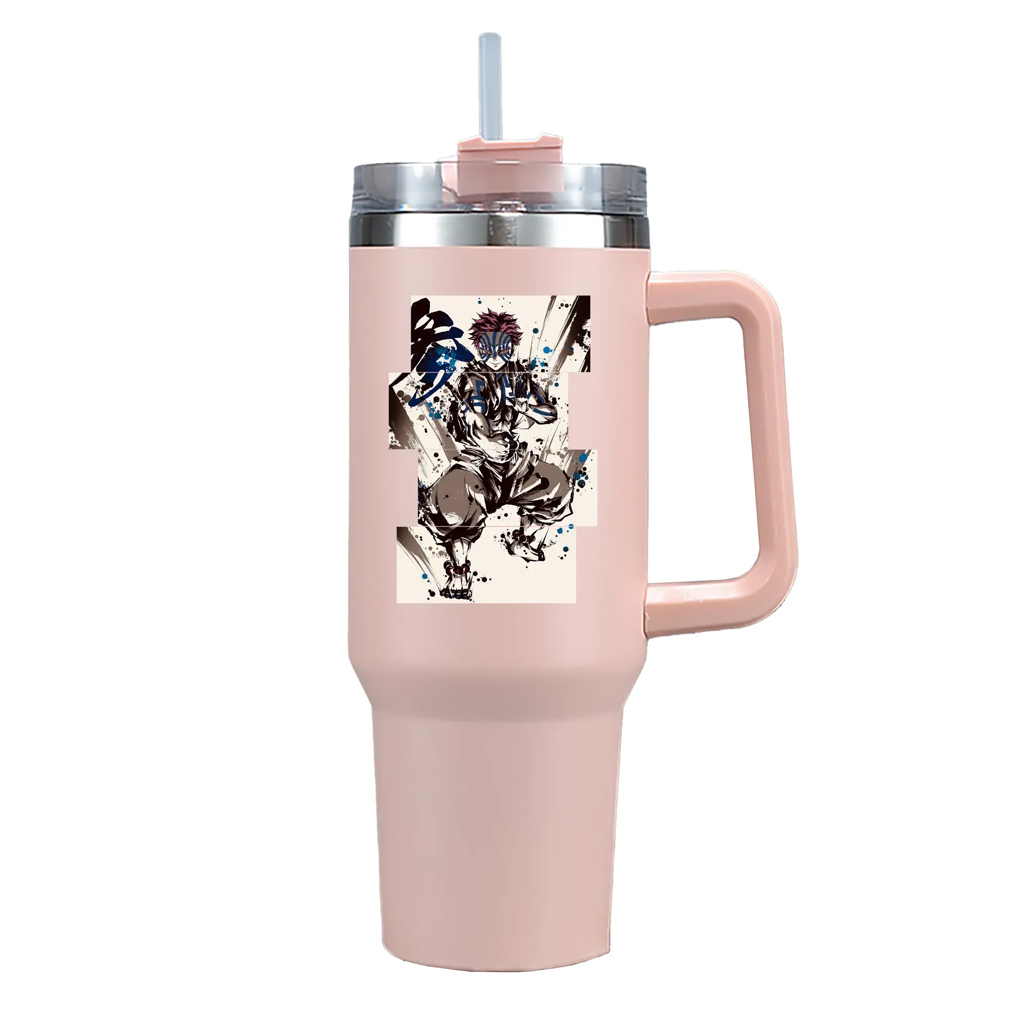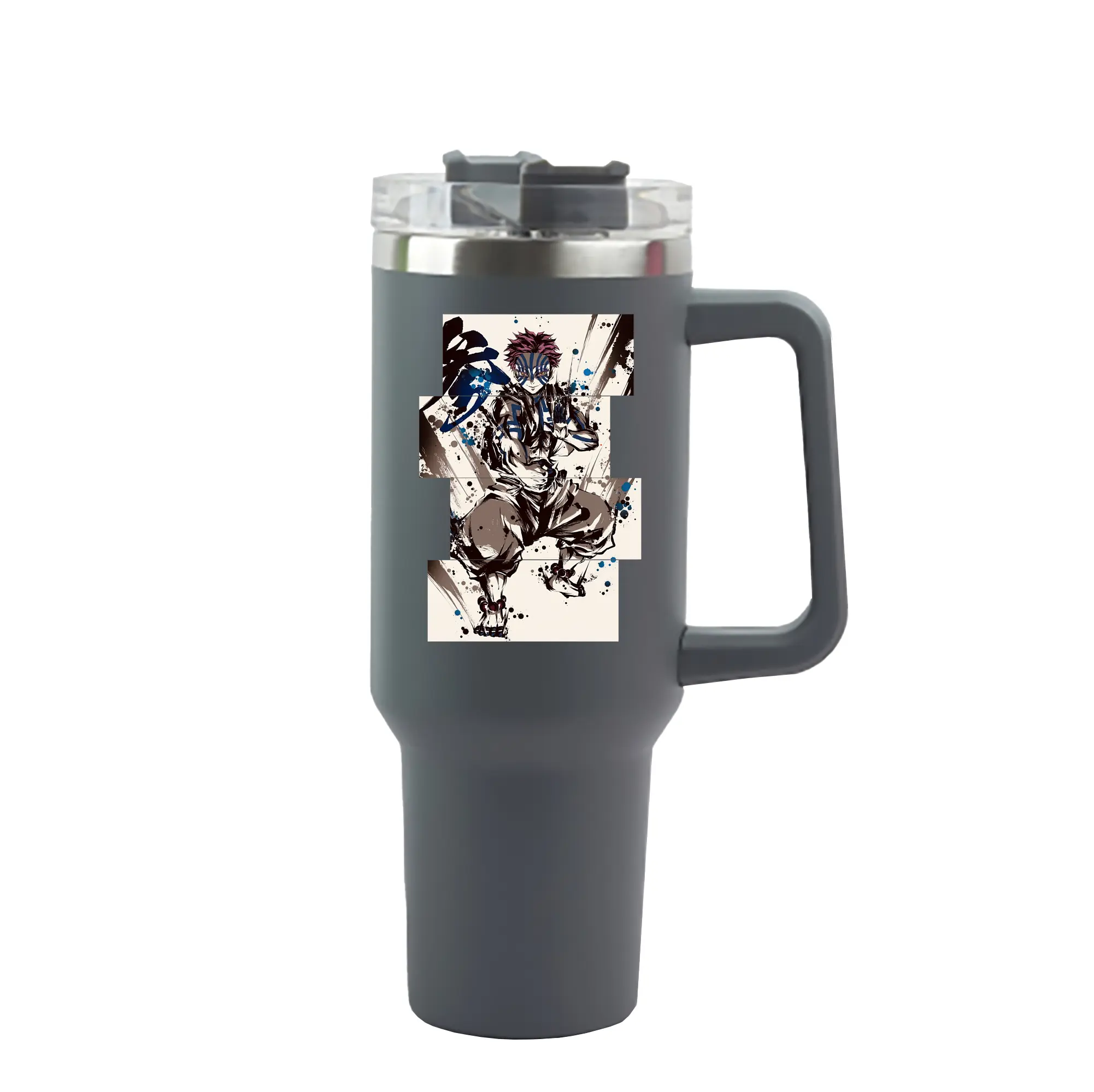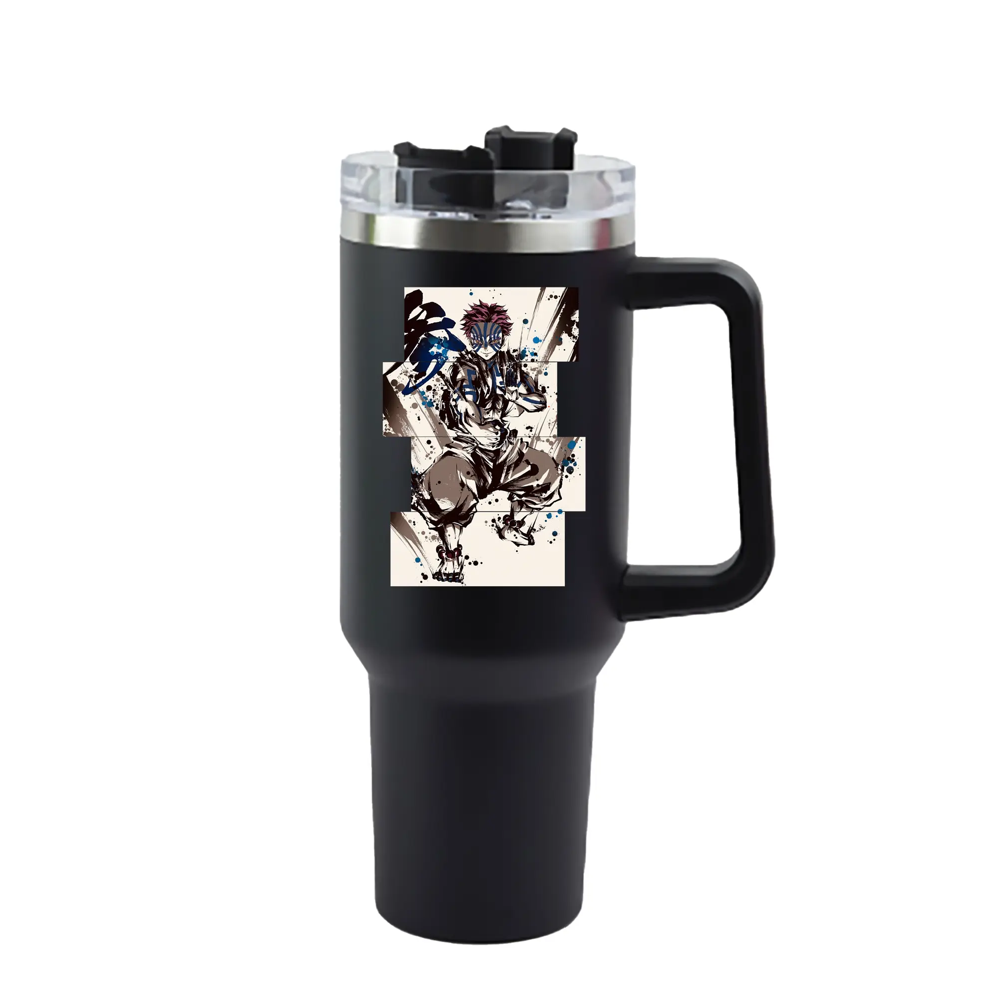 鬼滅の刃 グッズ,猗窩座 - 1200mL 車用タンブラー ・ クリスタルステッカー ・ 304ステンレス 内側 ・ 201ステンレス 外側 ・ 保温 保冷 ・ ハンドル&ストロー付き ・ 通勤 ドライブ アウトドア用