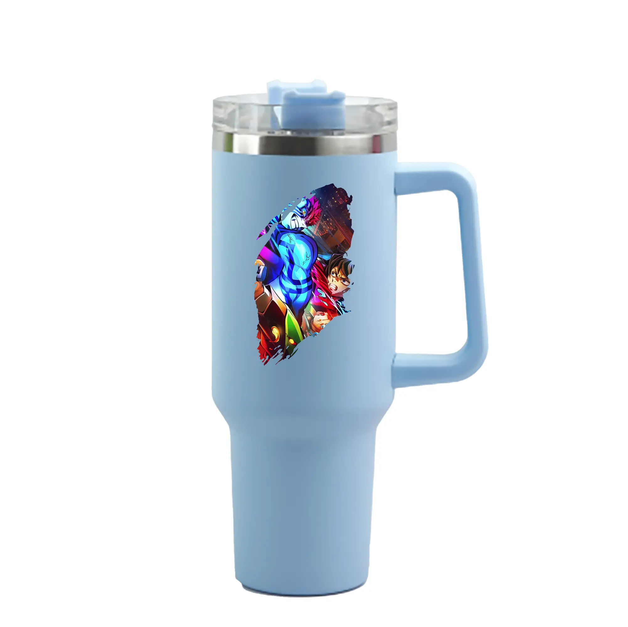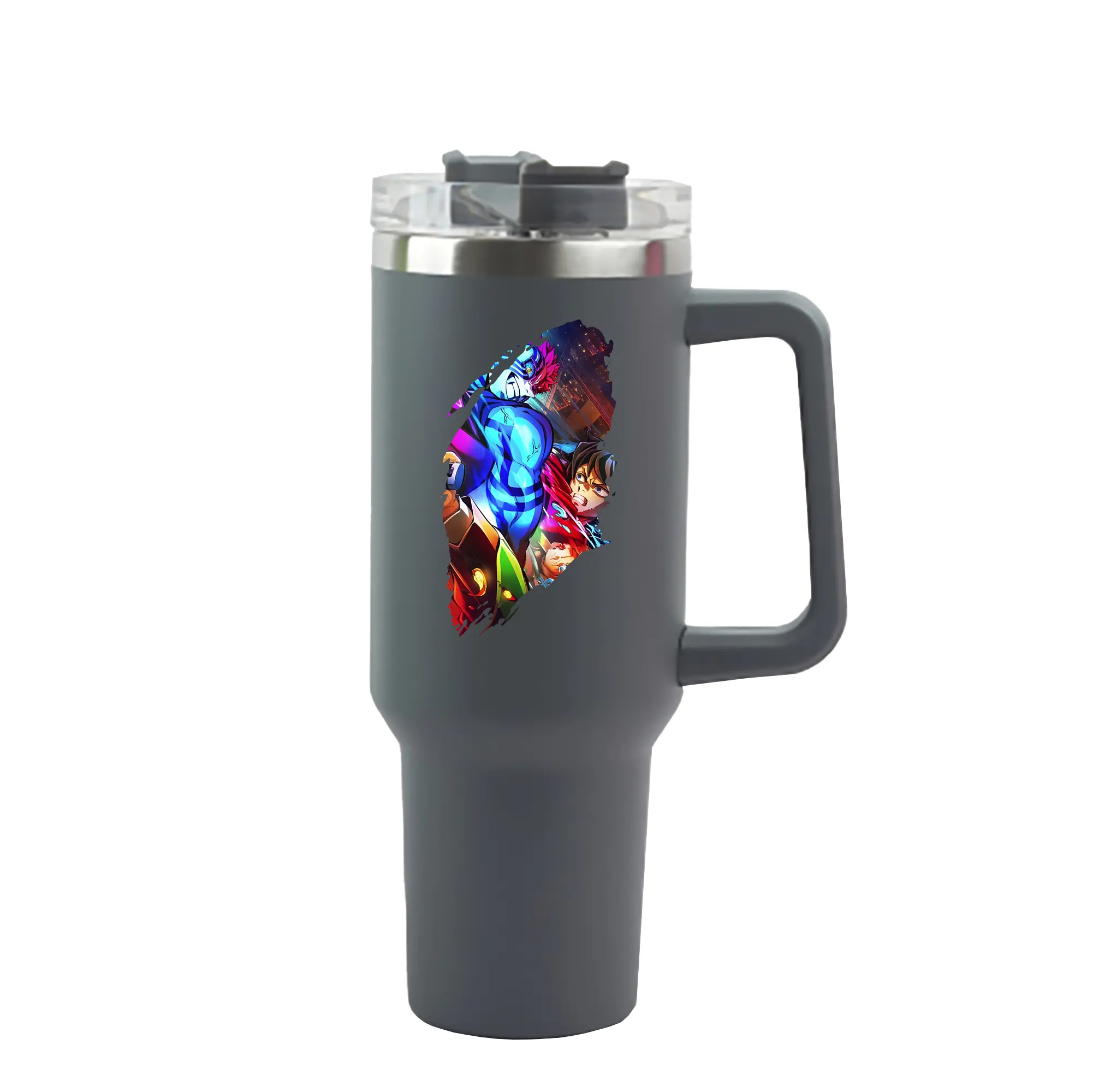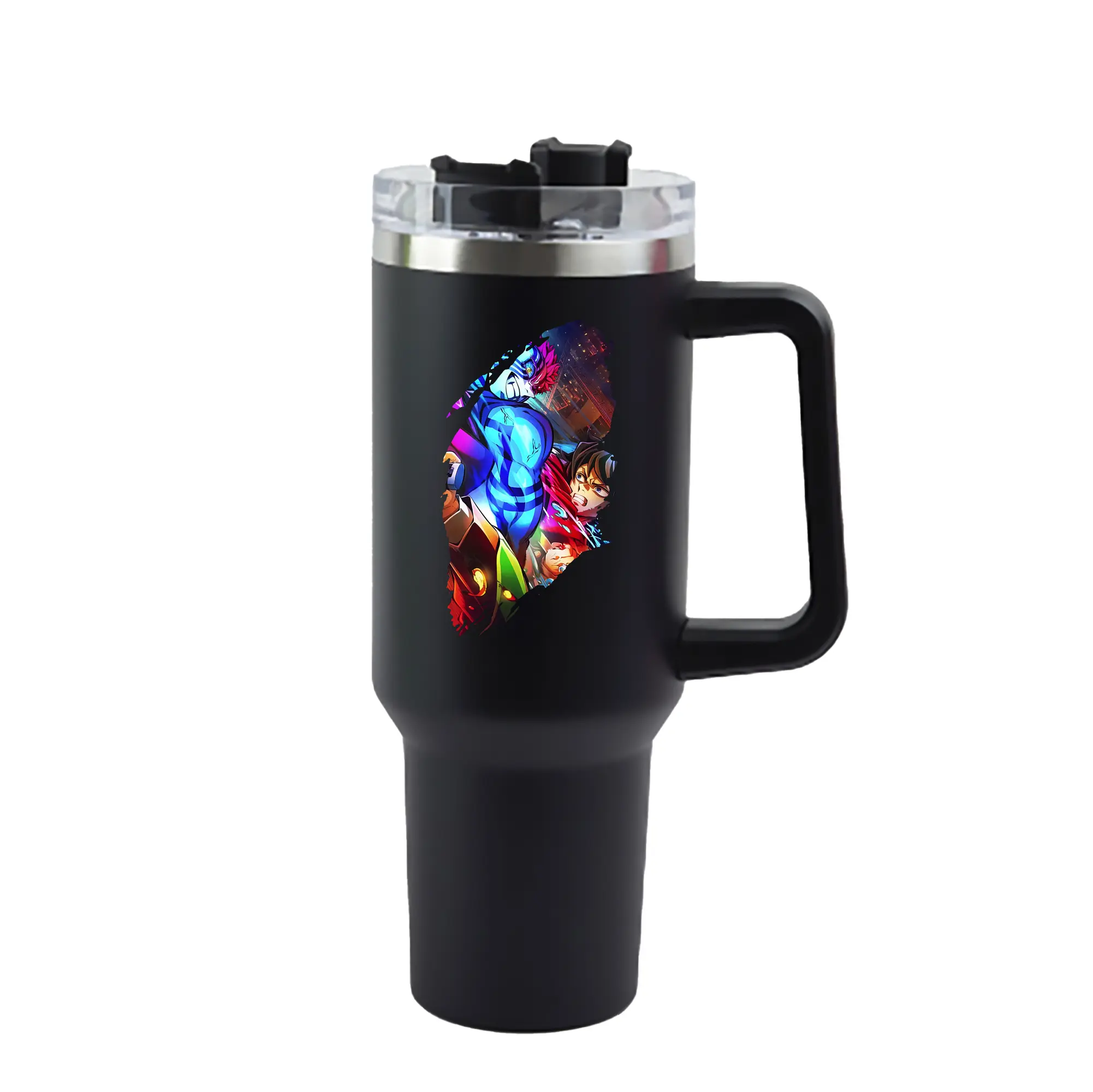 鬼滅の刃 グッズ,猗窩座 - 1200mL 車用タンブラー ・ クリスタルステッカー ・ 304ステンレス 内側 ・ 201ステンレス 外側 ・ 保温 保冷 ・ ハンドル&ストロー付き ・ 通勤 ドライブ アウトドア用