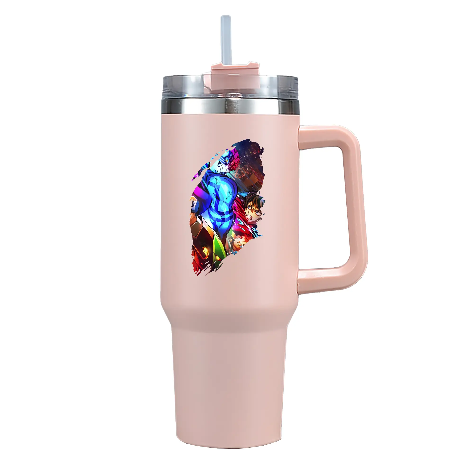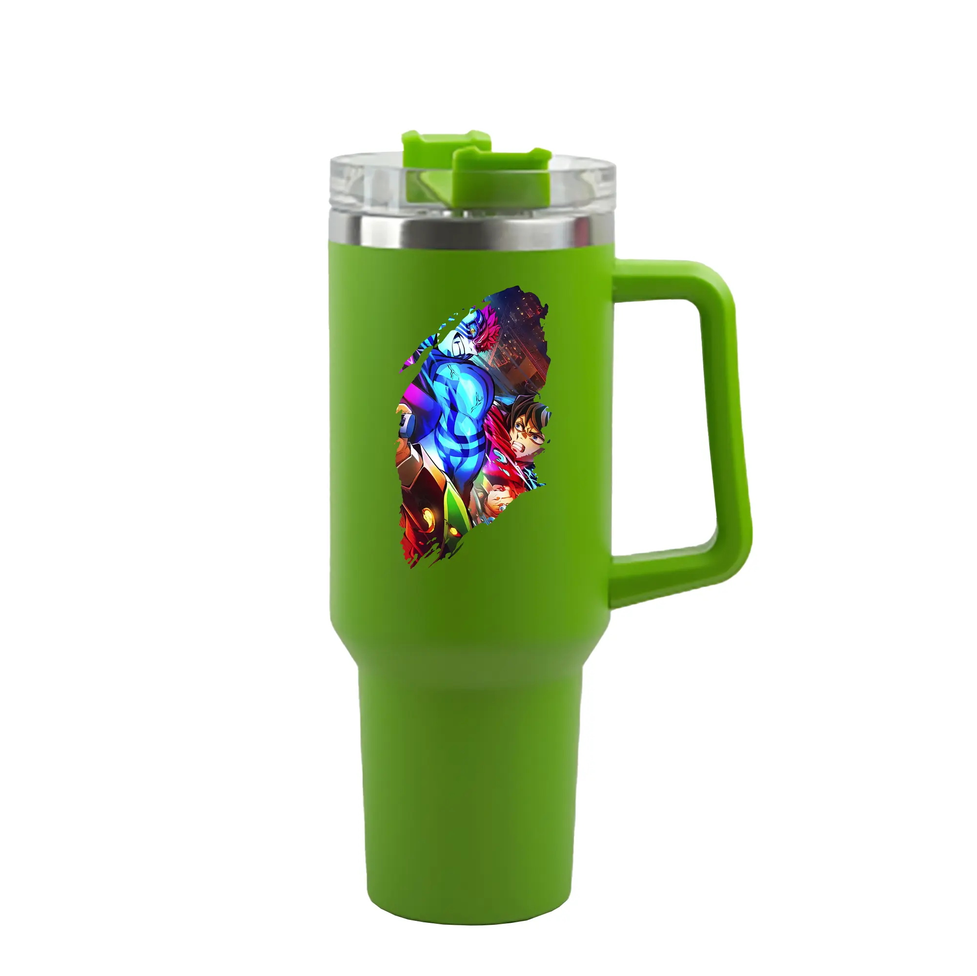 1200mL(40オンス)の大容量ハンドル付きカータンブラー。キラキラと輝くクリスタルステッカーデザインが、毎日の使用に華やかさをプラスします。食品グレード304ステンレスの内側と頑丈な201ステンレスの外側を採用し、耐久性・耐腐食性・安全性を兼ね備えています。