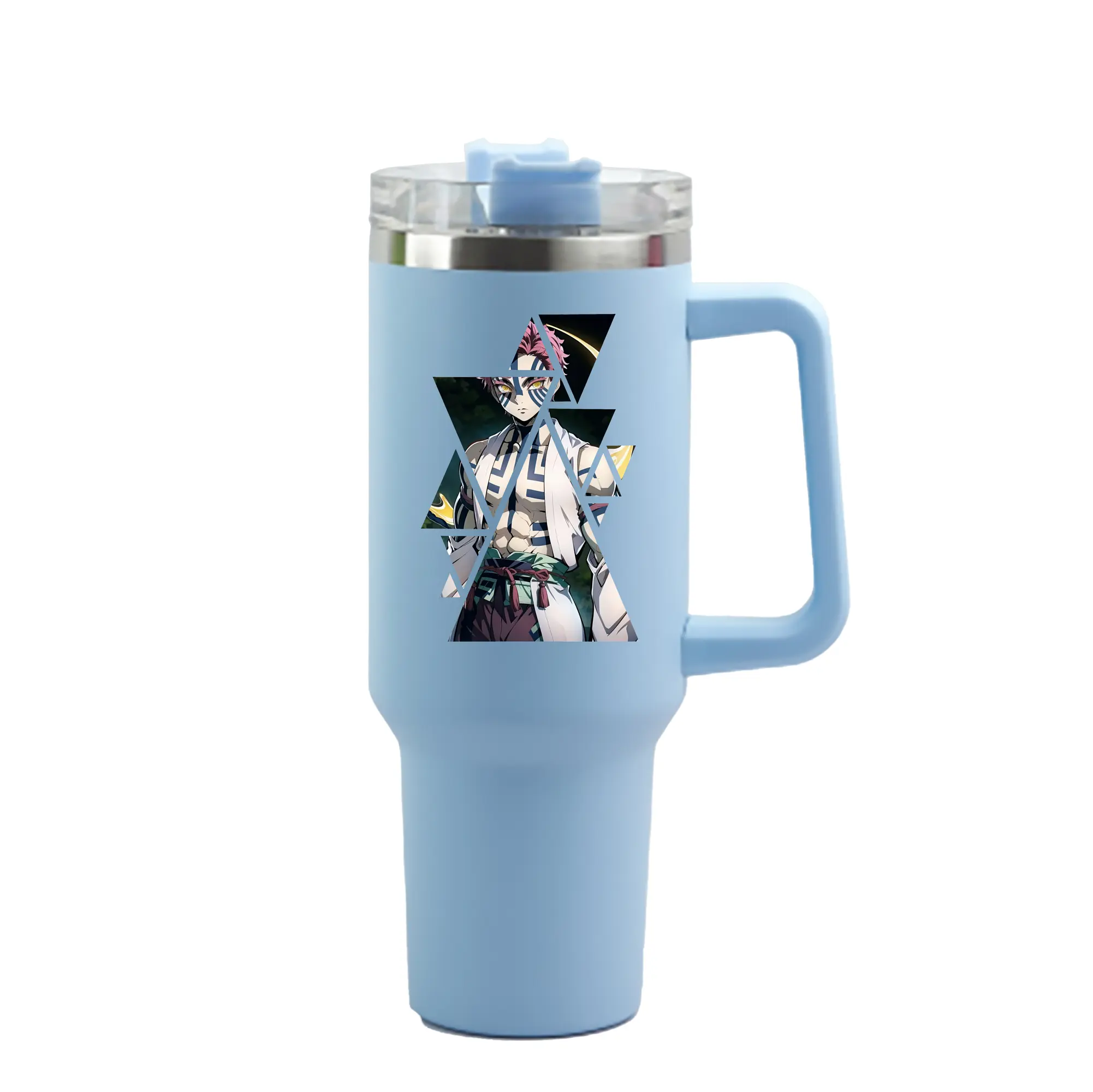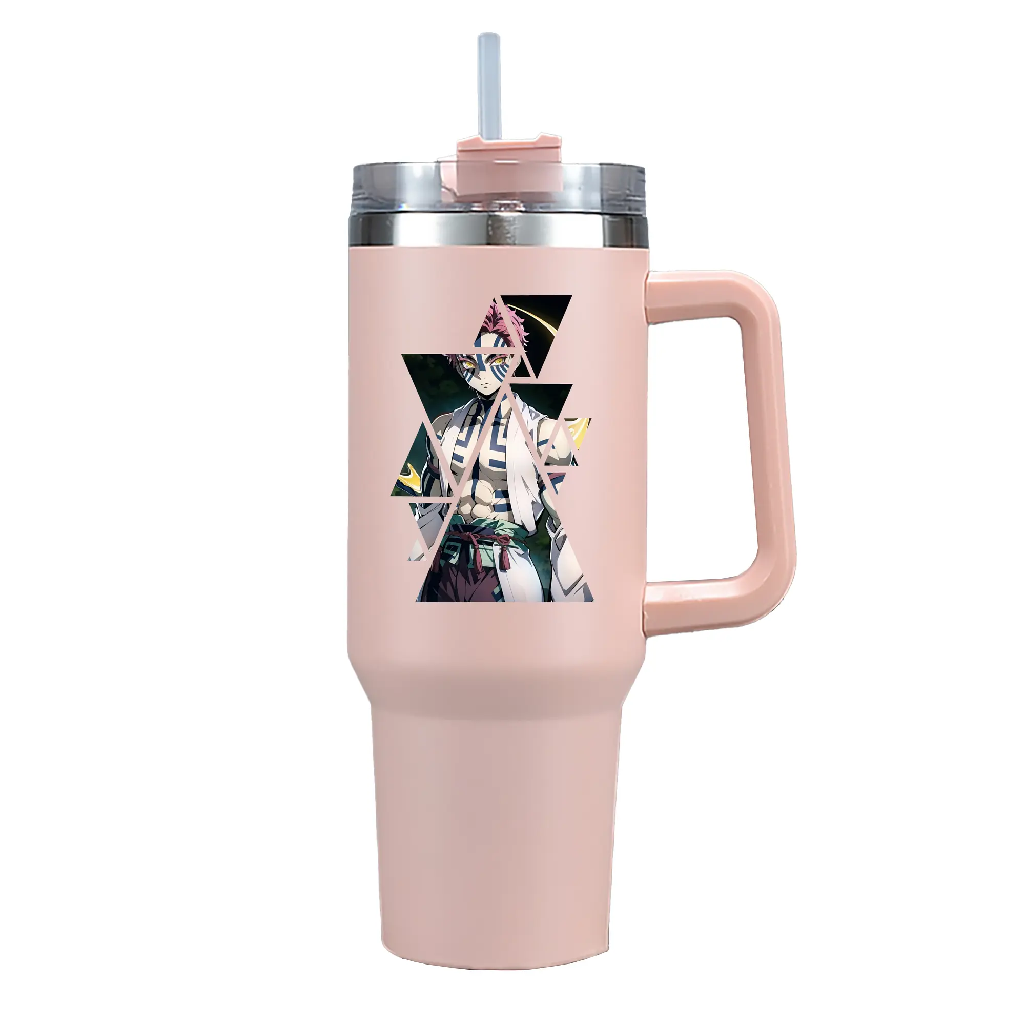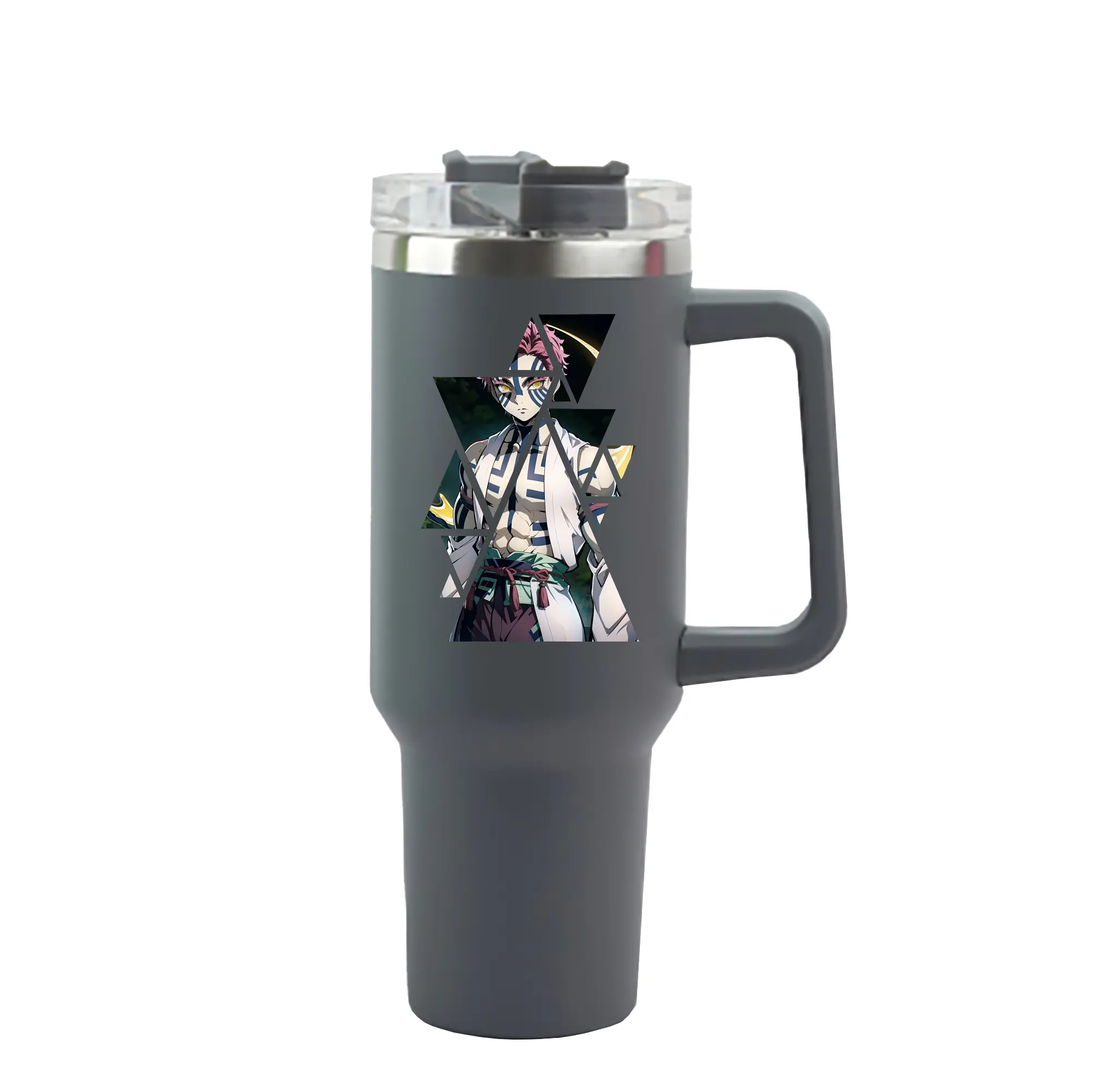 鬼滅の刃 グッズ,猗窩座 - 1200mL 車用タンブラー ・ クリスタルステッカー ・ 304ステンレス 内側 ・ 201ステンレス 外側 ・ 保温 保冷 ・ ハンドル&ストロー付き ・ 通勤 ドライブ アウトドア用