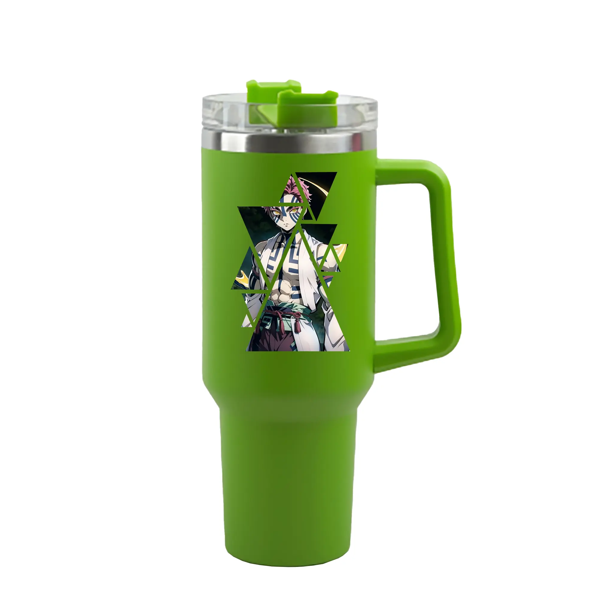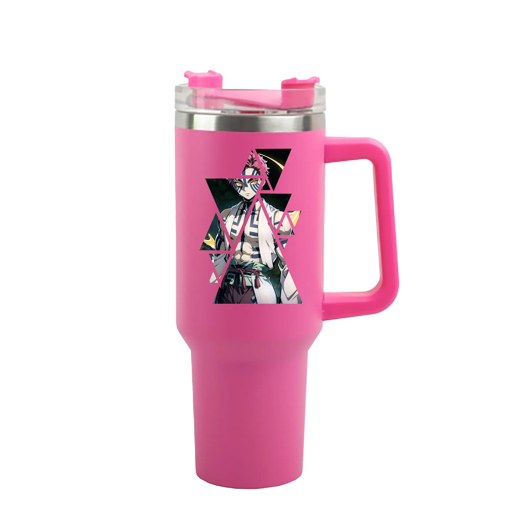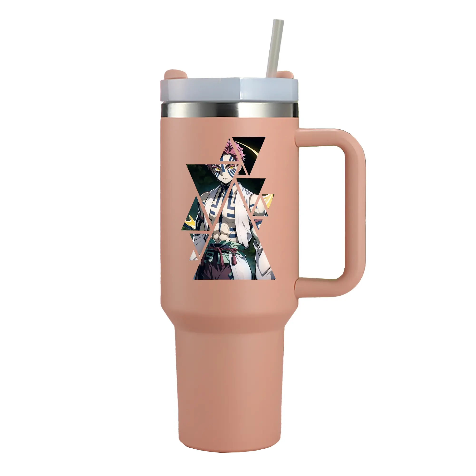 鬼滅の刃 グッズ,猗窩座 - 1200mL 車用タンブラー ・ クリスタルステッカー ・ 304ステンレス 内側 ・ 201ステンレス 外側 ・ 保温 保冷 ・ ハンドル&ストロー付き ・ 通勤 ドライブ アウトドア用