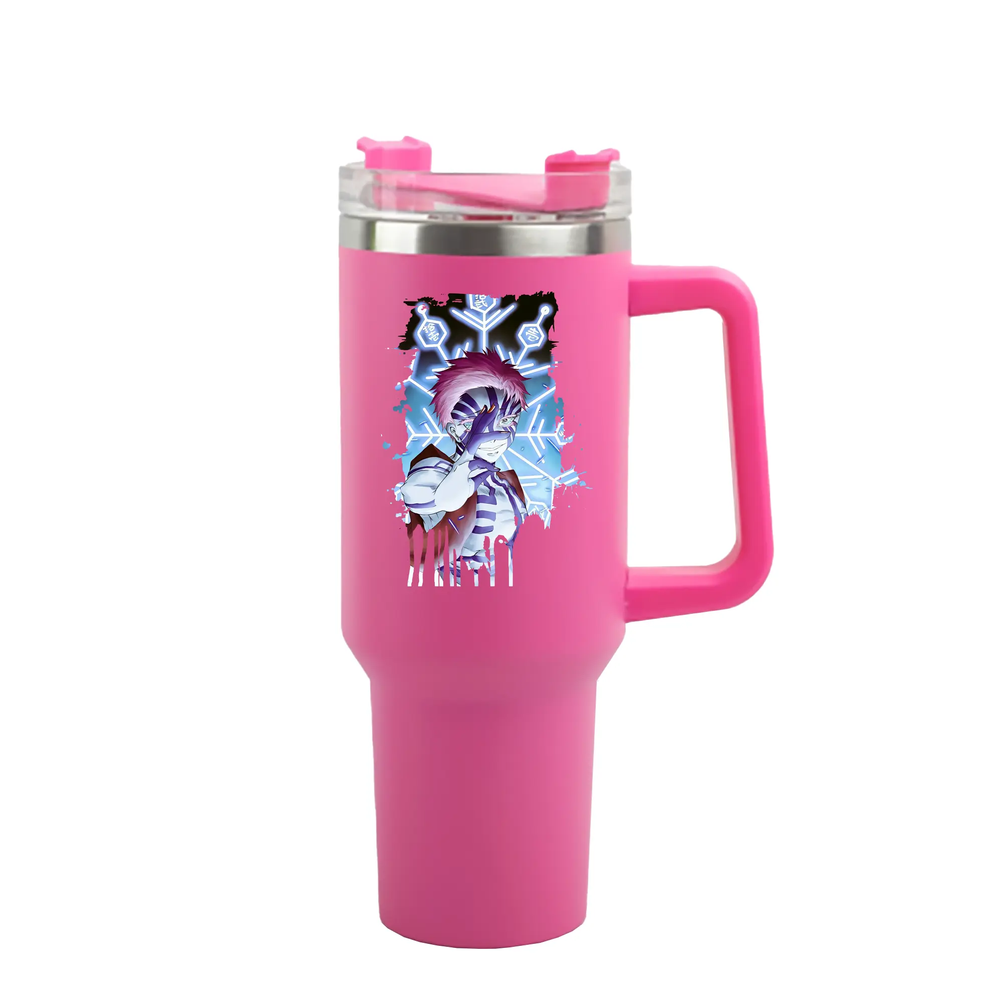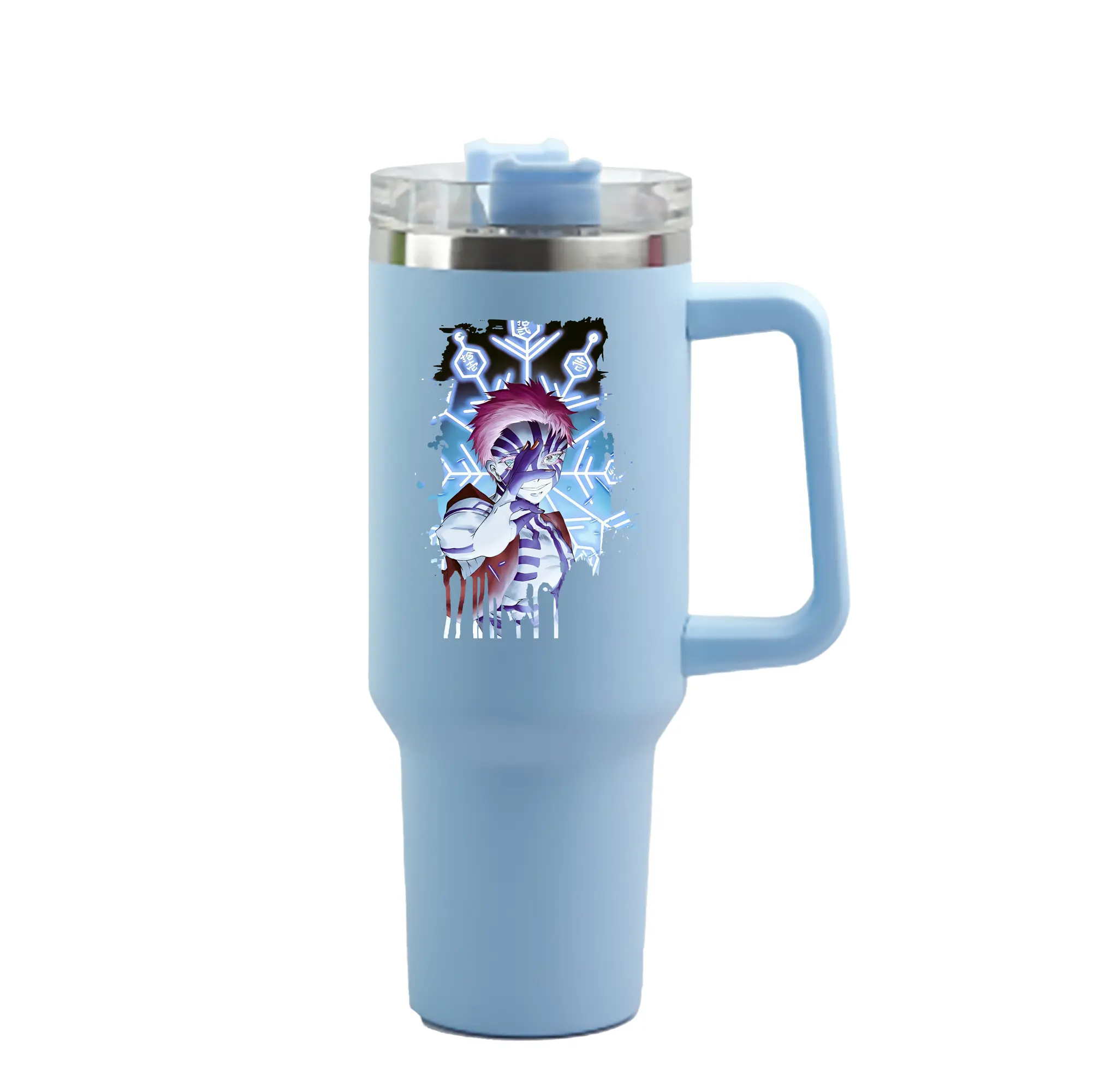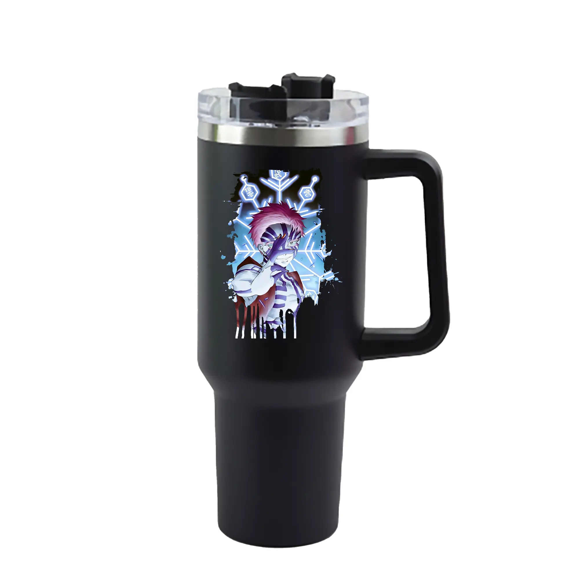 鬼滅の刃 グッズ,猗窩座 - 1200mL 車用タンブラー ・ クリスタルステッカー ・ 304ステンレス 内側 ・ 201ステンレス 外側 ・ 保温 保冷 ・ ハンドル&ストロー付き ・ 通勤 ドライブ アウトドア用