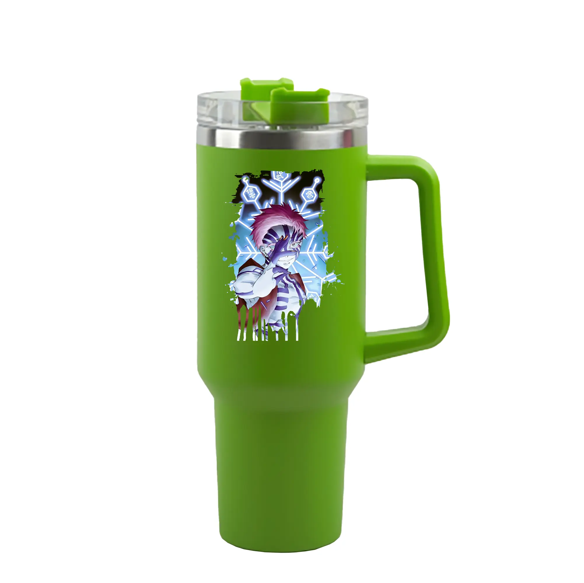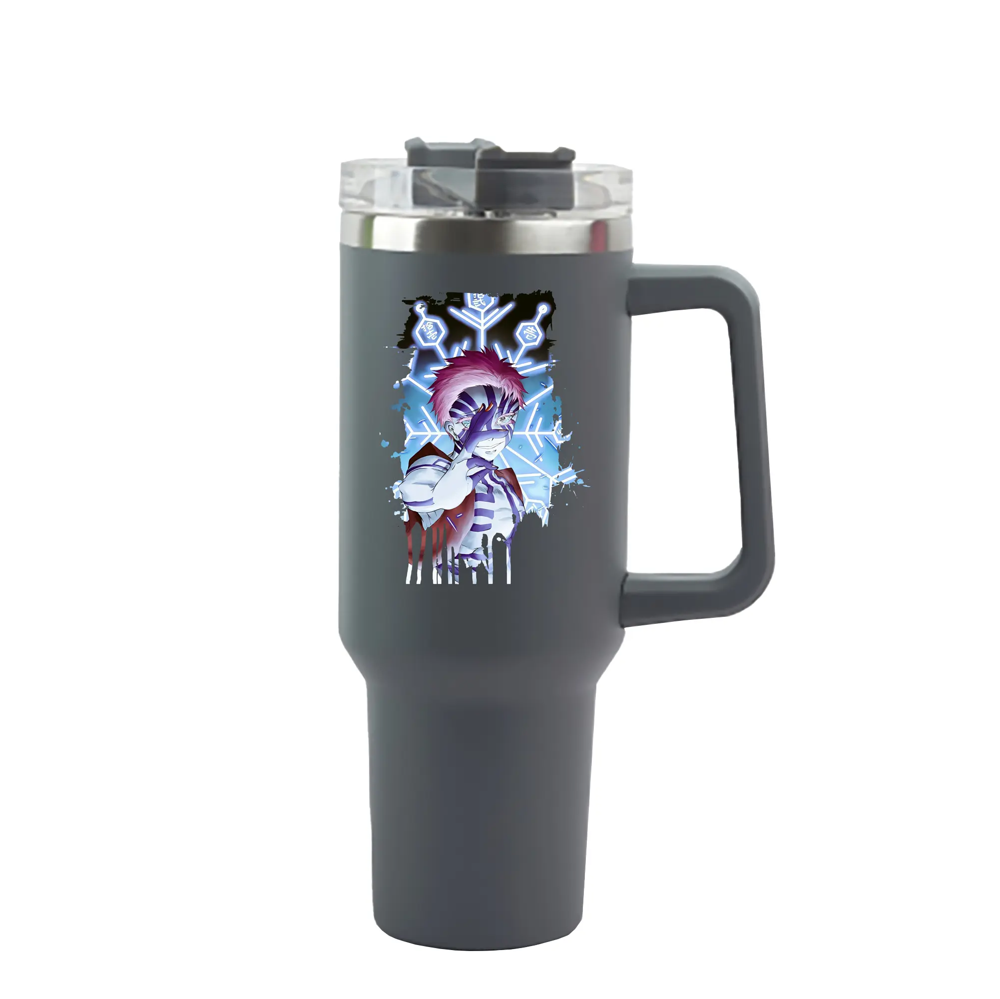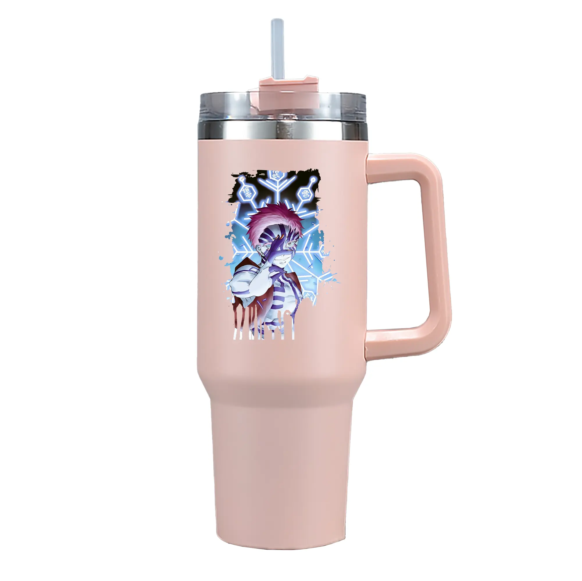 鬼滅の刃 グッズ,猗窩座 - 1200mL 車用タンブラー ・ クリスタルステッカー ・ 304ステンレス 内側 ・ 201ステンレス 外側 ・ 保温 保冷 ・ ハンドル&ストロー付き ・ 通勤 ドライブ アウトドア用