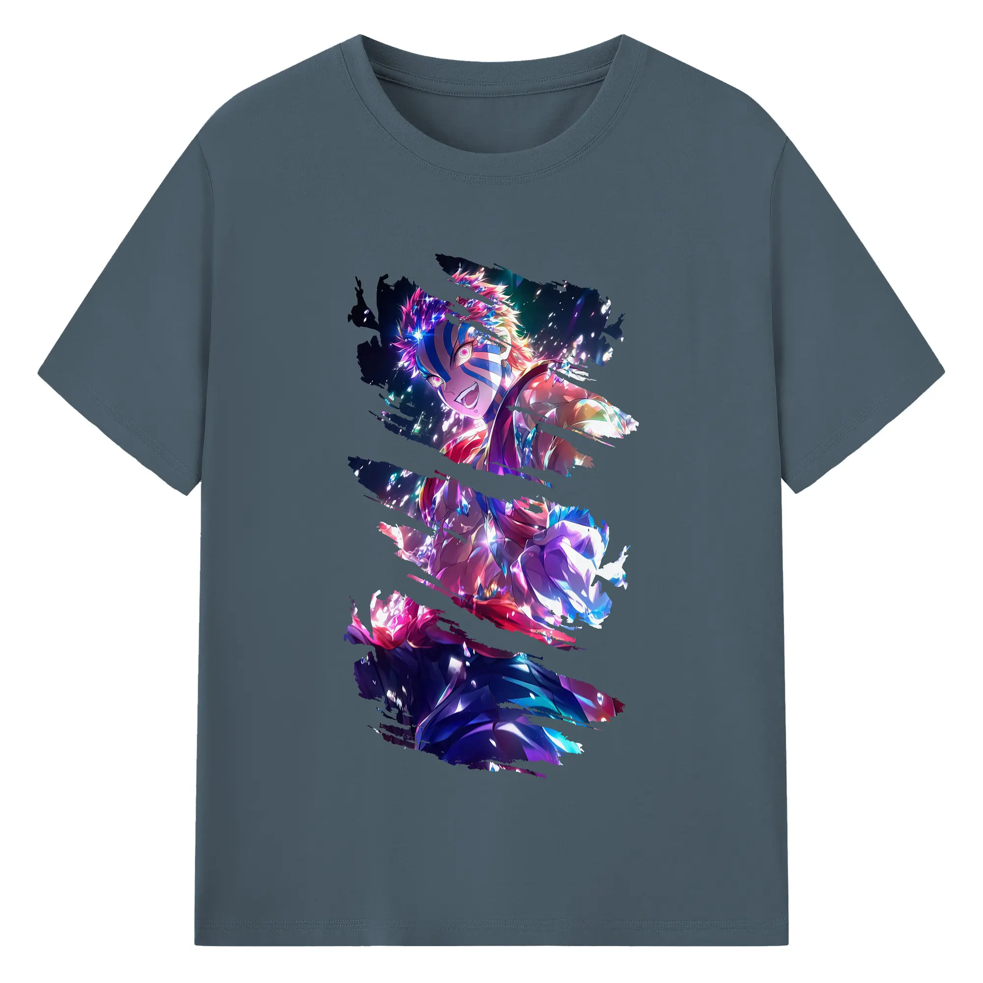 鬼滅の刃 グッズ,猗窩座 - 綿100% 半袖Tシャツ ・ バックプリント ・ 快適 通気性 ・ 日常使い 散歩 スポーツ用