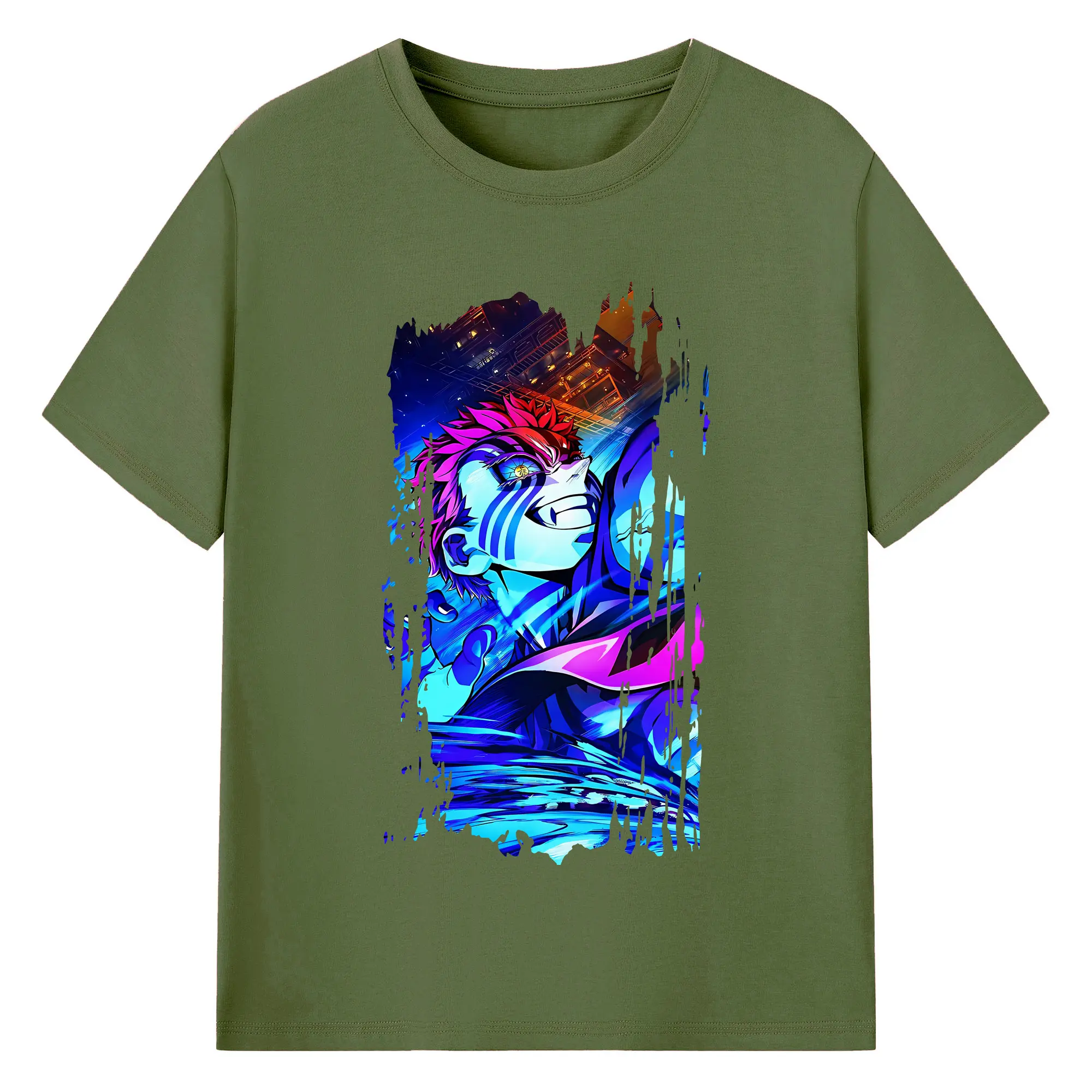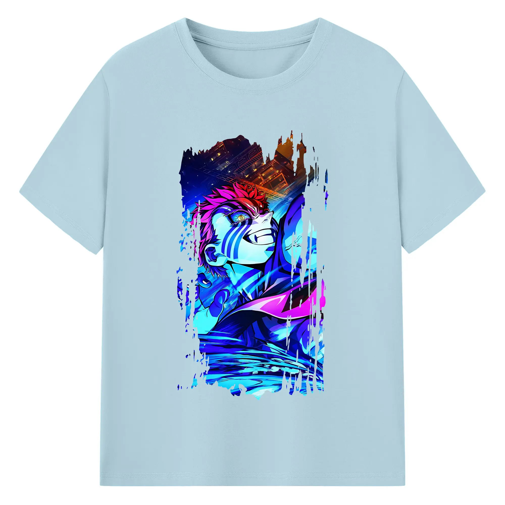 鬼滅の刃 グッズ,猗窩座 - 綿100% 半袖Tシャツ ・ バックプリント ・ 快適 通気性 ・ 日常使い 散歩 スポーツ用