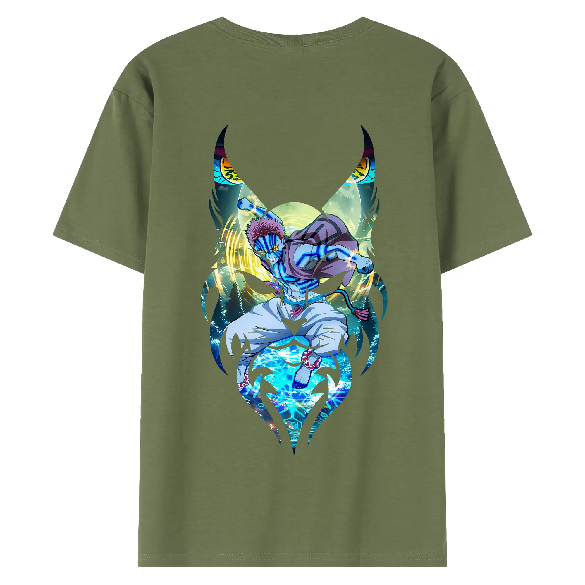 鬼滅の刃 グッズ,猗窩座 - 綿100% 半袖Tシャツ ・ フロントプリント ・ 快適 通気性 ・ 日常使い 散歩 スポーツ用