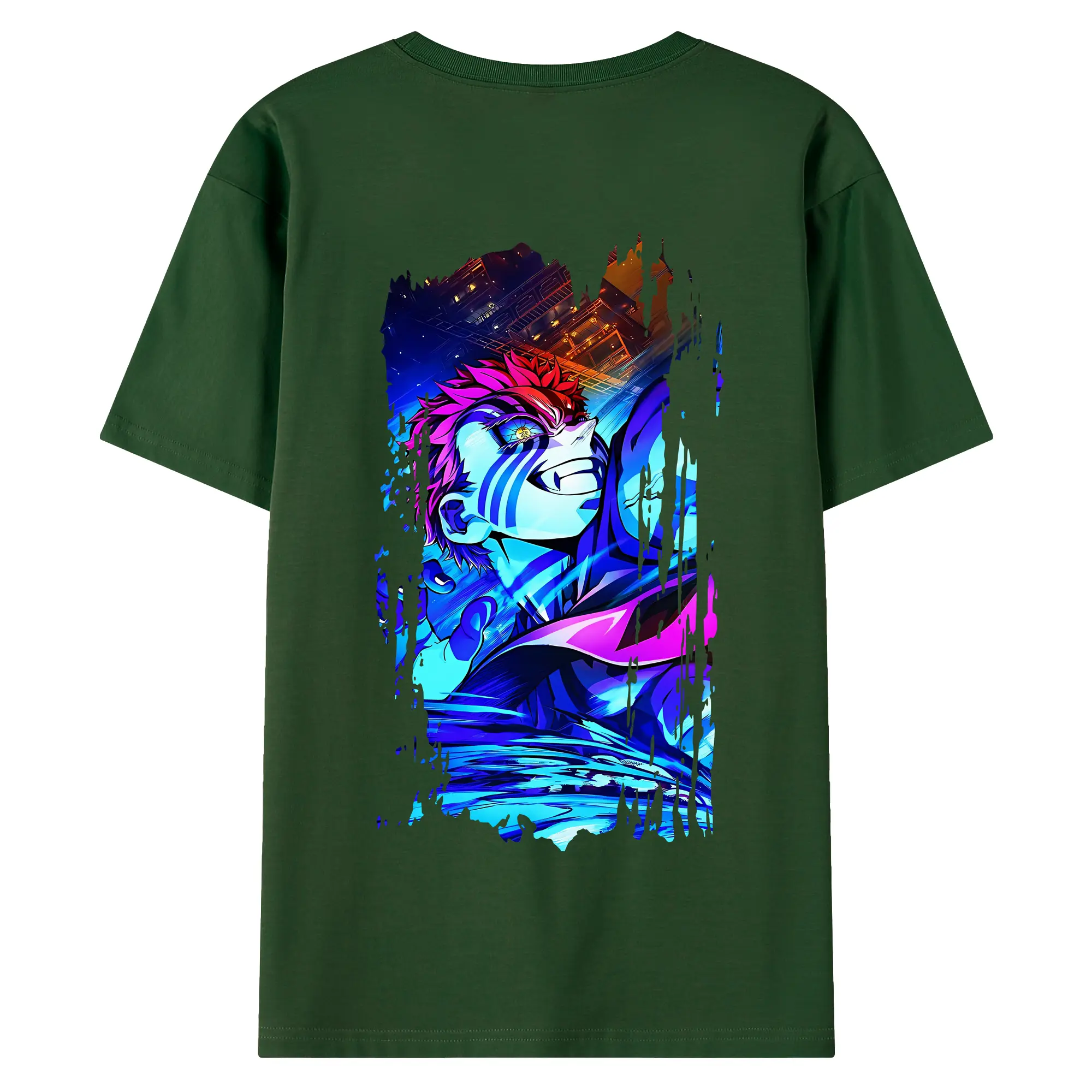 鬼滅の刃 グッズ,猗窩座 - 綿100% 半袖Tシャツ ・ フロントプリント ・ 快適 通気性 ・ 日常使い 散歩 スポーツ用