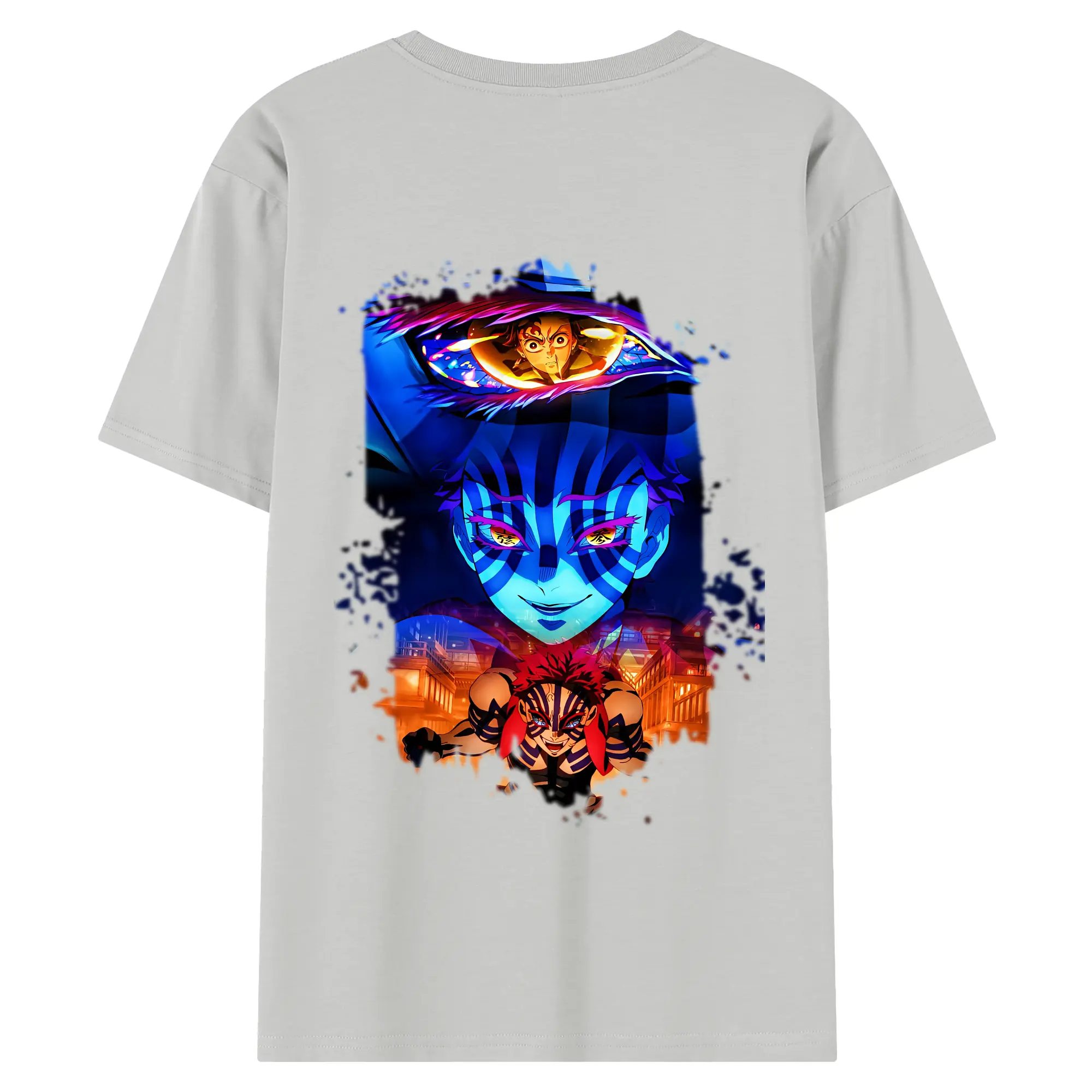 鬼滅の刃 グッズ,不死川 実弥 - 綿100% 半袖Tシャツ ・ バックプリント ・ 快適 通気性 ・ 日常使い 散歩 スポーツ用