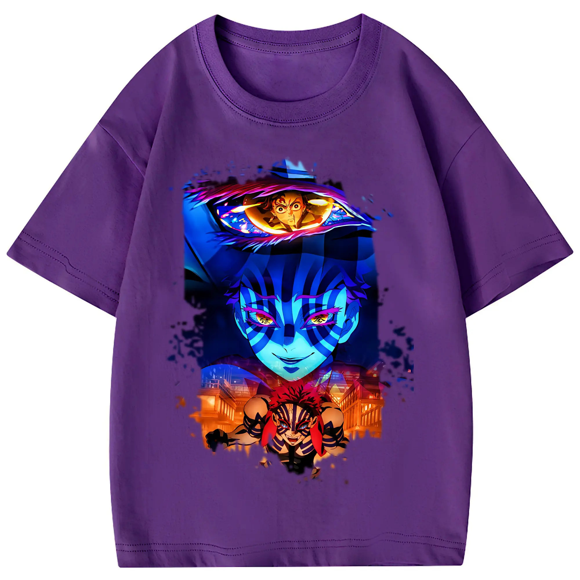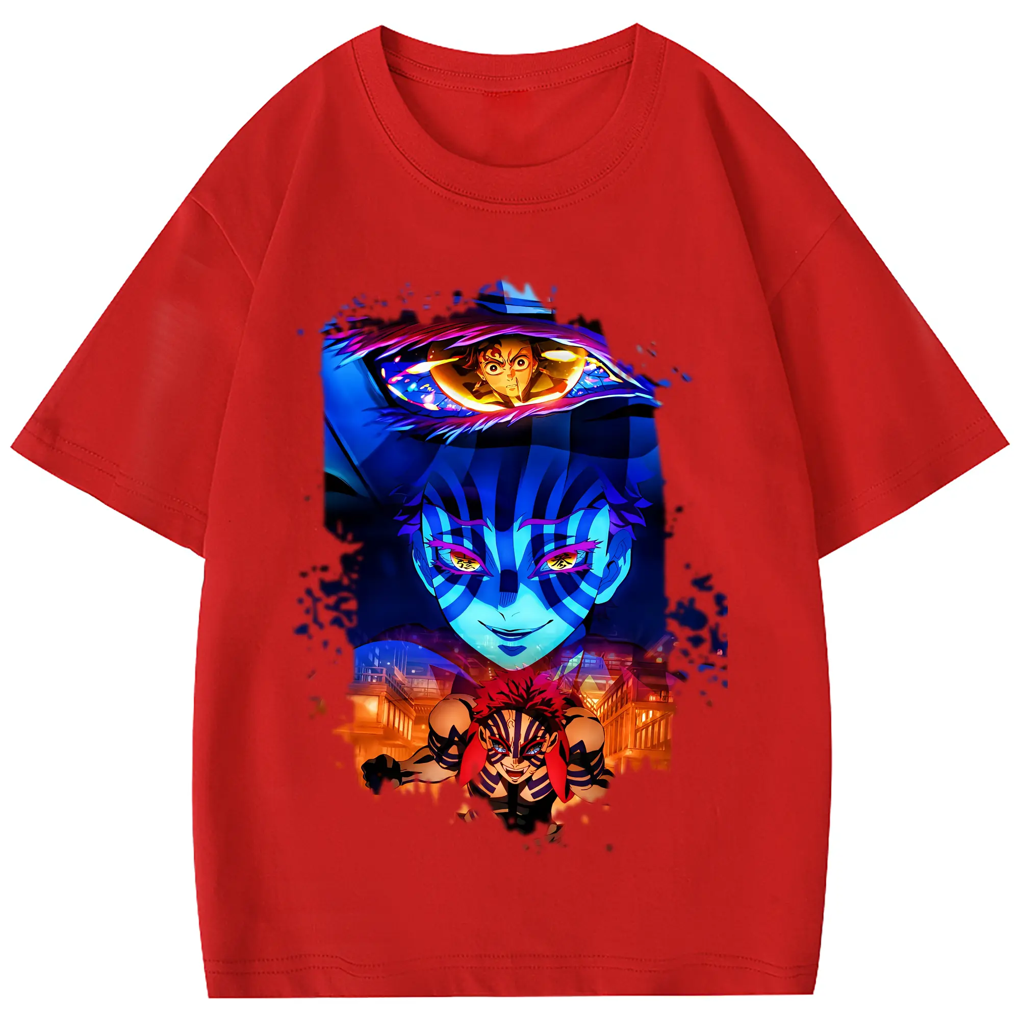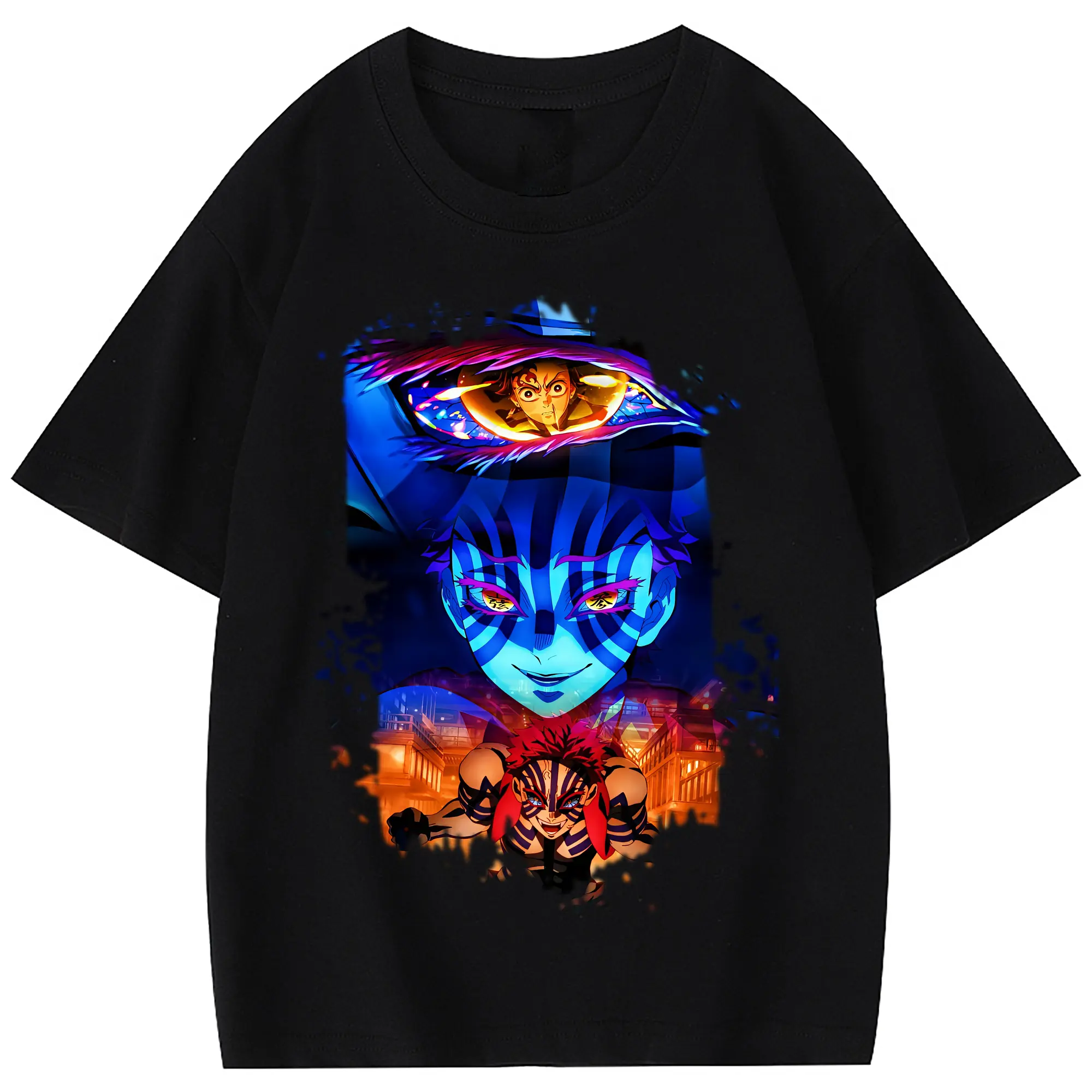 鬼滅の刃 グッズ,猗窩座 - 綿100% 半袖Tシャツ ・ フロントプリント ・ 快適 通気性 ・ 日常使い 散歩 スポーツ用