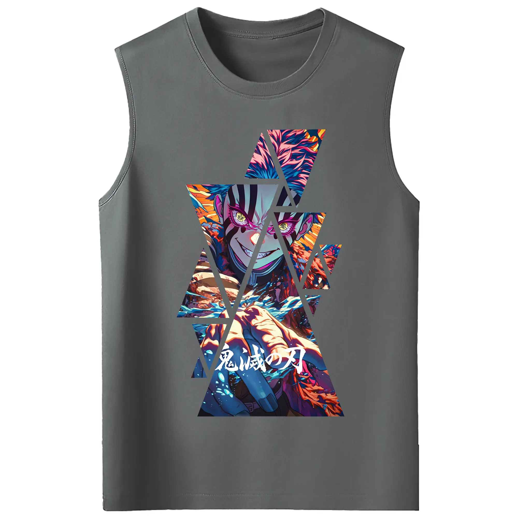 鬼滅の刃 グッズ,猗窩座 - コットン100% タンクトップ ・ フロントプリント ・ タイトフィット ・ 快適 通気性 ・ スポーツ カジュアル 散歩用