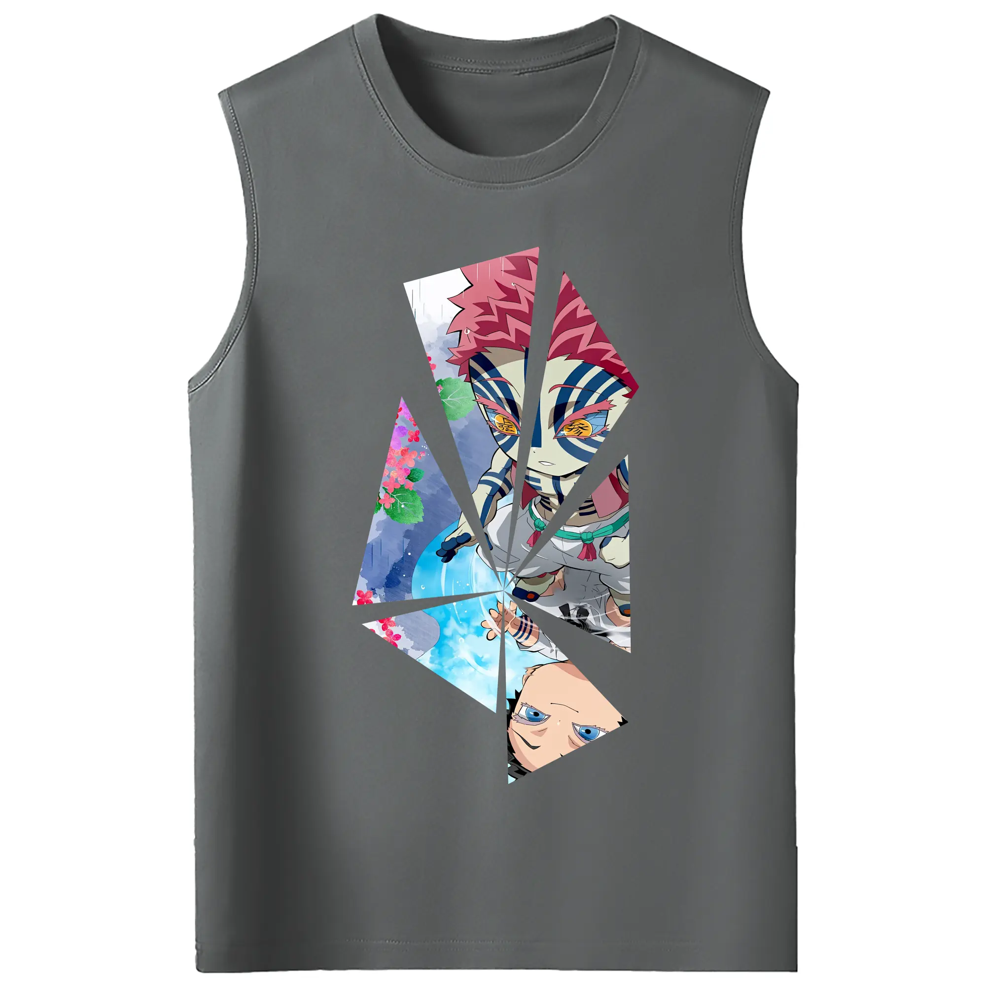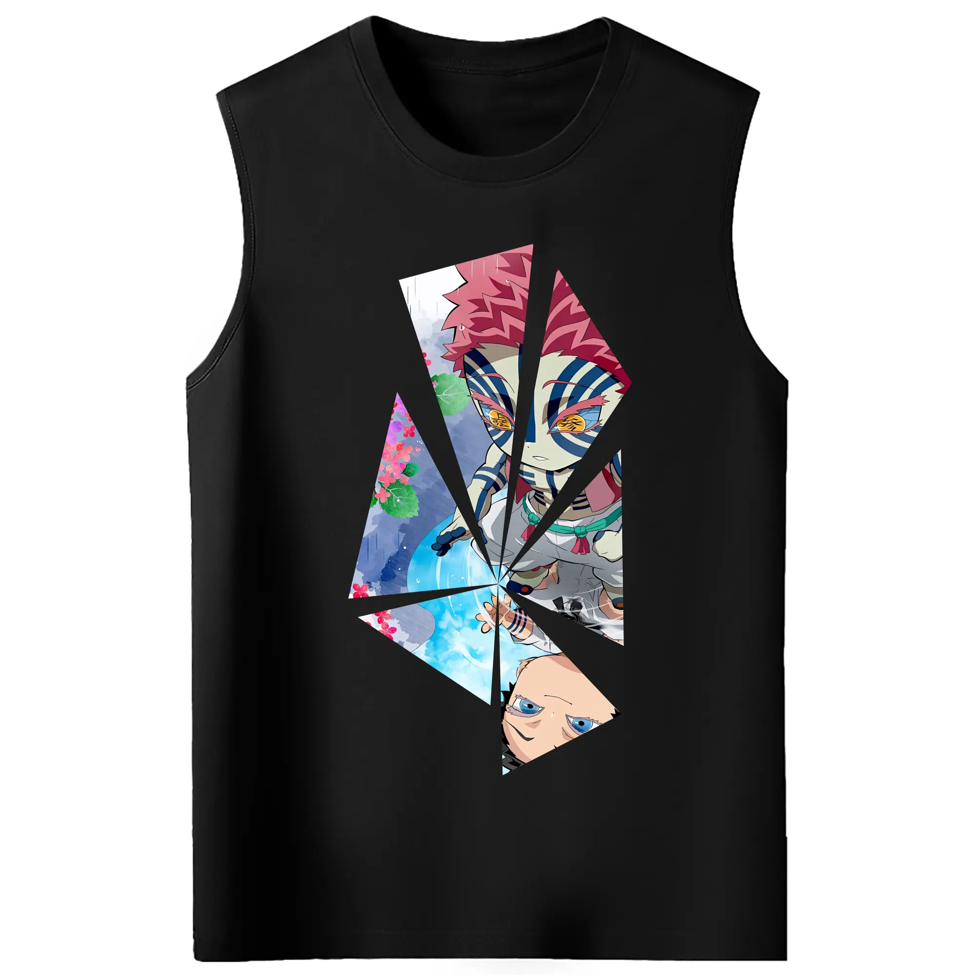 鬼滅の刃 グッズ,猗窩座 - コットン100% タンクトップ ・ フロントプリント ・ タイトフィット ・ 快適 通気性 ・ スポーツ カジュアル 散歩用