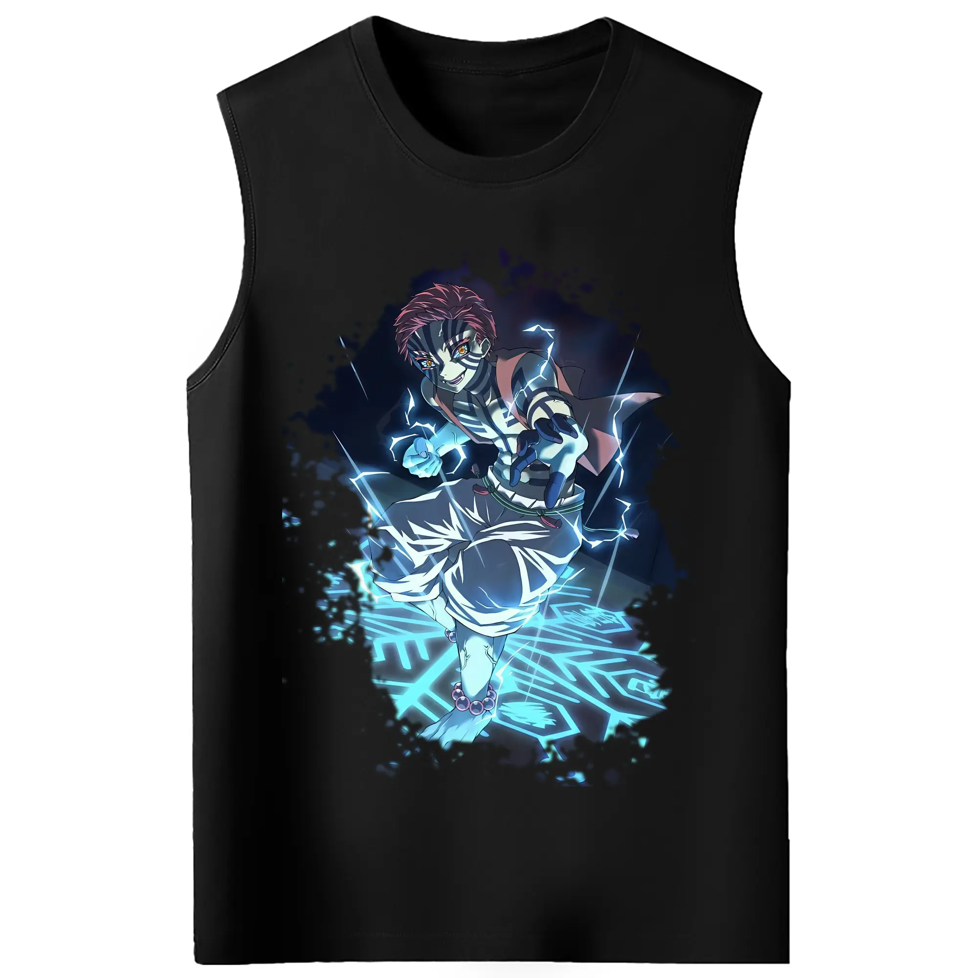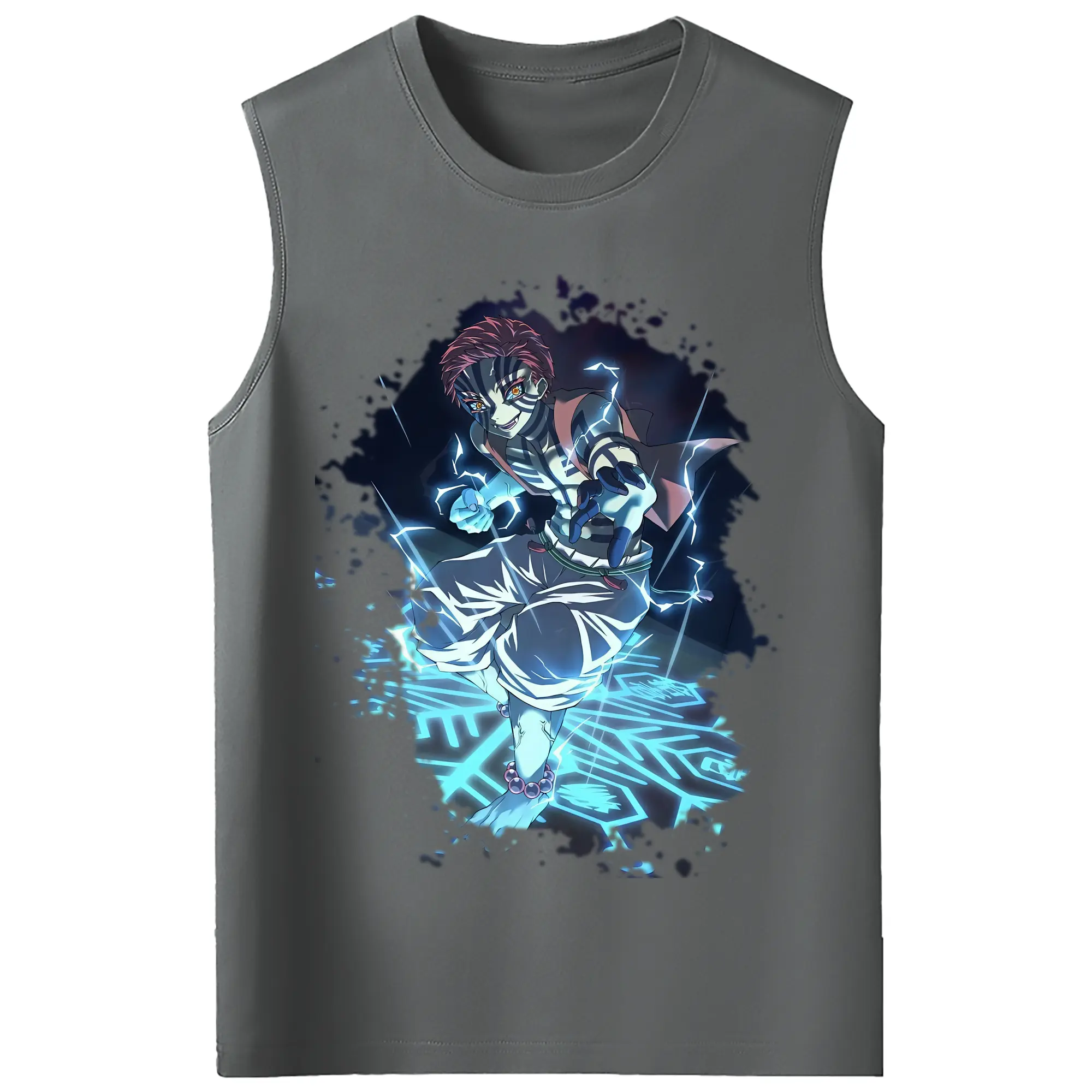 鬼滅の刃 グッズ,猗窩座 - コットン100% タンクトップ ・ フロントプリント ・ タイトフィット ・ 快適 通気性 ・ スポーツ カジュアル 散歩用